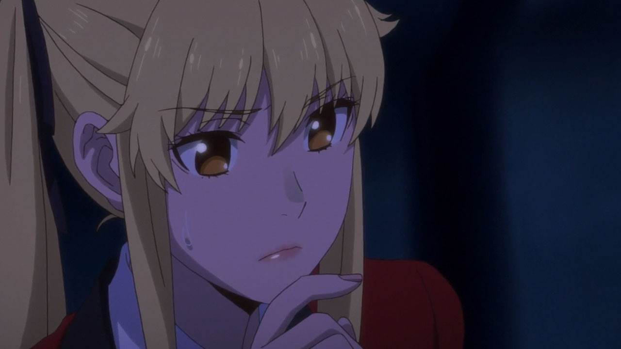 For all the fun Manyuda was though, the real game starts now. With Yumeko having proven herself twice in a row, theres little reason for Kirari to hold back now. The Student Council is a wreck, competitors are not far away, and the opportunistic sharks wont take long to start biting at the carcassbetter to reinstate order now before someone else does it for you. Plus this gives Kirari the fight she has always been wanting, someone at her level with a similar mindset wholly willing to put everything on the line for the fun of it. While Im not entirely sure if Yumeko is right that Kirari is seeking her gambling better (a little simple given previous information), I do know you got to feel bad for Sayaka being stuck in the middle of these two. That poor girl is woefully out of her element and is only going to suffer when the festivities commence, because in this world the stronger you hold something dear, the more likely you will hurt over it.