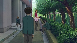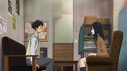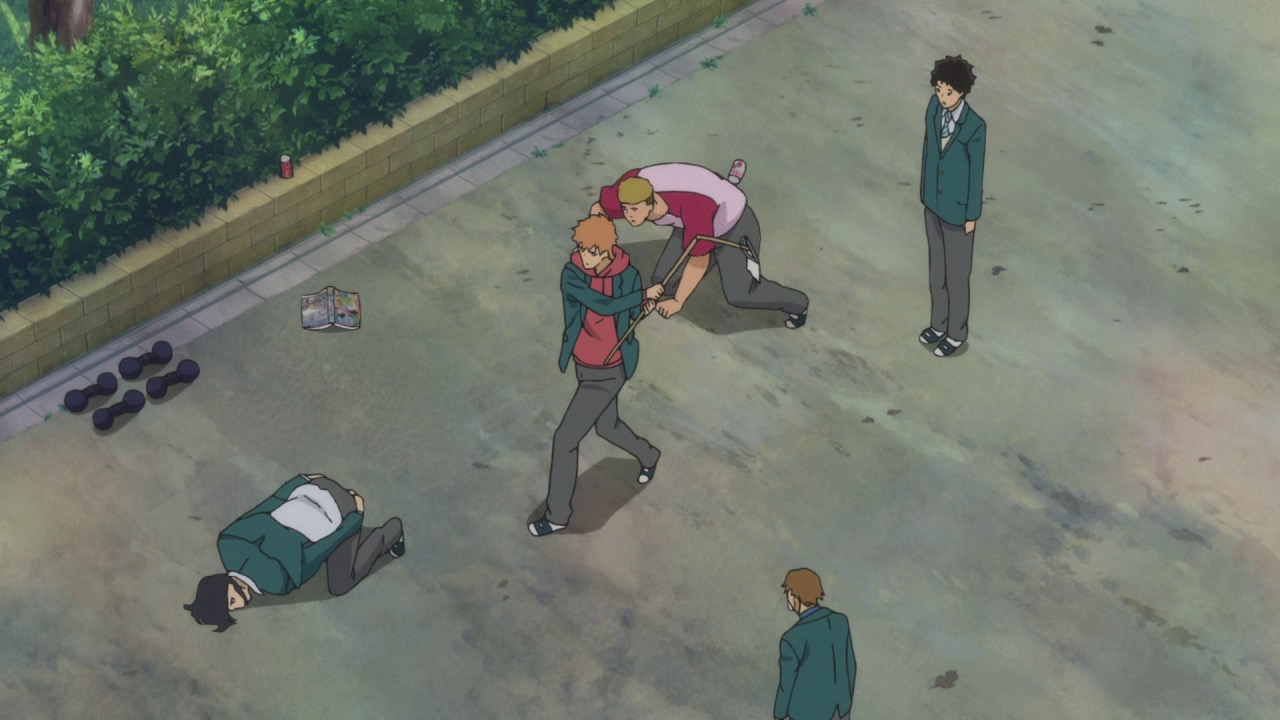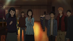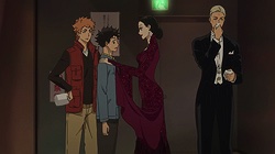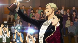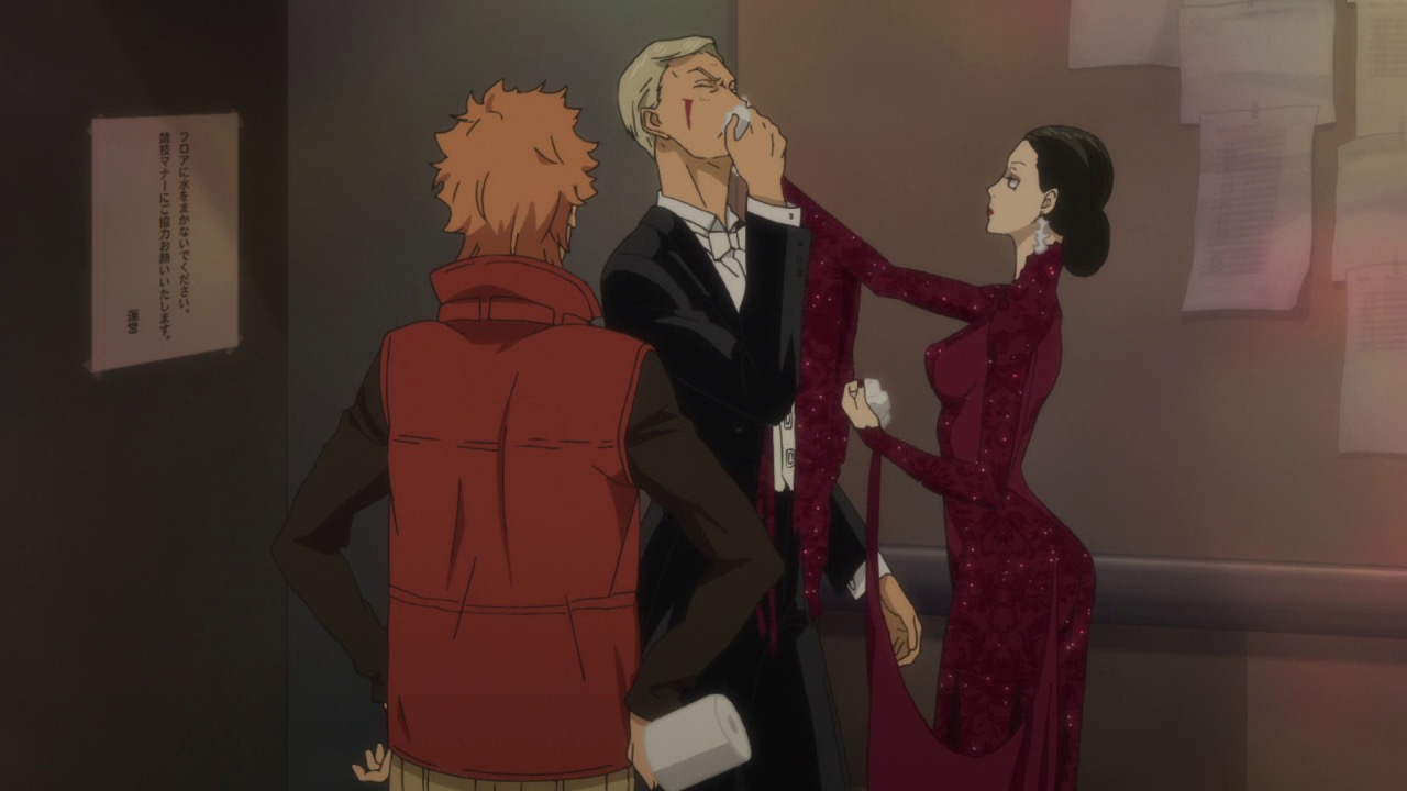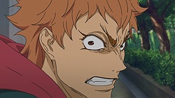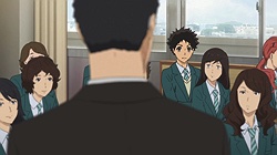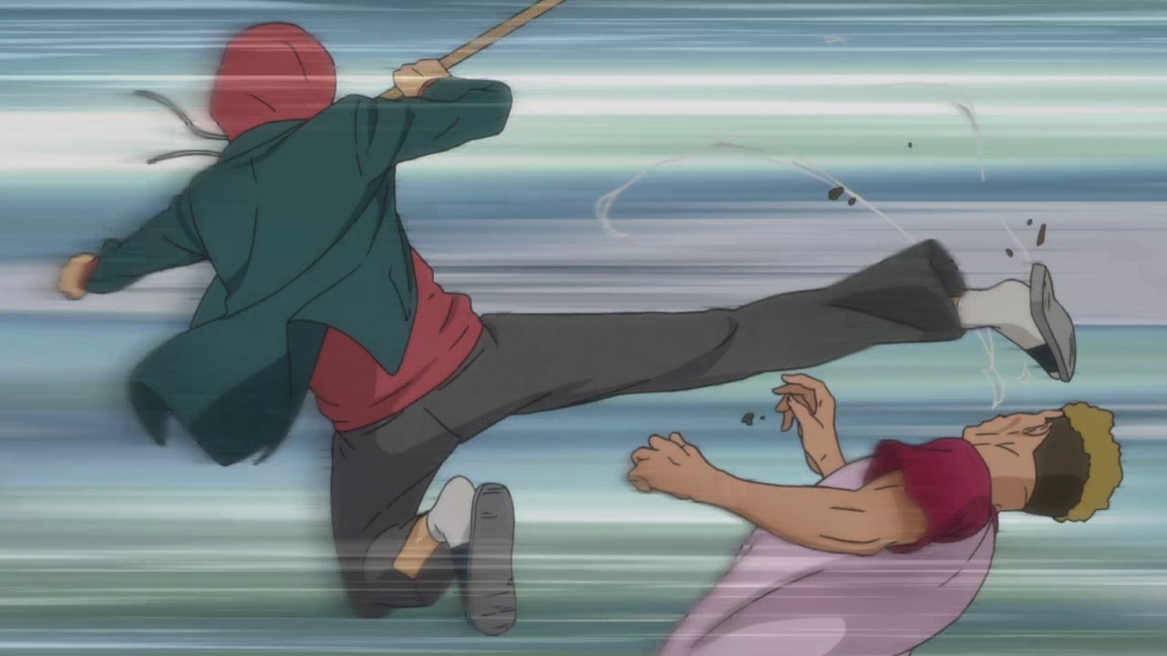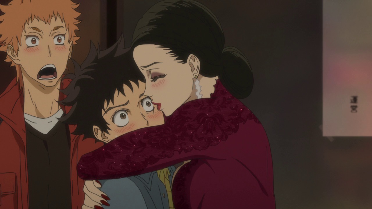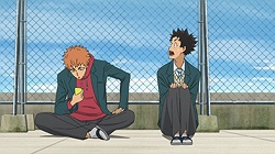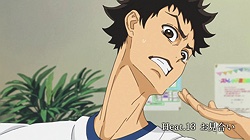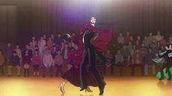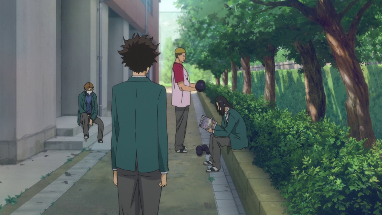 We may still technically be in the first cour of Ballroom e Youkoso, but the scene change unmistakably happened after last week’s episode. Without any question a major reset button has been pushed here – new school, new characters, new relationships between the old ones, and a sense that the nature of the journey for Tatara-kun has thoroughly changed. And along with that, the challenges facing him. As he advances in his craft and is capable of achieving more, the goals he strives for are going to get that much more difficult. But then – that’s shounen in a nutshell.As far as I’m concerned it would be hard to draw up an episode to kick off the second act better than “Encounters” did – it pretty much nailed everything it set out to do and was massively entertaining from start to finish. The first day of the rest of Tatara’s life starts with the first day of high school (I enjoyed his realistic goal of making “lots of friends – like 5”), which is always a scary one in any shy kid’s life. I liked that Ballroom opened right up with the introductions, because the issue of admitting to being a dancer is a serious one for a boy – old-fashioned and narrow-minded attitudes (which high school specializes in) make that a minefield to say the least.Tatara, to his credit, doesn’t shy away from the truth – he’s proud of it in spite of his anxiety. And it doesn’t seem too disastrous at first (though the teacher really should have kept his mouth shut), but that’s when Hiyama Chinatsu (Akasaki Chinatsu) enters the fray. She pronounces Tatara “lame”, but it’s an ill-kept secret even to non-manga readers that she’s a dancer too (or will be), and is in fact the answer to the math problem that’s been hanging over Welcome to the Ballroom since Gaju and Mako entered the picture (and even before, really).There’s more trouble at school, too, when Tatara (who does make an easy target) runs afoul of the resident bully gang. But fortunately for him, Gaju makes an unlikely return to the story and bails him out. Gaju is unsurprisingly seen as something of a banchou, even by the bullies. And while he blames Tatara for Mako’s inevitable development in the anatomical sense and berates him for shaming the brotherhood of athletes (which he clearly considers himself first), he does offer to exchange numbers with Tatara and it’s clear that these two have enough in common to become friends of a sort. We also get the most natural crossover in anime this year…Meanwhile, Shizuku has been patiently waiting for Kiyoharu’s leg to heal – which it has – and the two of them have decided to defer their trip to study abroad for a year. Partly it’s a concession to Kiyoharu’s condition, but Shizuku also declares that she wants to compete with Tatara again. That’s going to require that he couple up of course, and though we know what’s coming there neither of these two do yet. Obviously Chinatsu’s appearance means all of the major players are paired up, but I can’t shake the feeling that there’s still something simmering between Shizuku and Tatara – either on the dance floor or off (or both).Things really heat up when Tamaki invites Gaju and Tatara to see Sengoku – who’s been overseas himself – in is first major Japanese competition in a year. Sengoku isn’t much of a teacher but he is a great dancer, clearly, and it’s fascinating to see the way Tatara observes him. He sees details Gaju doesn’t (like the way Sengoku’s movements connect up from a muscular perspective) and while Sengoku has encouraged him to watch and learn, one thing Tatara sees is that there are things a man of Sengoku’ stature can do that a boy of Tatara’s stature cannot. Even moving at “half speed” (Gaju’s observation) in the prelims, Sengoku seems to present an ideal that will be forever unachievable for Tatara. But then, a lot of things seem that way when you’re 15, and time is still very much your ally.I think my favorite part of the episode, though, was the introduction of Sengoku’s partner Hongou Chizuru (Kotobuki Minako, in what seems a very against-type – and charismatic – performance). She sweeps through Ballroom like a typhoon, starting with she and Sengoku getting into a bare-knuckle brawl which leaves him bloodied (a regular occurrence, apparently). Her interaction with “the” Tatara-kun is utterly hilarious (especially the “kochi, kochi” bit), but she’s got game – and she and Sengoku sweep through the competition easily. In the aftermath the Sengoku groupies stampede, sweeping Tatara and Gaju up with them – and among them is a familiar face who might, perhaps, look upon Tatara differently once she learns that he’s Sengoku’s student…