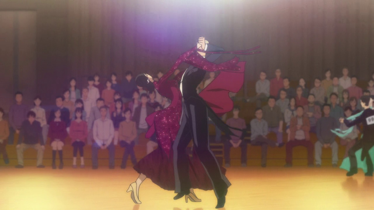 Nice observation….and if you look at the preview for next ep then you can see thatChinatsu and Tatara practising dancing together but Tatara in the female position instead in one of the scenes. I guess Chinatsu is shown to be much more experienced than Tatara…..and gasp, especially in the leading position. So I gues that’s probably going to be one of their main motif/conflict in this 2nd cour for this newly born dancing couple, instead of silly rom-com like few people predicted in other places. Which is kinda silly…since this is still first and foremost a sport dancing anime and coming of age story for Tatara and the other young dancers plus their struggle in reaching their dream/ambition on the dance world .