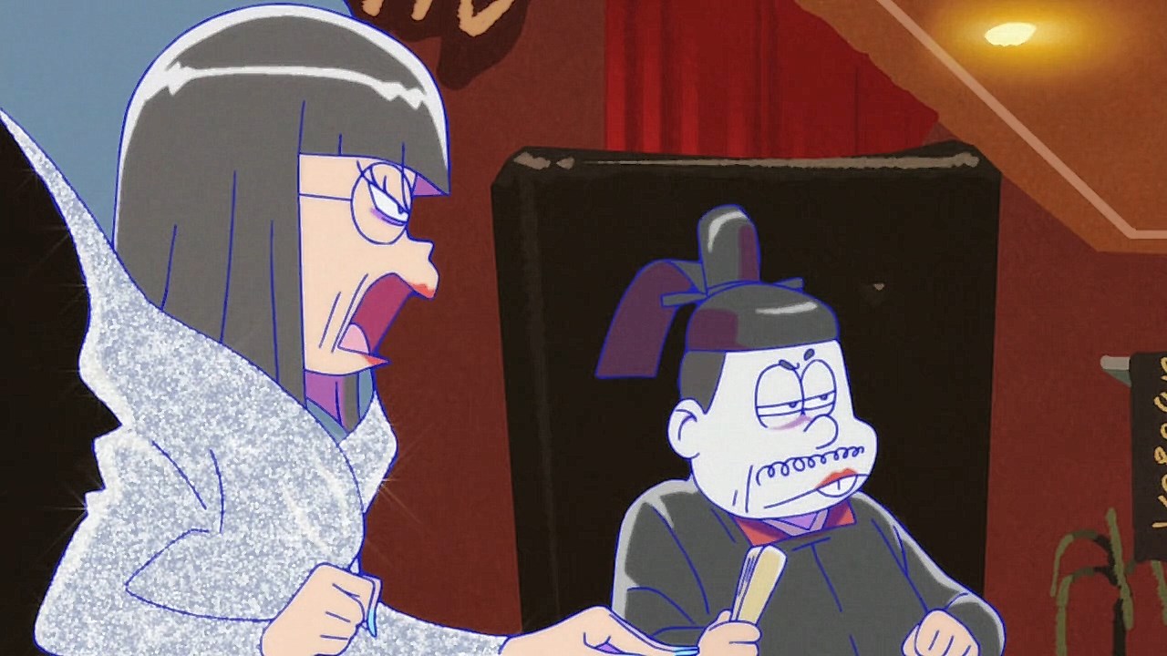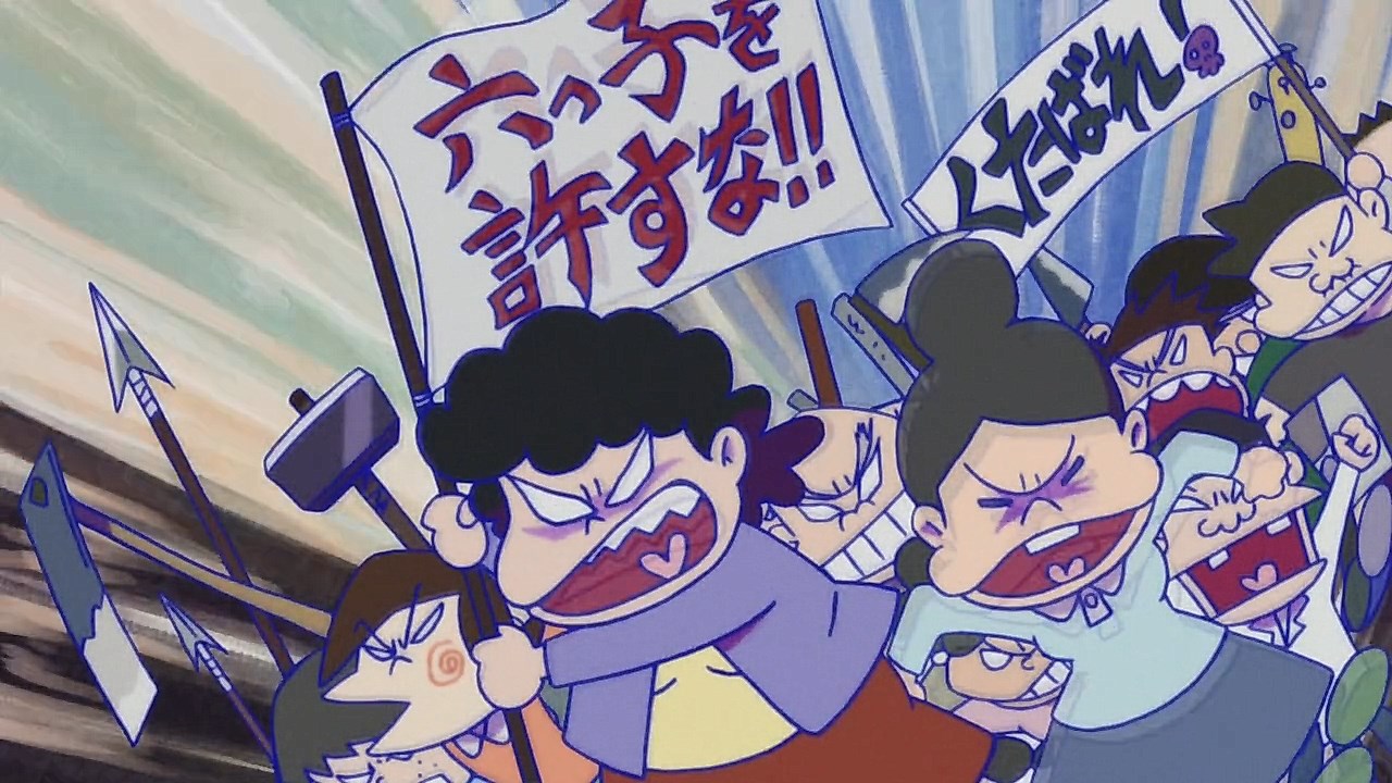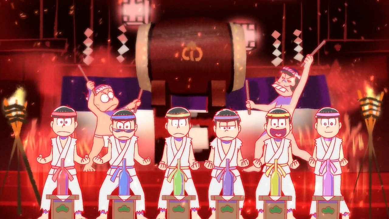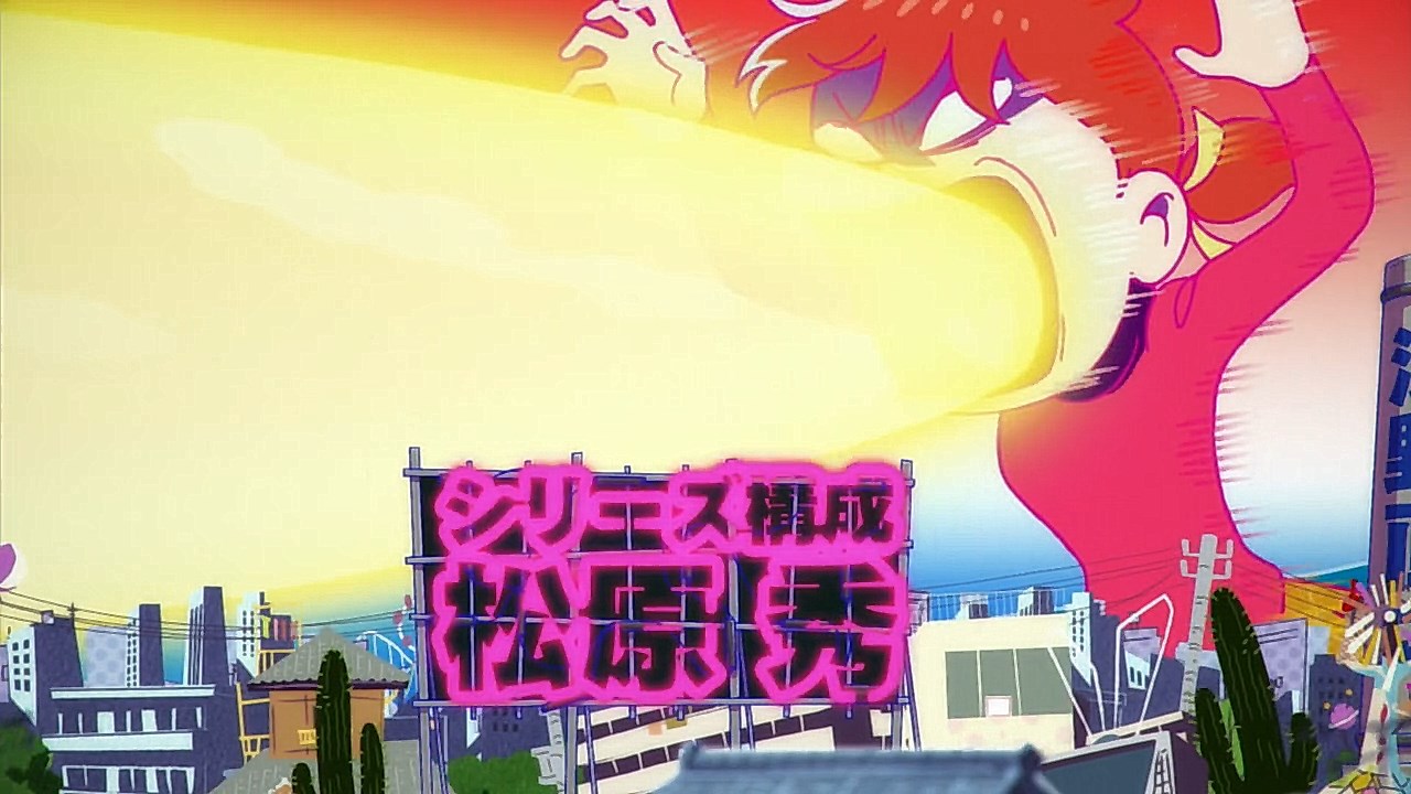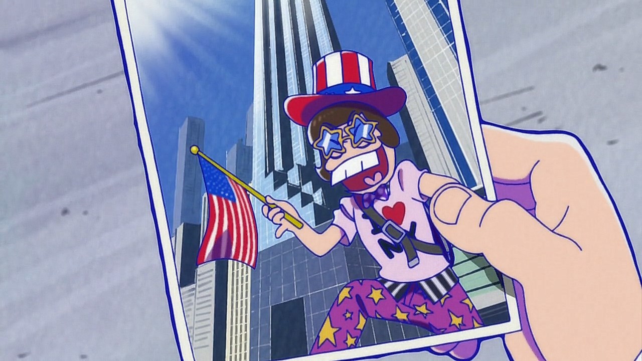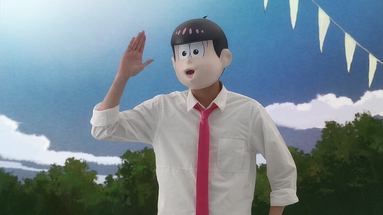 When we first saw the return of Osomatsu (Sakurai Takahiro) in 2015, it was met with legal trouble as the first episode of Osomatsu-san was cut from streaming and DVD release due to copyright infringement. With the sextuplets trying to woo audiences by becoming characters from Shingeki no Kyojin, Naruto, Love Live, Pokemon, Sailor Moon, and just about every other anime under the planet, the first episode set such a high bar for what could follow. The resulting anime ended up being a hilarious re-emergence for the Osomatsu-kun franchise, torpedoing many of the characters into a series of merchandising opportunities, video game spin-offs, and stage shows. The US release for their iOS/Android game was last month, and it’s a relatively fun tower defense game. But with all of the success that has come their way, expectations were high for what exactly can come from another season of Osomatsu-san, especially since the first couple episode dropped many jaws when it first came out. I’m glad to say that they started off on a high note by tweaking the initial formula to make something equally twisted and entertaining.The first half is where the “twisted” part comes in. Much like any sophomore album, they wanted to come right out the gate to acknowledge how much of a hit the first season was, and they expressed this by having the money and fame warp the Matsuno brothers into horrifyingly hedonistic monsters. After Iyami (Suzumura Kenichi) takes a vacation to Trump Tower, him and Chibita (Kokuryu Sachi) are greeted to a new world where the Matsuno’s have a mansion and are steadily enabled in taking their depraved lifestyles to the highest heights to maintain the level of prosperity they’ve had since 2015. As a result, Osomatsu has become an obese kid in an adult body, Karamatsu (Nakamura Yuuichi) becomes an equally massive pop star, Choromatsu (Kamiya Hiroshi) and his otaku tendencies are amped up to include directing anime and flipping skirts, Ichimatsu (Fukuyama Jun) is transformed into an emaciated hermit, Juushimatsu (Ono Daisuke) is now a giant blob, and Todomatsu (Irino Miyu) ordained himself as a womanizing king. Along with this, the sextuplets’ parents, friends, and acquaintances are riding their fame for all its worth, profiting off of their relationship with the brothers and the exposure they received from the 2015 anime. It’s a clever way for the show to address how unexpected the success of the first season was, and what would happen if you made the sextuplets from this iteration of the franchise millionaires. The brothers belching, cannibalism, and comeuppance are also some of the grossest moments I’ve seen in anime this year, but it’s the outrageous direction they went with the Matsuno’s that pushes the envelope for what exactly they are willing to subject them to this season. The repulsiveness of the big money Matsuno brothers shows their willingness to abandon any sense of toning down their bad taste because of how much yen the series has made since the reboot/sequel. That dedication comes in play as offended viewers march to their mansion to blow it to pieces and attack the brothers in revolt.What this also does is show that perhaps letting the money get to their head isn’t the best route the show can go, especially if they get comfortable enough with the brothers’ popular traits that they manifest into a personification of their worst attributes. This comes into play as their 1960’s counterparts are so upset with their future hedonism that they swear to become the best they can be so that they can be better anime than whatever happened with that future. Instead, their long string of good deeds caused the brothers to transform into completely different, vastly better people. Osomatsu grows up to have the perfect future in a respectable seinen story where he has an office job, a wife and kids, a love life, and a new lease on life. I was looking forward to seeing if the other brothers also lead a similar life in a sophisticated anime like Osomatsu was, but what ended up happening was even crazier and funnier than what I expected.Karamatsu transforms into a cyborg ninja like Raiden, Choromatsu and Totoko (Endou Aya) arrive as a Kimi no Na Wa.-like pair who are animated like characters from hyper-deformed 90’s anime like Saber Marionette, Ichimatsu appears similar to the old He-Man or Aquaman cartoons, Juushimatsu is animated in CGI, and Todomatsu is just a live action guy with a mask. It was hilarious to see all of the brothers’ ideal versions of themselves when they’re at their very best, but it was even funnier to see them all interact with each other in the same screen. To see 90’s anime, 3D, and live action all come together into a sloppy mess as they fight in mecha made me laugh quite a bit. This particular segment seems to be the most direct response to their copyright mishaps since they managed to parody anime genres this time around more so than any particular series as to avoid issues like last time. It’s also a nice message on how dedicated they are to playing around with the animation style since the first season tinkered with stylistic changes like the Sanematsu-san skit, but they’ve gotten advanced enough to mash up so many styles in one frame, and it’s impressive that they took the time to animate Juushimatsu in 3D or had someone with a Todomatsu mask pose in ways for him to be inserted into the show as a character.They also showed off the OP/ED for the season at the end of the episode with varied results. I loved all two of the OP’s that the first season had, and the OP for S2 is no exception. It was cool to see how much flair they gave to the colorful animation as the Matsuno’s are thrust into a a world of rainbow colors and poppy music. Specifically, them firing drinks off into the sky to reveal the song name was impressive to see. To match the episode’s animation experiments, the ED implemented a neat stop-motion sequenc