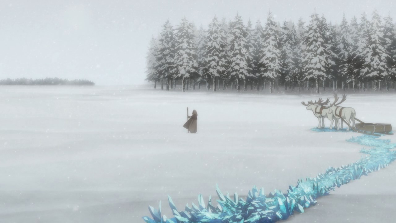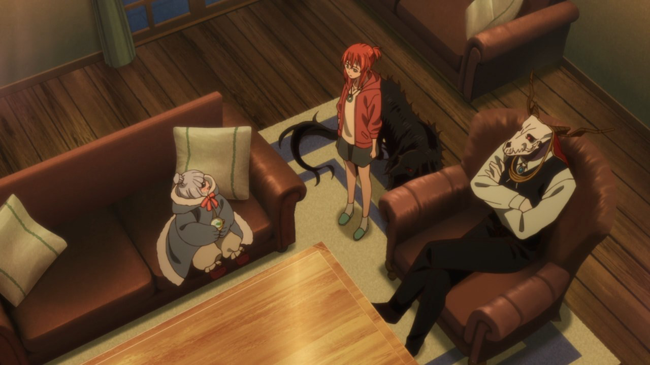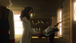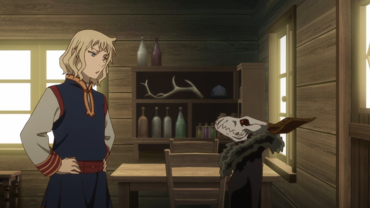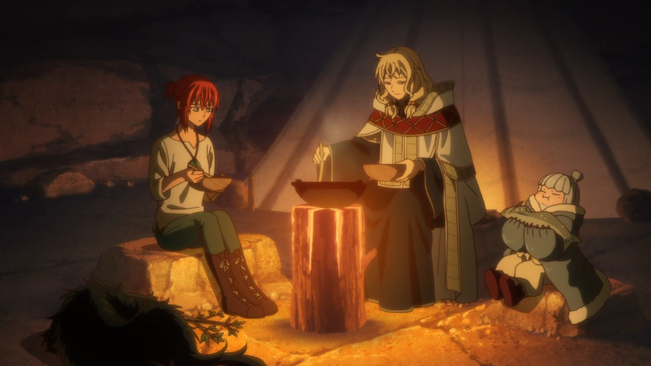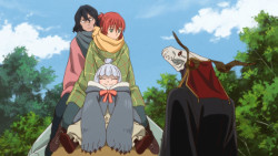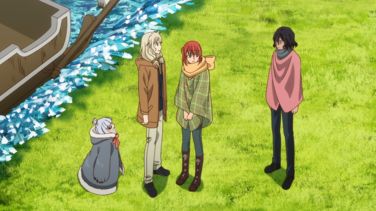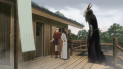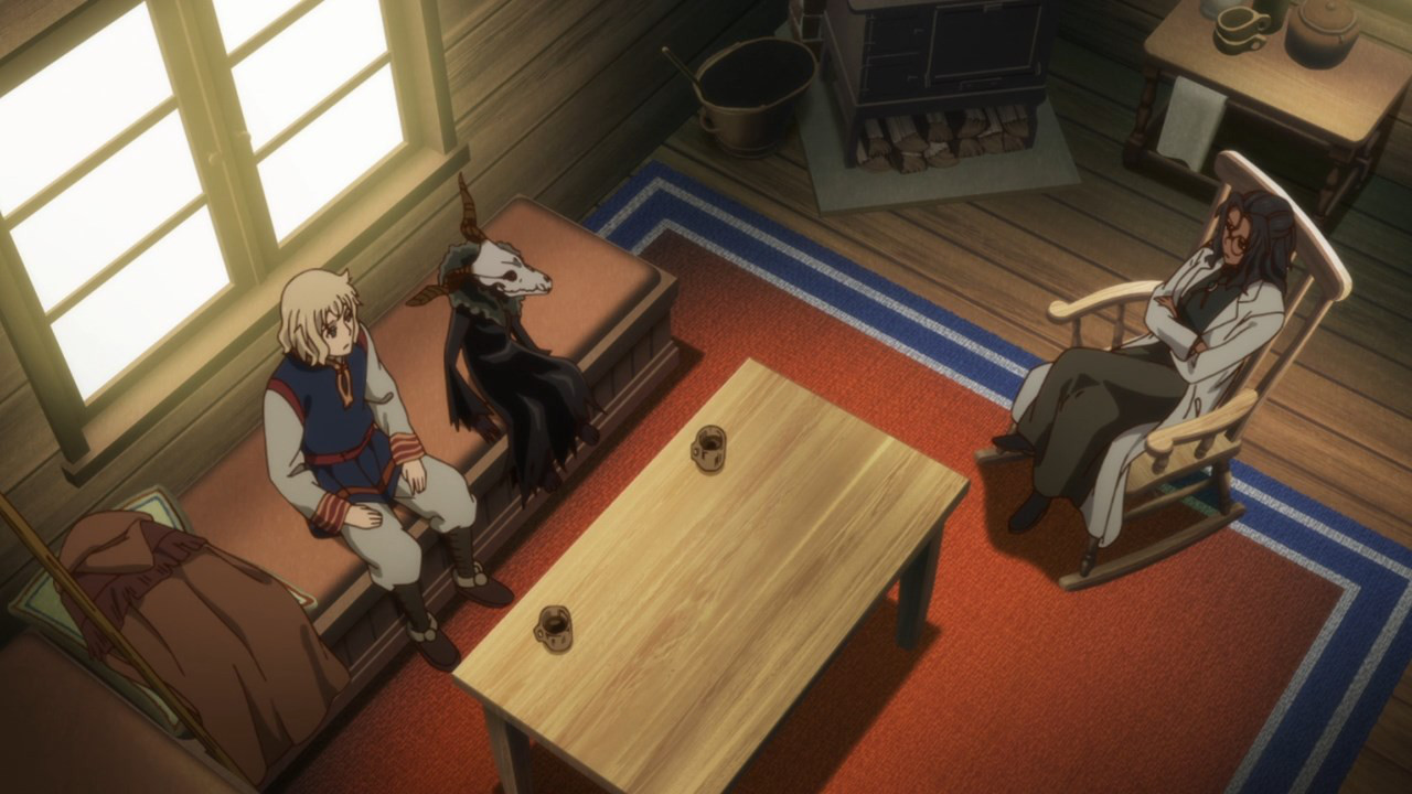 Rarely do I see a story unfold where each episode manages to build on the previous and be even better than the last. I called this a tapestry and it is a beautiful one. The world building is slowly taking shape and each reveal is like opening a present. This ep grabbed me from the opening and the chance to learn something of Elias’s past held me. The biggest mystery to me is what goes on in Elias’s mind when he thinks of Chise. The scenes of him in the present as he waits for Chise’s return appear pensive and worried, but how to know how a eldritch being such as him thinks and feels? The other question is why is everyone concerned about Chise’s relationship with Elias? It seems that they know something of his history and it might not be good or is it just related to Chise’s powers?
