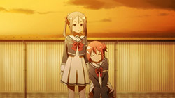 For, despite the hope that remains, it’s but a small hope in the face of a problem with no clear solution, one I have no idea how they’ll solve. Or if they will. I’m glad they’re directly confronting what happened at the end of the original series, because finishing the story that was left undone was always the number one goal of this sequel. That’s the only reason it should exist, so revealing how Yuuna came back, and why she fell to her knees during that stage performance, is priority number fuckin’ one. And we’re getting that, which is excellent. This is absolutely the right path to take.