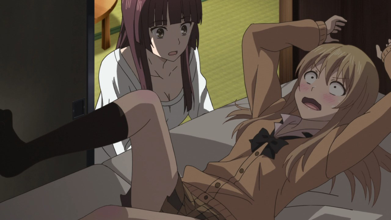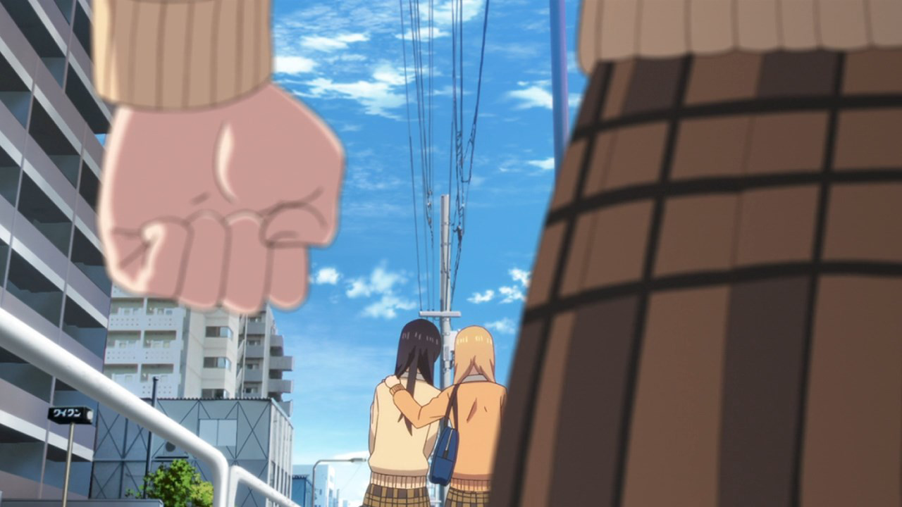 As for why Momo came onto Mei in the first place, well, theres certainly stranger reasons. Personally I’m not convinced Momo even loves Mei in the more than friends capacity, her protective attitude seems platonic, a relationship born from smug monopoly (Mei has not been shown possessing many friends) rather than lustful desire. The only reason Momo likely went after Mei so hard is that Yuzu had wedged herself so firmly in between the two (as Momo saw it) that our curly haired competitions only recourse was to go all in. We wont officially know for an episode or two yet of course, but I bet you Momo is acting out more from self-preservation than any intense desireMei is her friend and by hell no blonde gyaru is going to upset 10 years of carefully nurtured care and affection. Well, at least what Momo thinks is care and affection. I dont know about you, but a close friend refusing to talk to you about anything for a prolonged period of time likely isnt a friend at all. Unfortunately for Momo, shes likely to find out this lesson the hard way.
