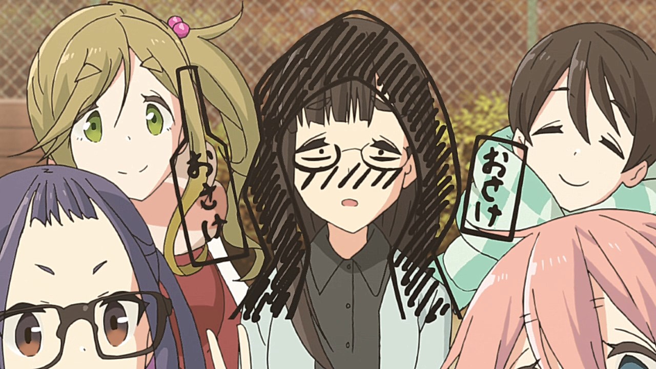 This episode is a great opportunity to delve into something I feel like I haven’t talked about as much; Rin as a character. It is meaningful that the series is patient and attentive to ensuring that Rin acts on her own terms. Her insistence on camping solo or being to-herself is never seen as a flaw that needs to be corrected, nor is her eventual embrace of other campers forced on her. Her comfort with being on her own is something that gives her solace, and the other campers on the show are never pressuring her to challenge her social awkwardness. This is prevalent in the previous episodes where you see Rin as a normal person who just likes their alone-time, and doesn’t feel like they’re dominated by the notion that they’re not a people-person. In Episode 10, her decision to join the Out Club for Christmas camping isn’t seen as one they made for her or something that’s forced on her; it’s a choice she makes after reflecting on Nadeshiko’s company, the experience of camping with a group, and her current hardship of spending more time trying to get to the Jinbagata Campgrounds than enjoy her time there. I am curious about what making a pressed dumpling would be like, and twice as curious about the Houjicha tea the two hikers gave her. The last portion of the trip, however, was best spent on Nadeshiko’s side as the Christmas trip planning begins. Aoi’s after-work trip to Nadeshiko’s house established the connection they have to getting stocked up on meat to grill on Christmas, courtesy of Aoi’s work gifting her a pass for free meat. Inviting Ena also got them a fancy tent and the cutest chihuahua, Chikuwa. The other girls came through as well with Chiaki’s paycheck netting her some extra camping gear and Nadeshiko offering to make breakfast. Rin’s linclusion was also valuable in giving them the idea to head to Asagiri Highlands to meet all of their requests to camp at a grassy park near Mt. Fuji.The pieces are coming together to complete the OP hangout and first episode’s flashforward, but the puzzle piece came in the form of the Out Club’s new advisor Toba-sensei. In a changing of the guard, the previous advisor, the Hiking Club’s Ohmachi-sensei, he gleefully transferred his power to Toba-sensei. Despite it looking like her situation will be made easier by not having so much of her time depleted from TV dramas and drinking, it’s the latter that automatically caused Nadeshiko to connect that dots on her secret identity as the drunken lady in the woods. Toba-sensei has her work cut out for her to not come off as enthused about bacon and beer as she’d like to be, but it’s easy to see why she would resonate so well with viewers who also love themselves some campside drinking.by the fire pit. With the next episode gearing up for the Christmas campout, it’ll be extremely exciting to see how the trip fares with everyone in the main cast involved.