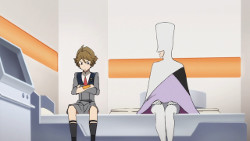 Finally! We get to see just what they’re fighting for AAAAND…… it’s pretty sad and depressing. This will no doubt come to a head later one when one, a few, or all the parasites revolt upon the realization of just what humanity is doing to them.This is a Zorome episode. I would’ve liked he not have one considering he hogs all the attention already, but he’s really funny running around unsupervised.My guess is that that woman was indeed Zorome’s mother. I mean they quickly cut to shots of she and her partner having sex (it was literally a split-second cut!), and she began to feel very parental feelings toward him. I was wondering if we’d see her die this ep, but nothing like that happened.