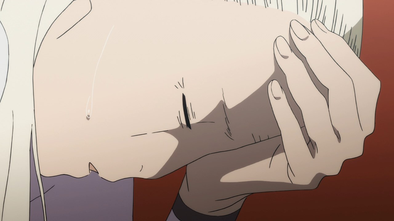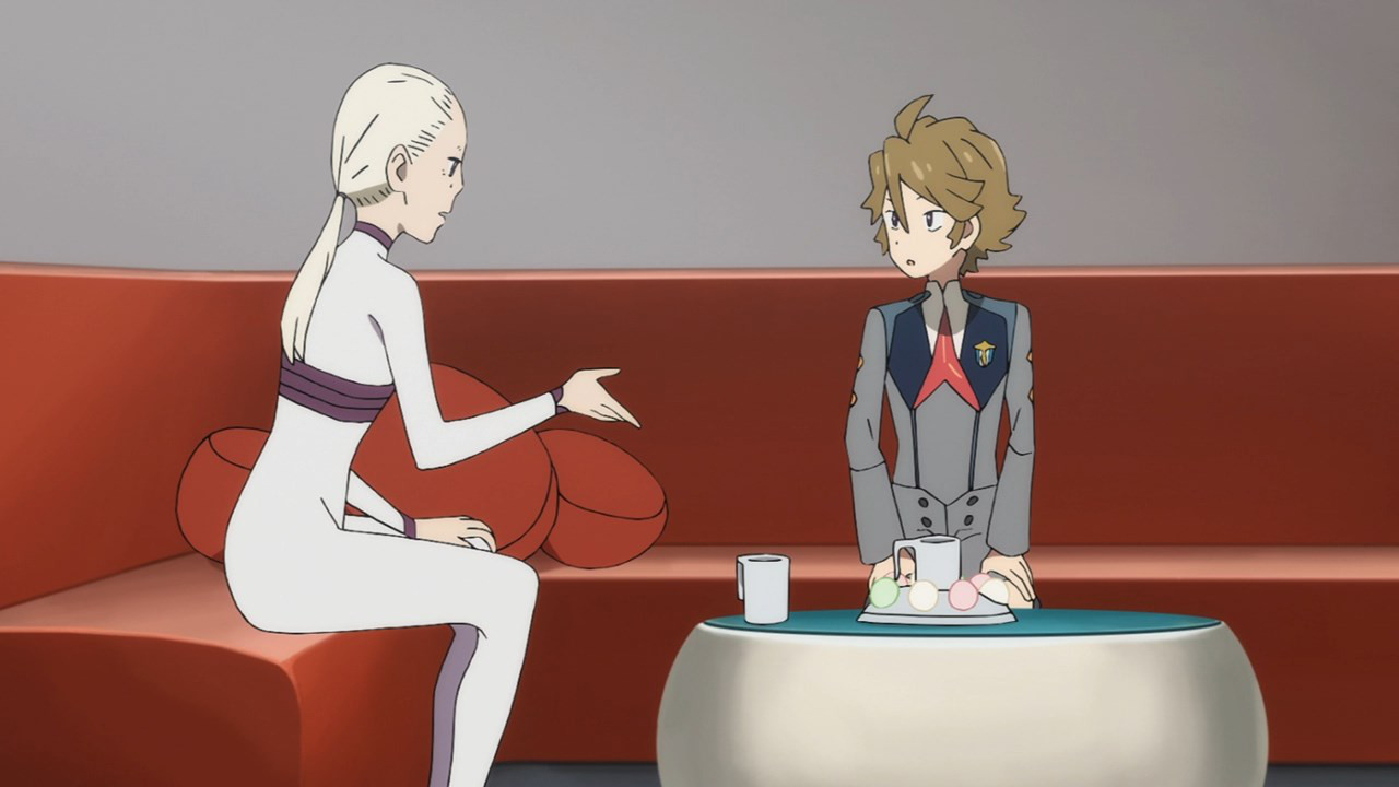 Wow, contrary to the comments, this episode was actually interesting. And kind of disturbing, especially the way that woman’s ‘partner’ was smiling. I’m worried though, what’s up with zero two, and why did Zorome’s dream suddenly stop? Some kind of closure? How sad…