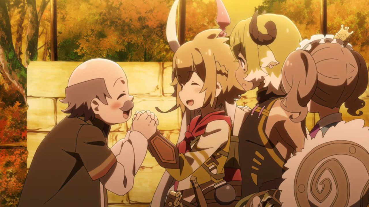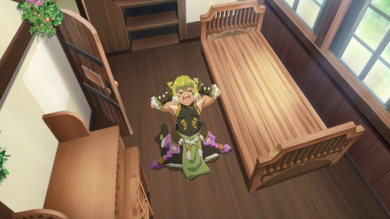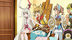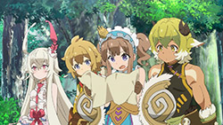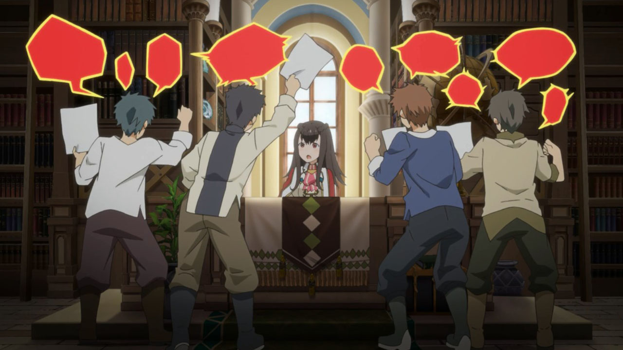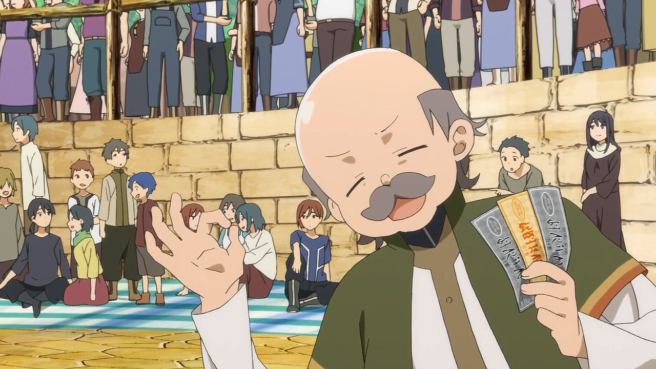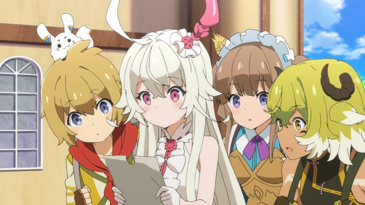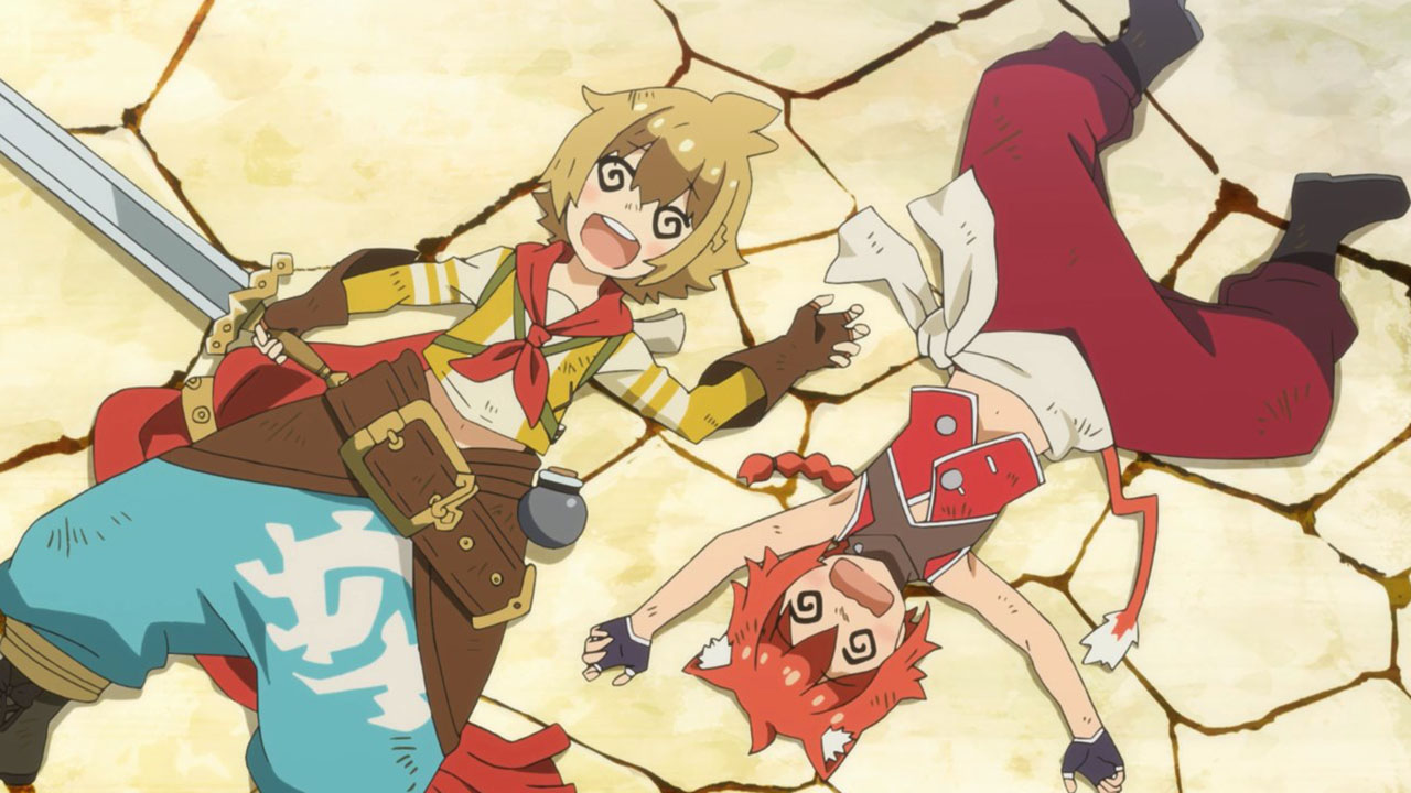 I wrote all that out because, even more than the preview, when you line everything up in this first episode it’s actually a pretty straight-forward setup. This despite the jargon (periods, spirals, etc) is quite pleasant, because it sets up a standard fantasy-adventure world and then quickly gets on with the silliness. Here, the main purpose of the show seems to be to jerk its main characters around and take the piss out of mobile games, which, since this is based on a mobile game, is a deliciously subversive look. All this talk about log-in bonuses and gachas got a chuckle or two from me. At least the writers seem to have a good sense of humor about this whole thing.
