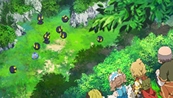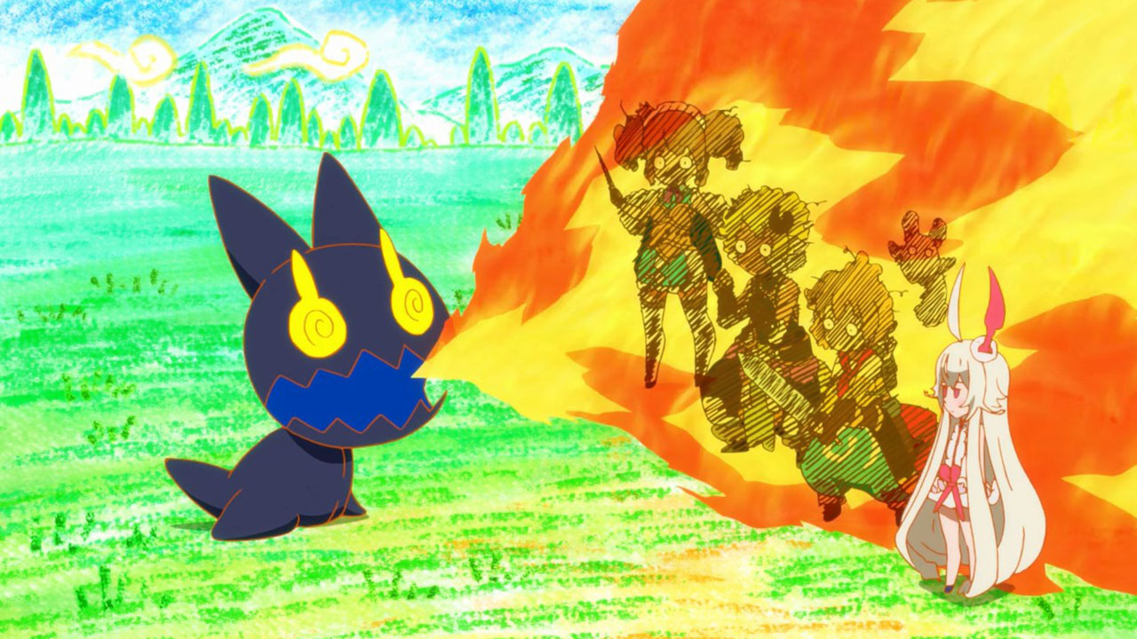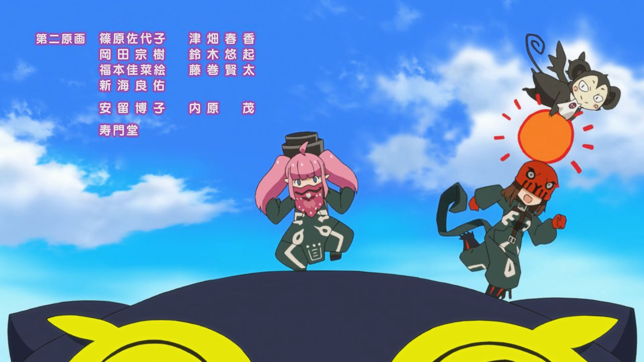 I really got a chuckle out of Team Rocket the Wiseman quartet, because everything about them is just silly. That plus the mobile game jokes (and the cheapskate mayor, hah!) amused me enough for a first episode, though the animation is also crisp and the character designs are overdone in a fun way (though Choco’s ahoge/horn was a bit much).