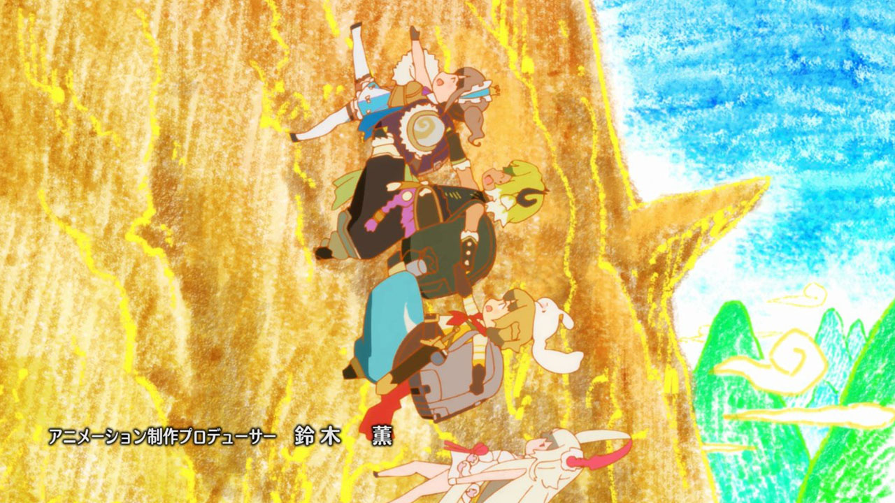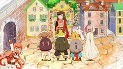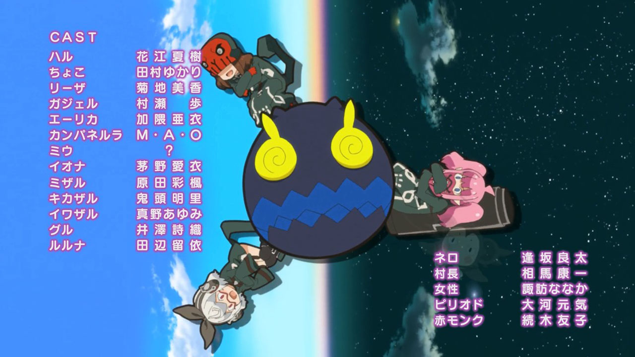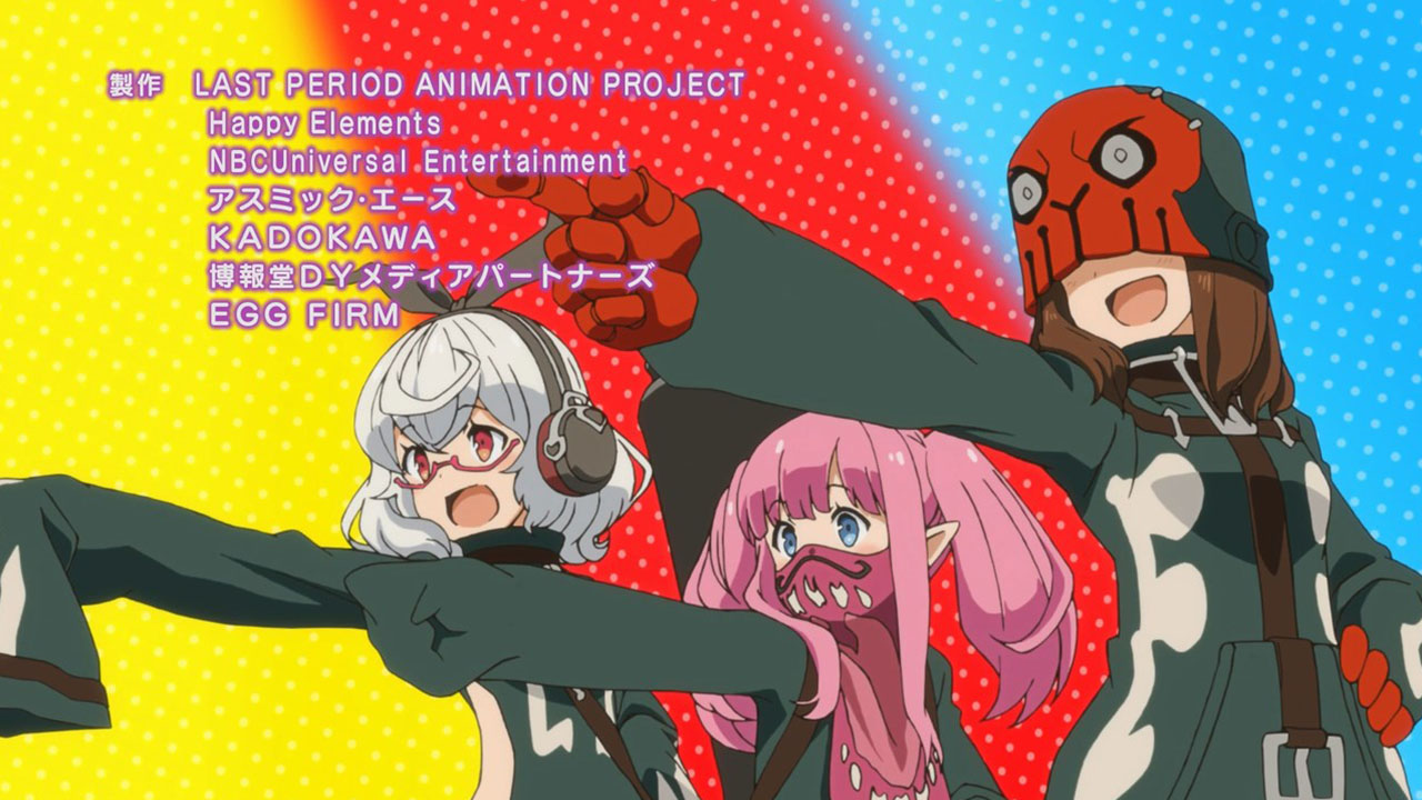 As for the characters themselves, I instantly liked the main four. They’re not anything special—Choco (Tamura Yukari) is deadpan and the resident fourth wall breaker; Gajeru (Murase Ayumu) is rowdy and simple; Liza (Kikuchi Mika) is sensible and serious; and Haru (Hanae Natsuki) is straightforward and a huuuuge softie—but they are likable sorts. And I guess Campanella (Ichimichi Mao) is moonlighting as the villain—or that’s her twin sister or something—but I can’t honestly say I care so far. This show’s strength is that it’s an easy watch, but that doesn’t lend itself to compelling narrative. It mostly just seems silly and fun. I’m not worried about this big betrayal.