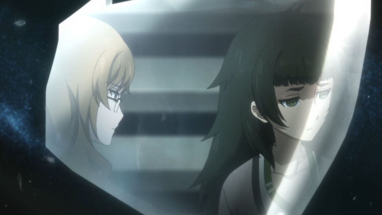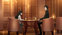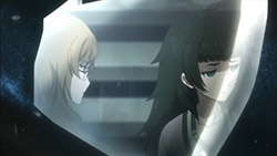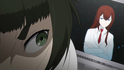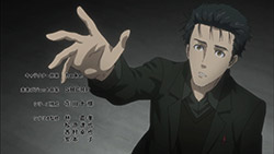 Note: Needless to say, please avoid any VN spoilers in the comments. The rule here is if its appeared in the anime, its fair game if not, its 100% banned. And no spoilers disguised as speculation either (yes, I can almost always tell). Thank you for your understanding.I’ve been a hard sell about this sequel, no question. I wondered whether it had any urgent reason to exists in the first place, yes. But as well, whether it would be able to recapture the magic seven years later with a new director in charge. There’s always a danger with unnecessary sequels to classics that the legacy is tarnished – and no matter what anyone says, a subpar sequel does tarnish the legacy. And maybe just a little part of me was worried that the me of today wouldn’t have liked the original Steins;Gate as much as the me of 2011.Are those doubts totally dissipated? No, not yet. But this episode was so strong that it went a long way towards getting me to buy in. It felt relevant, urgent and focused – and it was narratively pretty rock-solid as well. Not only that, what impressed me was how different this seemed from the original S;G – just as effective but completely distinct in terms of tone and style. If “O” can pull that off over the course of an entire series, than it will have proved its worth beyond any reasonable doubts I might have. But we’re still a good ways from being at that point.Amadeus is the key to all this, at least so far. When catcalls arise from the peanut gallery at the conference as Kurisu’s theory is explained, Okabe rises in protest – in part, as Hiyajou-san ventures, in defense of Kurisu, but also because those doubts cut against the scientist in him. Okabe’s love for and regret over Kurisu has profoundly impacted him in many ways. But it shouldn’t be overlooked that it’s forced him to repress who he is – a mad scientist, basically – in order to suppress his painful memories.The wrinkle comes when Hiyajou (who notes that she’s from Okinawa) lets it slip to Okabe at the reception that there’s more than one Amadeus – there’s one with Professor Leskinen’s memories, and one with Kurisu’s as well. Those memories are from eight months earlier, and when she hears Okabe’s half-truth explanation for how he knew Kurisu, Hiyajou offers him the chance to speak with “her”. But admirably Hiyajou pulls no punches – she warns him that he’s letting himself in for an even more painful future if he agrees to interact with this Kurisu, who seems all too much like a real person but in the end, is not.It’s worth noting yet again just how great Miyano Mamoru can be in the right role – and Okarin is the right role. Miyano is so much more than the caricature of himself typecasting often forces him to be, and it’s wonderful to hear him stretch his acting muscles again (he should thus be limber for Chihayafuru Season 3). His performance as Okabe interacts with “Kurisu” is subtle and restrained, expressing so much emotion without the histrionics we’ve come to expect from his roles. And indeed, this Amadeus seems so real – all of the quirks Okabe loved about Kurisu exist in the ghost in the machine.Obviously we’re talking about science fiction here, but this premise dances close enough to theoretical possibility to present some unsettling questions. It’s obvious that Kurisu is self-aware enough to be lonely – the professor and Hiyajou talk to her, but they’re running out of things to say. And they’ve apparently given her the ability to make outbound calls – which she clearly has been doing with Hiyajou (who swipes her on her iPhone when her questions get to personal) and after their meeting, to Okarin. Does this mean that Kurisu is aware and conscious of herself in there all the time, even when no one has “turned her on” to engage in conversation?I can only imagine that this interaction with her ghost will make Okabe that much more aware of the possibility that he might just find a way to bring the real Kurisu back. It’s no coincidence, after all, that the first question he asks Amadeus is whether someone might one day build a time machine. “Though experiment”, yes (and the answer is a little different from last time) but there’s a Freudian non-coincidental note here too. The old Okarin is definitely still in there, and the natural inclination is to want to see him come out. But it’s so compelling to see Steins;Gate thrive with a completely different identity that part of me hopes that doesn’t happen for a while yet.