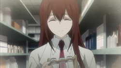 I re-watched the first series a couple of weeks ago and I must say that I had difficulty buying this Kurisu. It wasn’t until towards the end of the ep that I felt she was quite prickly enough to be believable. Glad they finally got there, though.