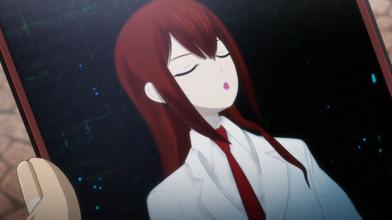 Yeesh—is this ethical, I don’t know seeing a love one die because you can’t save them get imortalized with AI is right or wrong. Amadaius with Krisu’s image makes.me want to know if Okabe will get Krisu’s back at the end of this series; perferably without sacraficing Mayuri.