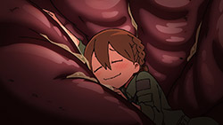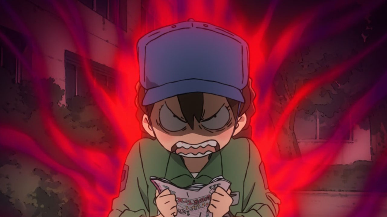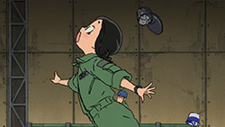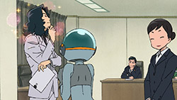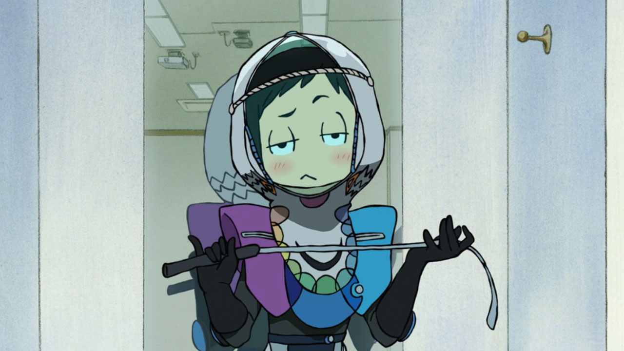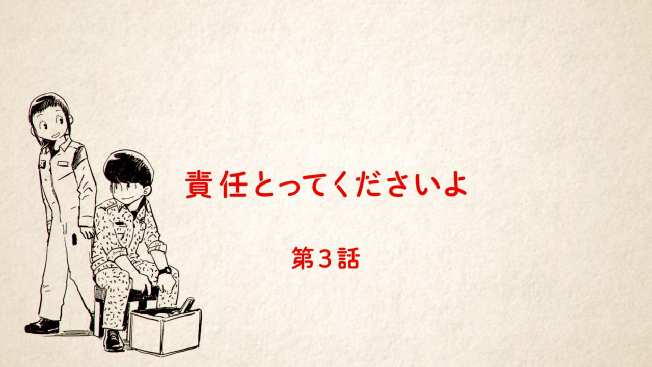 One should never judge a book by its cover, but if we were to judge Hisone to Masotan only on appearances it’d be easy to conclude that it was a children’s show. The simple character designs, the pastel colours and the slow yet uplifting OP song definitely gives the impression of one, at any rate. Can you imagine Miyazaki making something like this? My Neighbour Masotan? Stranger things have happened. But upon actually watching the show, it appears that HisoMaso is insistent on being as inappropriate for children as possible without actually crossing the unseen line. I’m not just talking about the workplace full of creeps, or the weird fetish-fuel costumes, or a preview laced with innuendo. There is a certain irreverence towards children’s cartoons underlying HisoMaso, which seems to come out stronger as we go.