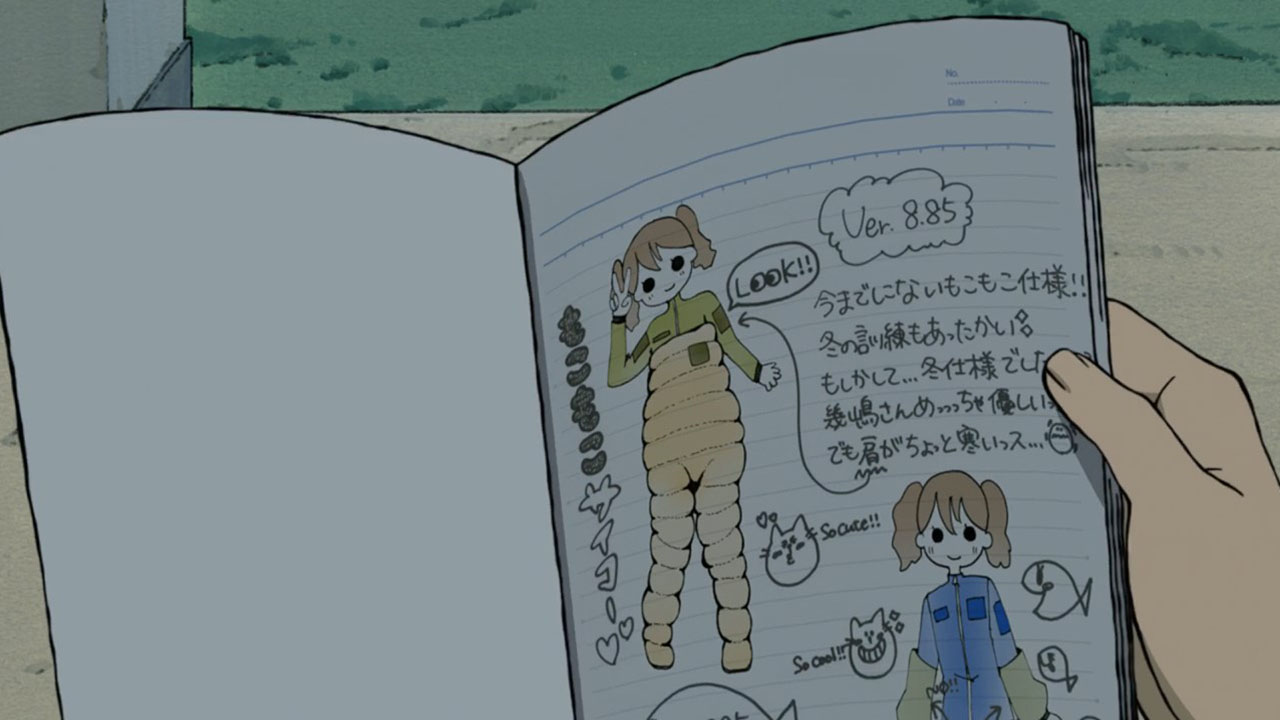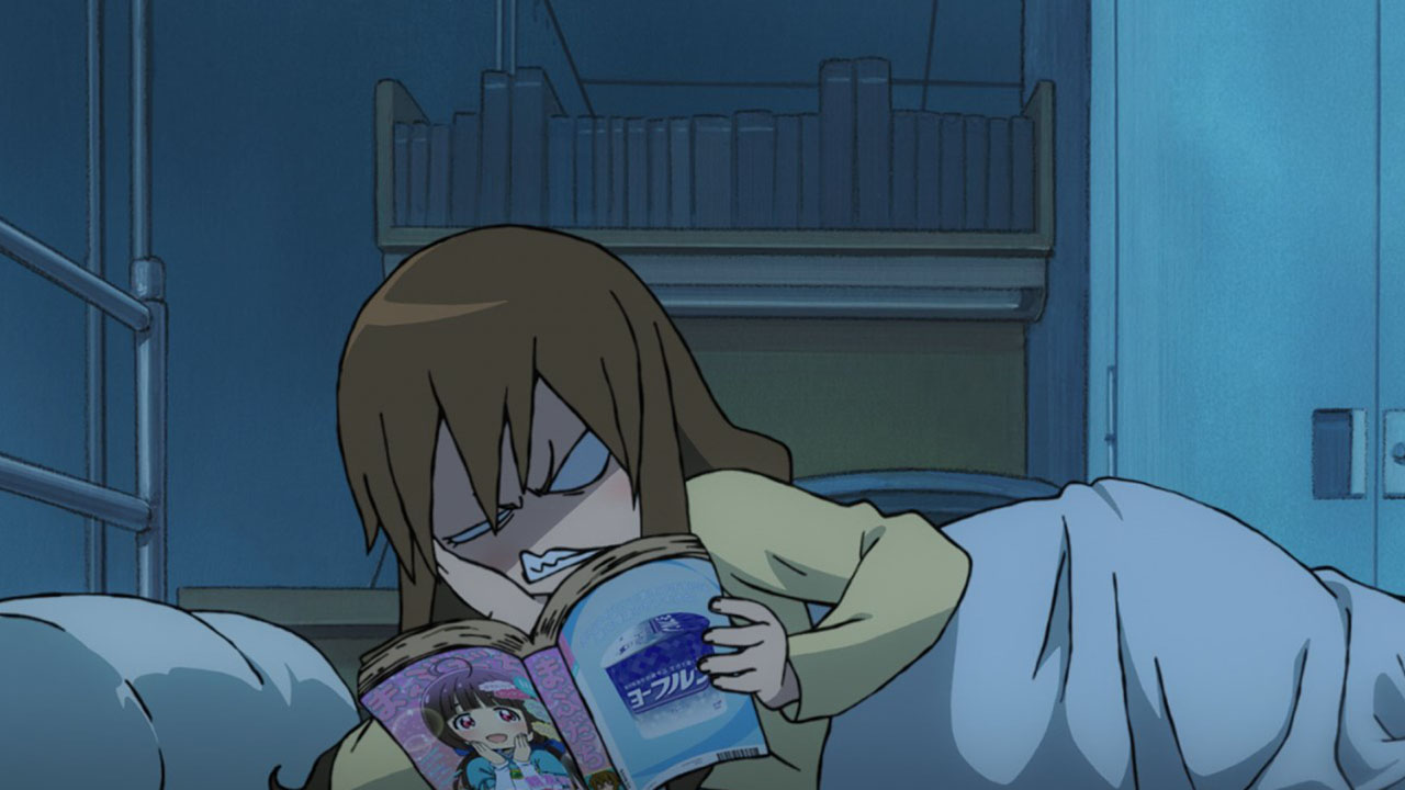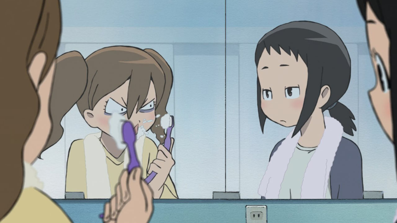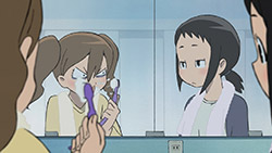 Take this episode that’s mainly about befriending Kaizaki Nao (Kurosawa Tomoyo). Normally we may guess her to be the jerk-with-a-heart-of-gold, who is outwardly unapproachable but actually wants wants to help the protagonist but has trouble expressing herself. That’s such a common archetype these days that Hisone simply assumes the best of her Nao-san without question. But Nao actually parodies the archetype by being a jerk through and through, the Asuka to Hisone’s Shinji, a thoroughly terrible person redeemed somewhat only by her inner maiden and her love for Mama. The parodies go on from there. The usually sweet relationship between the girl and the overgrown animal is instead perhaps nightmarish and definitely gross (unless that’s your thing. I won’t judge). Hisone herself demonstrates some of the dense positivity required of protagonists in her position, but it contrasts squarely with her bitterly cynical monologues. She has the advantage of being selective genre savvy, though; she recognises that the mysterious old women are usually sources of wisdom, and indeed last episode the yoghurt lady did provide advice and comfort. But in what must be a deliberate sendup of the whole trope, this week the yoghurt meant absolutely nothing.