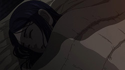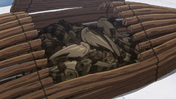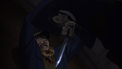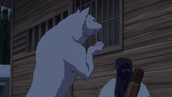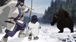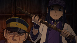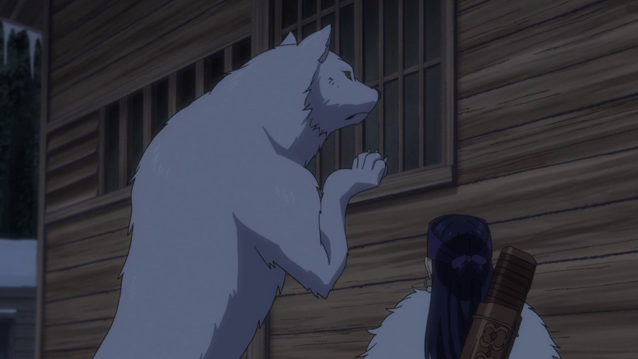 I only watched a bit of One Piece, and haven’t for a long time. What was it about? Searching for the One Piece? But for a story about searching for treasure it’s actually an awful lot of fighting and not a lot of searching, no? That’s fairly standard for adventure stories like that. Often, the prize at the end of the journey—the ‘MacGuffin’ is just an arbitrary goal and what it is and what it does has no relevance to the story whatsoever. All that matters is that everybody wants it. For example, it didn’t really matter what the titular Maltese Falcon was. Its purpose was to put characters into conflict. There are a surprising amount of these adventure-thrillers named after a glorified plot device, and Golden Kamuy is just one of them. The titular pile of gold is as simple as it gets, basically just a lot of money. But Golden Kamuy spends time in this episode to actually characterise this treasure trove, more than would usually be needed. Unlike other MacGuffins, There is a detail about the gold that the audience should care about; its purpose. Asirpa’s father intended it as a war chest to drive away the Japanese. Crazy ‘Stache wants it to fuel his coup. Old Hijikata is gathering ex-prisoners for a fighting force, and presumably will use the gold for a similar purpose. Only Sugimoto wants the treasure for something benign, to help out his friend’s widow. It does say something about the world view Golden Kamuy operate under. So far Ainu superstitions (like the bear-den thing) have held, and they believe the gold to be cursed. No good can come out of it.