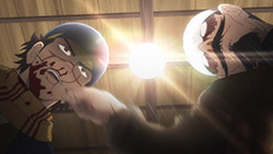 I appreciate Crazy ‘Stache getting some more screentime this week. That bit with the dango skewer was pretty nasty, and it sets it up so when we see Sugimoto later tied to a chair with TWO skewers in his face, we get ‘tortured’ but don’t need it spelled out.Plus, how great is Sugimoto as a fighter? Like, he’s a huge badass (love the animation when he drop-kicked that guy and then stomped on his face) but he can still only take at most two or three of these hardened soldiers from the 7th, because they’re also tough as hell. So the stakes feel really high and Escape King and Asirpa can have an important part to play.Also, Escape King and Asirpa! That seems like a great comedy duo.