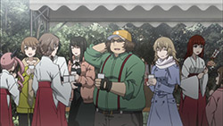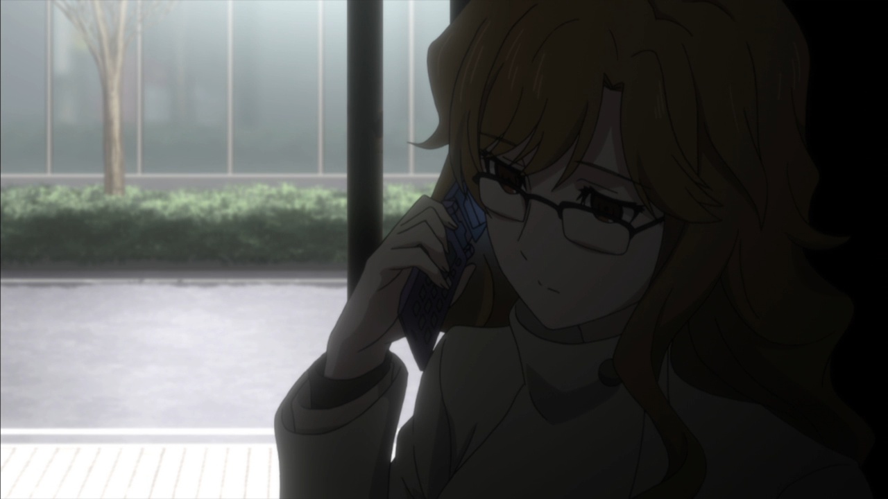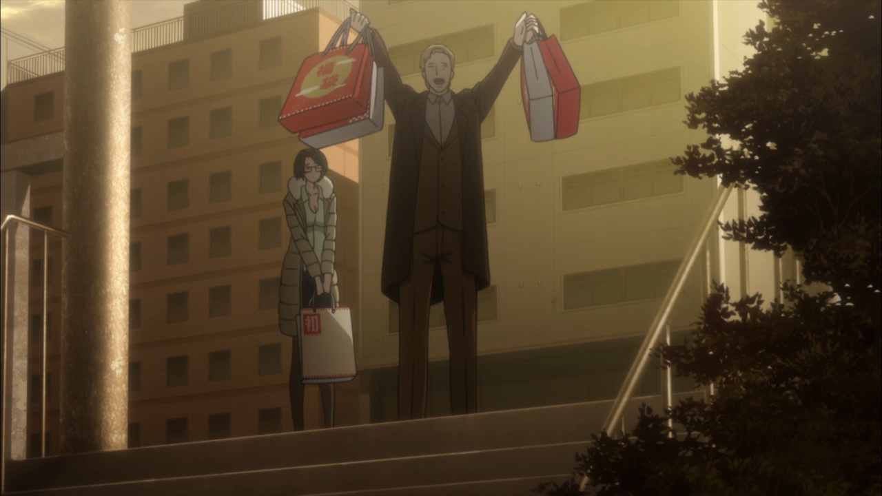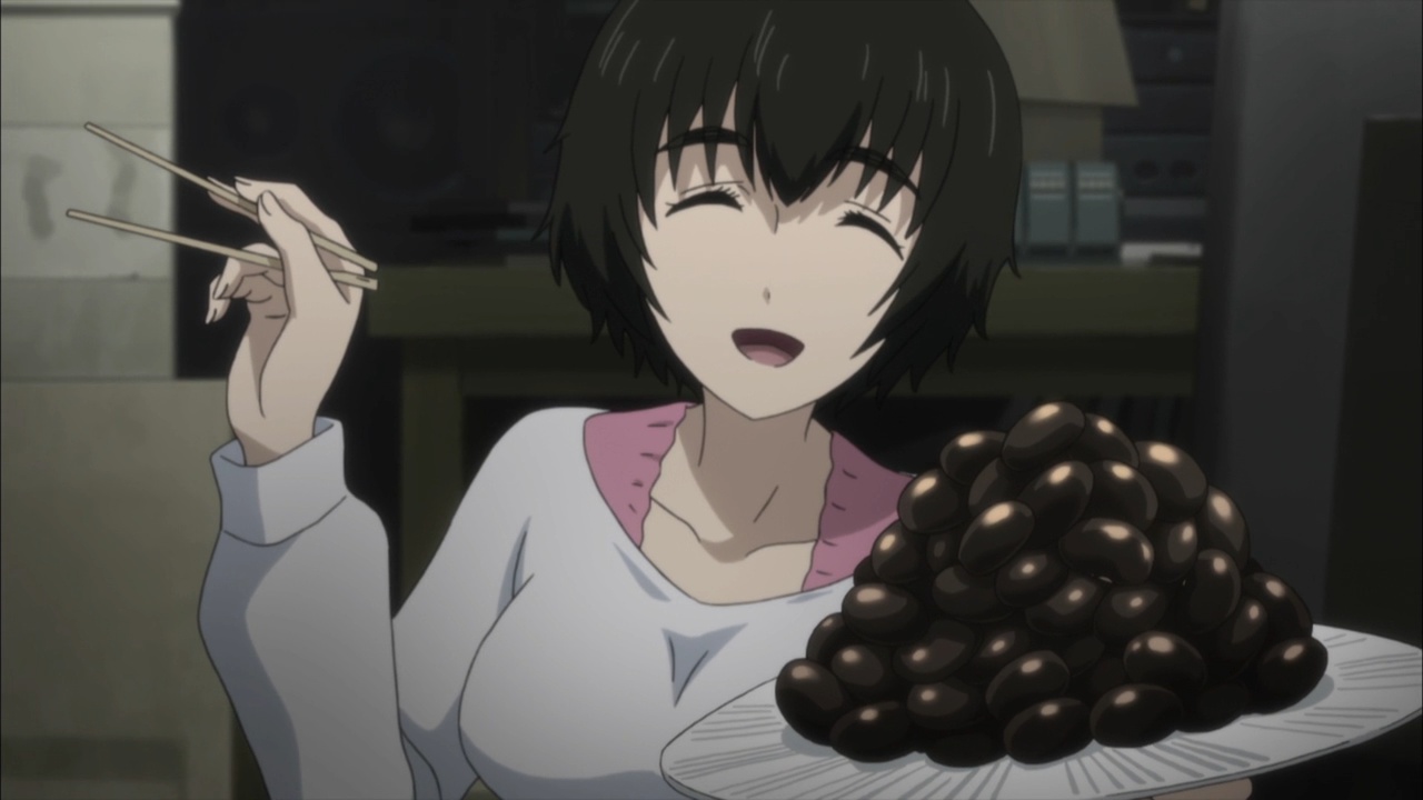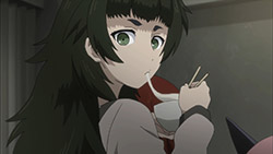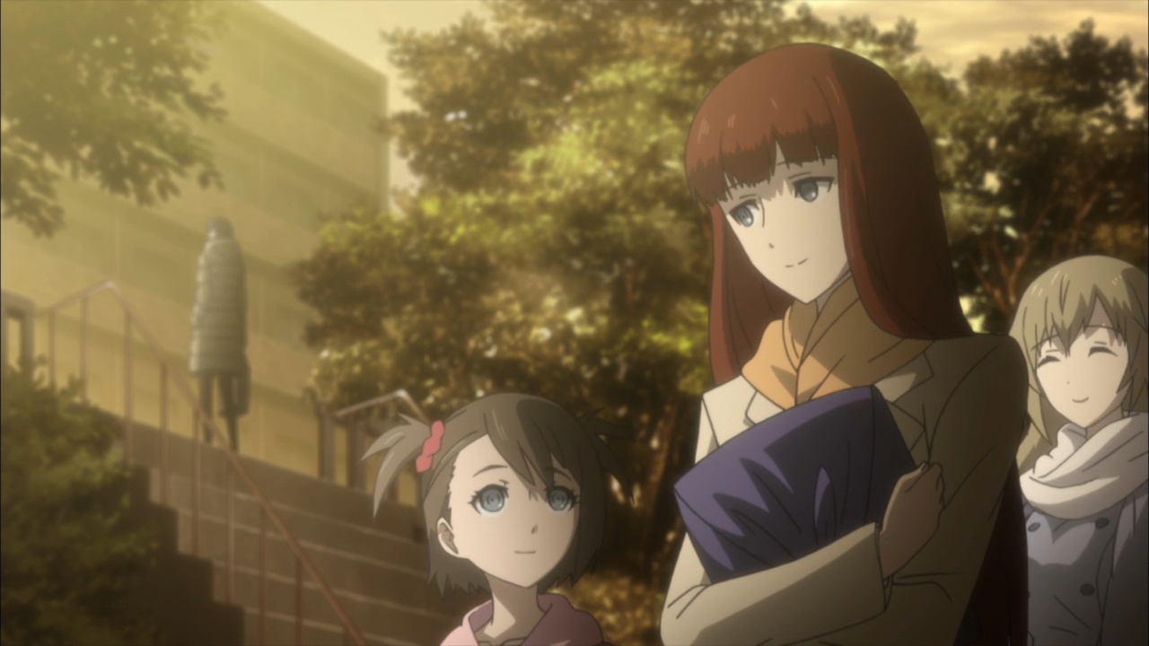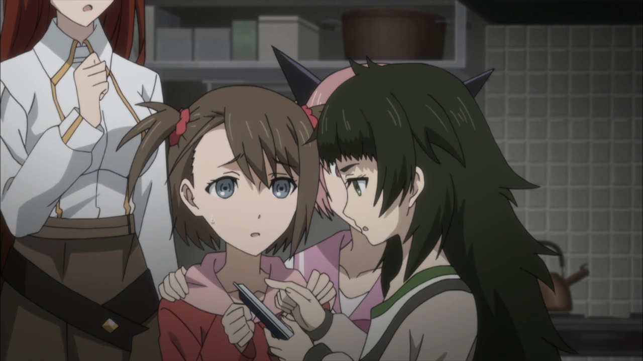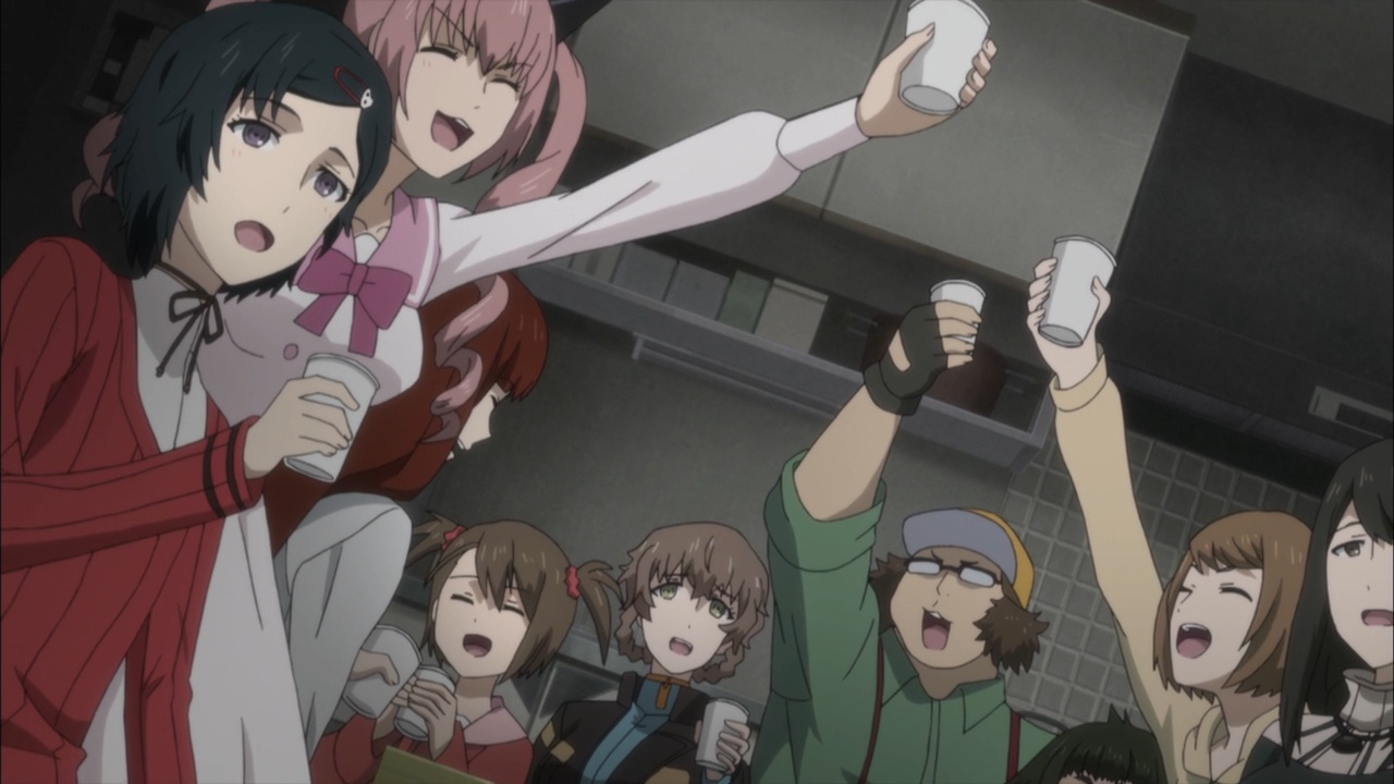 Suspicious people gonna suspicious.I must confess, watching Steins;Gate 0 I feel for Okabe Rintarou in a way I never quite did before. Don’t get me wrong – he’s always been a great protagonist. His charisma – fueled by Miyano Mamoru’s sizzling performance – has always been the spine of Steins;Gate. He’s a fascinating and likeable character who seems quite up the challenge of carrying this story whatever it throws at him.Things are quite different with Rintarou in “0”, though, even as the series as a whole grows more and more to resemble its predecessor. The overarching sense of the narrative is of the past hunting Okabe down relentlessly, its tendrils reaching out to grab him by the ankles and pull him down into his personal Hell. This Okabe is a changed man from the one we knew – more sober, more restrained, far more cautious. There’s not much of Hououin Kyouma left in this Okabe Rintarou, and that’s when he could still try and convince himself that he’d left world lines and reading Steiner’s behind forever.Part of that torture is Kagari of course. It’s not enough that talking to Amadeus is like talking to a ghost – now in Kagari, Okarin has to share the lab with a living and breathing reminder of what once was. It’s still to be determined just exactly what connection Kagari might have to Kurisu (her amnesia conveniently keeps that and other things about her a mystery), but Steins;Gate is not big on coincidences (that may be one of the biggest understatements I’ve ever written). Sadly for Okabe, Kagari’s appearance could be a coincidence and her presence would still be a dagger in the heart.It’s a sure-fire sign that the hidden world is closing in that Okarin is having strange visions, after-images of other timelines. And all the characters we know to be suspicious (and some we didn’t) are acting suspiciously. Tennouji has “something he needs to do” on New Years, and sees strange figures lurking in alleys. Moeka is, well- Moeka. Even Leskinen and Judy Reyes are giving us strong reason to believe they’re up to no good – it’s possible the lingering camera shots of Reyes this week may be a diversion, but that seems less likely than the alternative giving this series’ proclivities.We’re at the point in Steins;Gate 0 now where the illusion of safety around Rintarou is starting to crumble piece by piece, and it’t not pretty. When Maho takes a call from Amadeus at the New Year’s party, the cat is out of the bag as far as that secret is concerned. But there are much more immediate problems to worry about – uninvited guests are coming, preceded by a telltale malfunctioning of mechanical devices. It wouldn’t be a huge leap to take a guess at who they work for, and only a slightly bigger one at who might be in cahoots with them. But the most interesting question of the moment for me is just how well Okabe is going to be able to keep it together – because, as usual, it looks like everything is going to depend on the poor guy.
