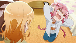 This episode of Comic Girls might not have been as heavy as previous ones, but it gave us a nice opportunity to learn more about Tsubasa and how she warms up to her friends. The first section focuses on Tsubasa trying to understand how average girls her age behave as to depict a slice-of-life chapter of her shounen in believably accurate detail. While she’s been out of the loop for so long since she started writing manga, she wasn’t always as amped up about hiding her gravitation towards cute things. Rukki acts as the one witness the friend group can vouch on for how Tsubasa acted, and tells everyone about how she had longer hair and had an easier time being open about liking cutesy items before she dedicated her being to creating a hot-blooded manly manga. Even though it doesn’t come off like she was trying to get rid of her feminine side and that her decision to channel her energy towards boyish interests wasn’t one out of force, it was clear that it had been a while since she was outward about her personal preferences. Where she had been so used to going with the flow that when she is given the power to create an outfit or find items by going with her gut, she was eager to latch onto a cuter aesthetic with baby birds catching her eye. The episode continues its focus on Tsubasa with how she handles losing her manuscript. Although she has been able to keep her emotional state under wraps for some time, its a rare instance where she opens herself up with how distraught and thankful she is when the manuscript turns up after going missing. It’s not so much that they’re changing her character or forcing her to act differently, but in the process of getting accustomed to Kaos and Koyume, she’s gotten more comfortable with expressing herself without having to rely so much on herself.Koyume also has the spotlight on her in this episode since her manga has continued to be successful. However, she reaches her first big slump since then that has her on the ropes with her sudden weight gain. She was riding high earlier on with how she tries to mentor Kaos and gets the chance to spend valuable time with Tsubasa, but the weight she put on hindered her ability to be able to concentrate on anything beyond trying to lose it even if her sweets consumption has had barely any influence on her weight until now. Much of the motivation she needs comes from Tsubasa’s push to have her work harder to hone her craft and stay focused after her lack of concentration caused her to lose her train of thought on drawing the details on her characters. This episode might’ve given us development to work with for Koyume and Tsubasa, but there were some funnier moments with the other side characters as well. It was a riot to see how Nijino’s enthusiasm to help Tsubasa find her manuscript transformed into sheer horror after her old portfolio was found that had all of her BL manga panels from her time in high school hidden in the book cabinet. Around the end, there was also a hilarious moment where Fuura handed Tsubasa her manuscript as an ordinary student only to shift right into her spooky side as soon as they noticed she looked a little familiar. They were definitely going for a mood less heavy than some of the episodes before it, but it’s not half-bad to get more of Koyume, Tsubasa, and the rest of the cast.Preview