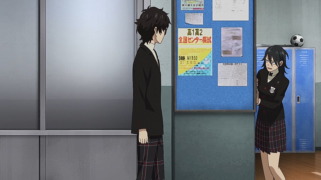 https://images.randomc.net/Persona%205%20The%20Animation/Persona%205%20The%20Animation%20-%2009%20-%20Large%2023.jpgSo how exactly does Ms. Kawakami’s hair go from unkempt…https://images.randomc.net/Persona%205%20The%20Animation/Persona%205%20The%20Animation%20-%2009%20-%20Large%2014.jpg…to this? (A wig? Hair gel/hair spray? A really good hairdresser?)https://images.randomc.net/Persona%205%20The%20Animation/Persona%205%20The%20Animation%20-%2009%20-%20Large%2007.jpgI wonder if the guy the Stalker Girl is stalking is the “Fair-faced Male Student” (a.k.a.: Ikesugi-kun) who says this line in the game:“Sorry, but I’ve just been too tired lately. It always feels like… somebody’s watching me.“Well, this was one subplot-rich breather episode before moving on to the next target. (Though I was expecting Ren to have an easier time catching his breath than Ryuji after that running practice.)