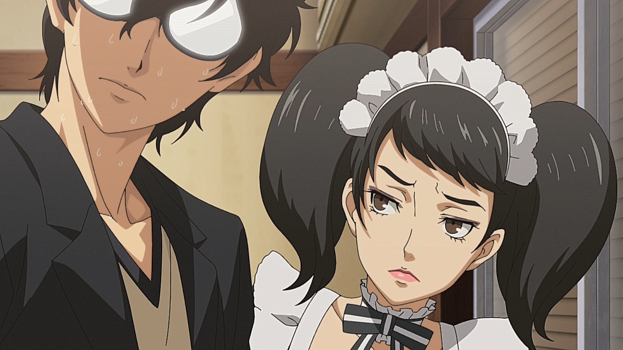 As the episode title suggest, we’ve hit the spiciest section of the game yet with “Operation Maid Watch“, the attempt Ren, Ryuji, and Mishima make to spend some quality time with a maid service that people call in for “reasons“. However, a major snafu is made when Ryuji and Mishima bail on Ren, leaving him to face the reality that the maid they called in incidentally ended up being his homeroom teacher, Sadayo Kawakami. After falling on hard times that have yet to be revealed, she’s resorted to making extra money by doing chores and massages for clients under the name “Becky”, yet has been rarely requested as of late. There are those who find her to be problematic considering that you have the option of sweeping her off of her feet despite having a section dedicated to teacher-student relationships gone wrong with Kamoshida’s arc, along with those who find the statutory aspects questionable with how even consensual relationships between teachers and students in high school come with jail time or condemnation. But in spite of the controversy behind Kawakami being a romance option, she’s a deeply fascinating character both in the game and the anime. I grew to get really attached to Kawakami and found her to be such an awesome person by the time her confidant route was over. My own ranking of best girls in the game is very difficult as more than a few of them are well-written, but Kawakami would be very high up on that list.She starts off acting cold and desperate for any opportunity she can to distance herself from problem students like Ren, but as you start to learn about her after “Operation Maid Watch”, you learn about the circumstances behind her situation, help her out along the way, and eventually create a genuinely sweet bond even with the friendship option. The anime actually does a great job at smoothing everything over as the beginning of her confidant is merged with the resolution of Ryuji’s confidant. Whereas the beginning of the game’s route with Kawakami makes it feel like she’s worried about you blackmailing her constantly while you get excited about the taboo behind calling your teacher up to be your personal maid, the anime has it seem like Ren gets the idea to call her as Becky to talk about Ryuji. Rather than having it feel like you’re deliberately going into her confidant with the prospect of getting to “the best part” of dating your homeroom teacher, it smooths it over by both giving Ren the information he needs to help Ryuji out and offering Kawakami development as she gets a better understanding of Ren and Ryuji as students whose reputations were tarnished amidst Kamoshida’s chokehold on the student body. Ryuji’s confidant has the distinction of making him far smarter and nuanced than his behavior in the personality, especially since he comes off as understandable, calm, and smarter than you’d think if you just had his in-story attitude and actions to go off of. Ryuji goes above and beyond to make amends with his old club and temper their attitudes by ensuring their new coach won’t exploit the old team that is planning on reuniting. Though we won’t be certain how much of a blabbermouth Ryuji will be about wanting to be famous or out himself as a Phantom Thief to almost everyone he meets, it did do a great service to Kawakami by having her continue her route with Ren not out of fear of being outed or the promise of in-class perks like reading/crafting tools during class, but because she is rediscovering the spark that inspired her to be a teacher in the first place. They did get into the massage perk Kawakami’s confidant gives at a far quicker pace, but it might make for some comical material about how her massages are your only line of defense against Morgana telling you to go to sleep all the time.What also made this episode great was how much of the game’s spirit is starting to shine in many of its nods to the side cast and mechanics from the original. As someone who’s wild about side characters, I was ecstatic to see that they kept in the quirky students at school like the newspaper club’s president who you talk to about the game’s events despite her hesitation to tell you, the librarian who is confused about why you would want to keep renting books from the school library, the lunch crowd where you can purchase quality bread items, and the stalker girl who constantly finds herself enraptured by the boy she’s staring at. Early appearances of Haru are also appreciated as well since she was neglected for much of the beginning despite being a student at Shujin. It was also nice to see more of Ms. Chouno as her concern for the school’s reputation is alleviated with how inspired she is by the idea she was given that Kawakami is just deeply concerned about her students. It might be amends for not including Funky Student in Persona 4 the Animation, but it’s nice to see they remembered some of the little things that made Shujin Academy fun to walk around in and converse with students at. They also included small mechanics that make the game easier like cleaning dirty scavenged items in the laundromat and the hot springs nearby where an old guy is constantly turning on the scalding hot water at. They’re small details that don’t directly affect the plot in a significant way, but I appreciate the effort this episode went into including them all in a way that doesn’t feel overly cluttered. Next time around, it’ll be cool to see Makoto in action as the Phantom Thieves take on their next target.