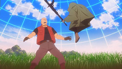 Before talking about that really charismatic and likable enemy that LLENN and Yuka found, let me take a few minutes to just word vomit about how awesome Pito’s fight scene was. From the music to the animation, all the way to the maniacal laughter coming from Pito as she obliterated her enemies, it was seriously the best thing I think this show has given us thus far. If I had one complaint, it’d be that the whole thing should have been a few minutes longer just so we could see more of Pito kicking ass. If I were to pick a specific point to talk about though, can we all agree that the choice of BGM for the moment was near perfect? It’s been a while since we’ve heard this song (the last time was when LLENN was duking it out at the end of the first Squad Jam) and the intro to it was freaking fantastic. Amping things up right before the action kicked off, I loved how it transitioned into that high BPM beat that perfectly flowed with Pito’s movements.