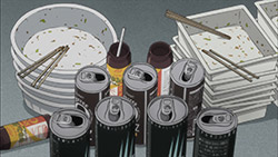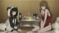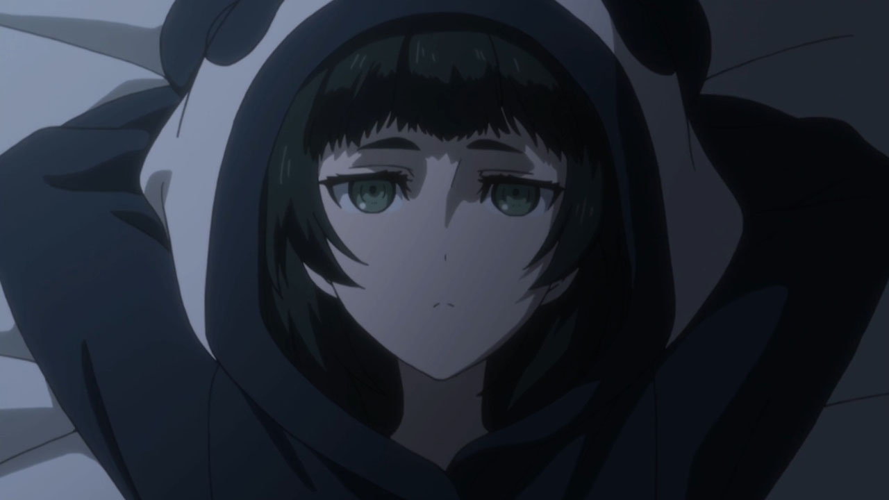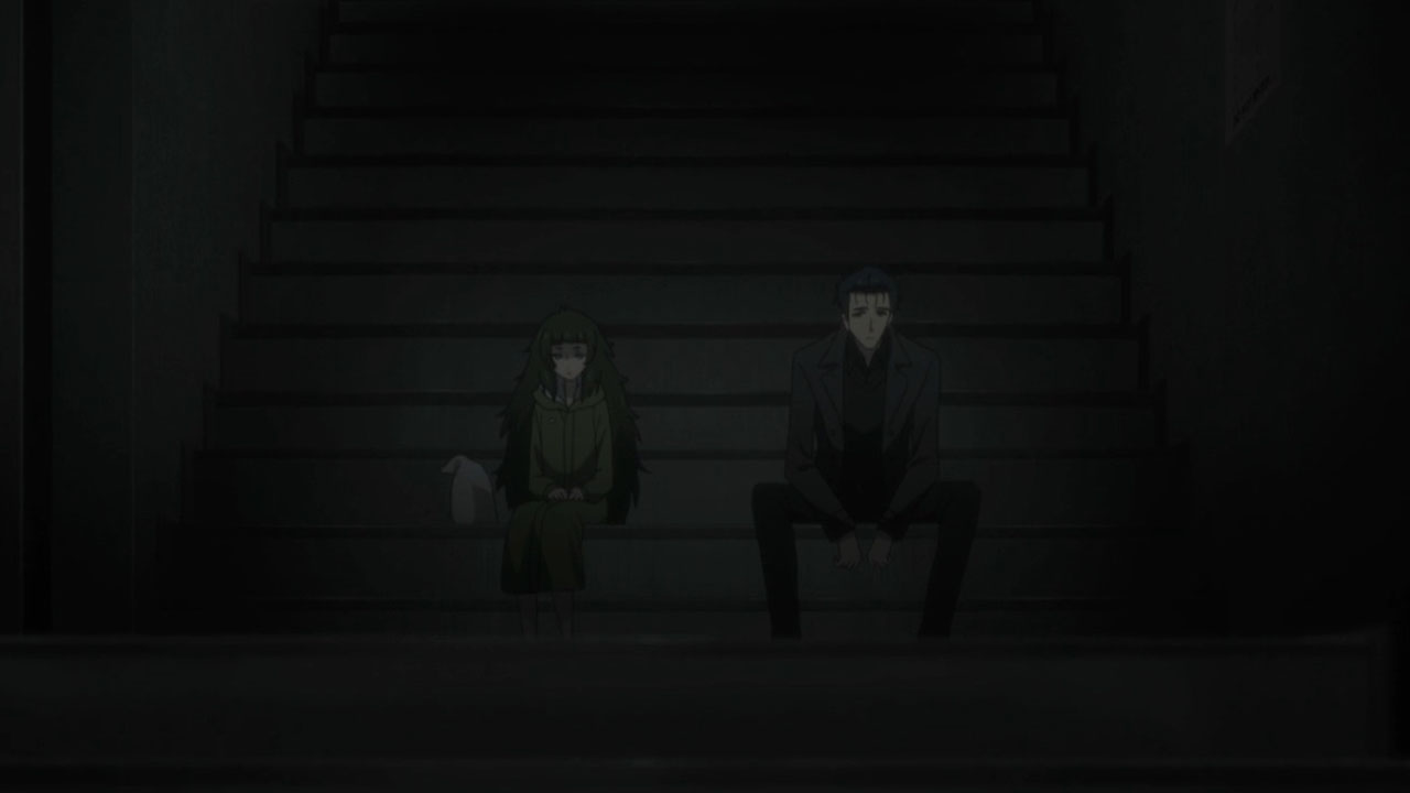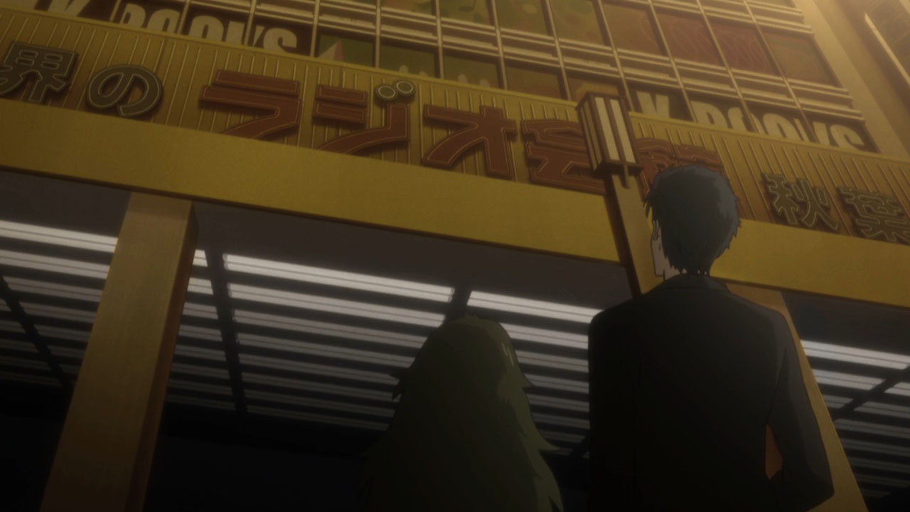 If there’s one single element that makes Steins;Gate 0 different from the original series, I think it’s Okabe. Hououin Kyouma is nowhere to be seen here – in many respects the character is almost unrecognizable from the first series (at least in the the first 20 or so episodes of it). Okarin has always seemed older than his years, but ironically in a very different way then from now – it was his brash confidence and assuredness that made him seem that way once. Now it’s his world-weary and beaten visage and demeanor – this is a man who’s seen way more than any man his age should have to.But the other major change isn’t an existing character, but a new one. Maho is quite an important part of “0” – has been from the beginning, but never more so than this week. She’s the focus of this episode for most of its length, starting with the “Salieri” metaphor. Clearly she sees herself as the less brilliant and overshadowed craftsman lost in the blinding glare of genius from a colleague and rival. In her case her feelings for Kurisu seem less conflicted than Salieri’s towards Mozart – though they’re still conflicted, and movie Salieri (who’s the one that really matters more than the real one in this context) did admire and even love Mozart in his psychotic way.It’s pretty obvious when we see Maho put a laptop into a locker in Akihabara that this is an important moment – and whose laptop it is. We don’t know who the “trustworthy” expert she has analyzing it is, but it’s a good bet that they’re not trustworthy – and neither is Leskinen, who continues to play the affable clown role a little too well. Poor Okabe – this is really just another reminder of how Sisyphean his task is. No matter how he tries to keep things from unraveling, the world goes where it wants to go – every time he heads off one potential disaster at the pass, another leak opens up somewhere else and the boulder rolls back to the bottom of the hill.Maho is certainly an interesting sort, though I still see no real evidence that Okarin feels for her in the same way she does for him. Her dream Akiba is the old school one, the disappearing labyrinth of tech parts junkyards and swap shops that once dominated the neighborhood. She’s delighted when Okabe shows her this side of Akihabara, and she’s quite the slob too – she and Moeka are certainly doing a number on Feyris’ condo. I could have done without all those scenes at the condo – that sort of otaku pandering is the most tiresome side of Steins;Gate. But it is nice to gain some insight into who Maho is as a person.The dynamic here is odd as hell – an A.I. based on Okabe’s true love trying to play matchmaker between he and the best friend who was obsessed with her. Okabe may talk of “moving on” but I’m skeptical that his continuing relationship with Amadeus is the way to do it. Maho doesn’t realize it, but in lumping herself in with Mayuri she’s making an ominous statement about her own chances. The thing is, I think she’s right – she’s perceptive to be certain. She’s seen the pain Okabe is carrying (“Why do you look so sad all the time?” sums up this Okabe about as well as anything could), and to him, Maho is like Mayuri – someone to be protected. But not, sadly, someone to be loved the way he loved Kurisu.