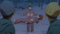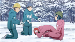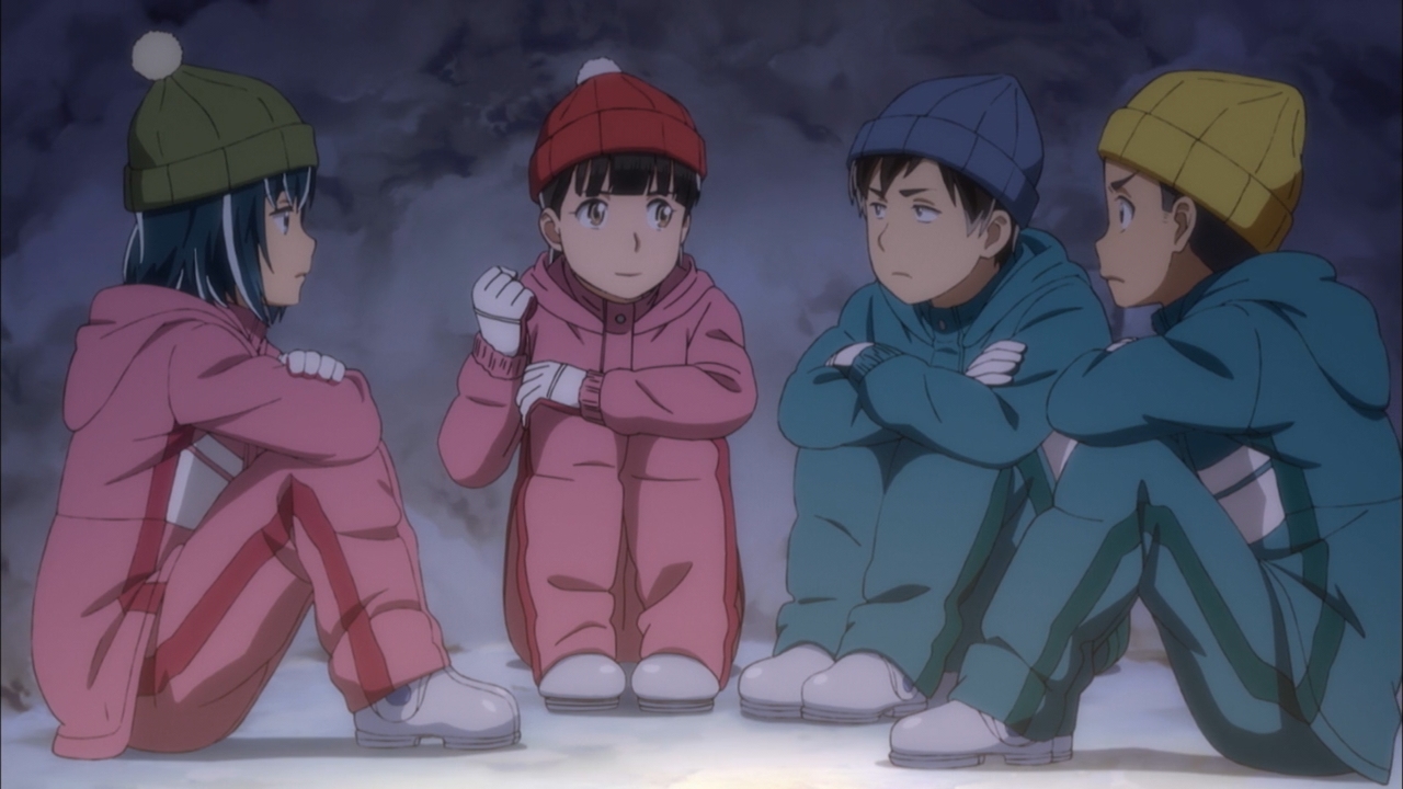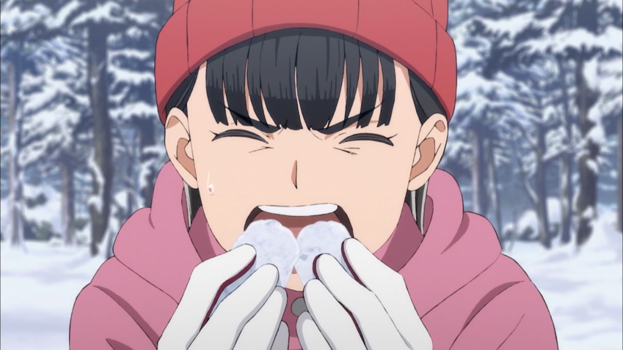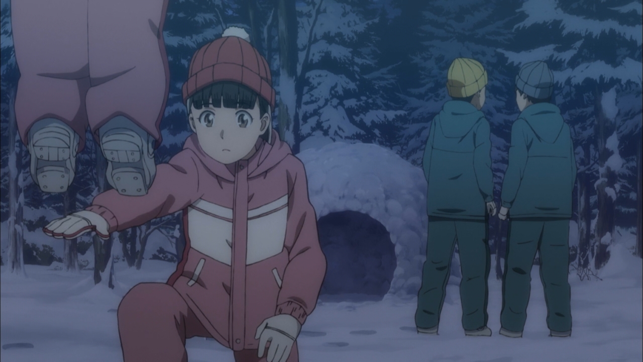 That was certainly an odd way to bring the saga of Hinamatsuri to a close, but then this was a pretty odd series altogether. If ever a show seemingly needed two cours it was this one, but… you know the drill. I won’t deny that some of the directorial choices were odd, but for the most part I think they were odd by choice. And most importantly, the vast majority of those choices worked either comedically or dramatically (and sometimes both) I’m not sure the last one did, but I give Oikawa Kei (who’s looking an awful lot like the new Oota Masahiko) credit for swinging for the fences.I had the feeling we weren’t going to get anything too “final” here, and indeed we didn’t. First off we had the conclusion of last week’s cliffhanger, which told us that Hina went missing during the school ski trip. What wasn’t revealed till this week was that she was with Hitomi, Takashi and Kengo, which led to a vastly entertaining segment with the four mismatched 7th-graders trying to survive in the mountains. Frankly as soon as Hina let loose “Snow nanu da” (that’s one of the best Japanese puns I’ve heard in ages), I was on-board.This was pretty much good, straightforward comedy, full of clever gags like Hitomi and Takashi’s reaction to Kengo’s reaction to their absolving him of blame for what happened (we’ve all been there – you say it to make the person feel better, but you know it’s actually their fault). In the end Hina has no choice but to reveal her powers to the others, all of whom are understandably highly skeptical at first. As for the end of this chapter, it gives is a smidge of Nitta-Hina bonding without going over the top – and Anzu sneaking into Nitta’s flashback Hina montage was like a dash of vinegar to keep things from getting too sweet.Then things got really odd. I guess Mao was always going to get circled back to in the end, since she was the one that featured in the anime’s very first scene. Given the time limitations it was operating under, though, it kind of feels to me as if Hinamatsuri would have been better off dropping her character altogether. As it was, we got a perfectly entertaining but very disconnected (especially as the entire B-part is post-credits) chapter set three years later, featuring Mao and Atsushi (the street rocker Hina hooked up with all those years ago) in China. He’s looking for somebody who can help him achieve the same magic he had with Hina; she’s a living commercial for a martial arts dojo posing as a Buddhist temple. Given that she’s desperate to get to Japan these two are in a position to help each other – especially after Mao realizes Atsushi knows Hina.Atsushi’s quest to pioneer “Rockusion” is a cute sidebar, no more, and for me at least I never really got to know Mao well enough to be emotionally vested in her character. I am curious to find out what happens to her once she gets back to Japan – but since the anime will never tell us, that seems like a mixed blessing at best. The fight scenes were good at least, but on balance this chapter feels like the first episode of a spinoff rather than the last episode of an existing show.So in the end, the end wasn’t Hinamatsuri at its very best – but there’s no shame in that. It was still very good, and this series at its very best was some of the best anime of the season. Oikawa-sensei, as I mentioned, is reminding me more and more of a young Oota Masahiko – a vastly gifted comedy director who can excel in a variety of styles. Given that they both worked on Minami-ke it’s not impossible that Oikawa had Oota-sensei as a mentor of sorts, though as far as I know they never worked on the same season of that show.It’s also worth noting that .feel is quietly emerging as a force in anime, and they’ve had a very impressive calendar year indeed – Tsuki ga Kirei, Kono Bijustsubu ni wa Mondai ga Aru (which Oikawa also directed), the original (and better) season of Dagashi Kashi, Hinamatsuri – that’s a hell of a run, especially for comedy. .feel has been around for a long time, but they’ve leveled up in a big way. Hinamatsuri isn’t the very best of that group, but at its best it could trade punches with any anime comedy both in terms of laughs and feels. I should have listened to the folks telling me the manga was special, because clearly it is – I missed the boat on this show, but I’m very happy to admit I did.