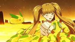 I find the show enticing by leaving so many questions unanswered – why are teh alternative worlds coded to wavelengths? why is the particular world they visited covered in golden snow and inahbited by bunnies/snakes? why does alt-Asuka fight them? what happened to Asuka’s (presumably missing in both worlds) brotehr? are there any other worlds out there?oh and find the cast good enough to go so far, girls are pretty archetypical but with enough of personality to go