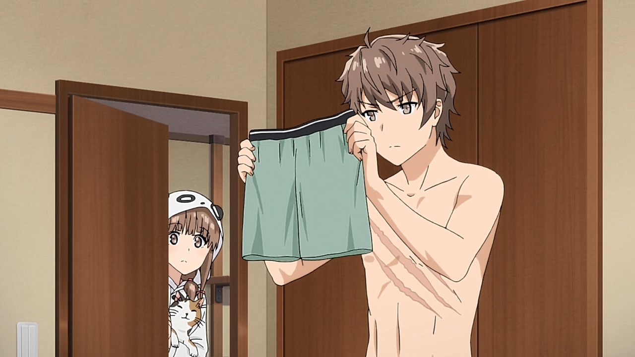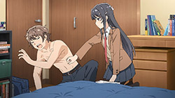 This show seems to be a literal interpretation of “words hurt” applied to the cliquish Nature of middle/high school life. Everyone seems to be directly affected by what others say about them – with Puberty Syndrome being a direct reflection of what’s being said about them/how they feel. For Sakuta, this is because he was tied to an incident where three students were hospitalized, but despite being one of those students, he received a brunt of the blame.Hidden for those who haven’t watched yet.I got the impression from the bedroom scene that this was more the story that his classmates brewed up around his hospitalization than an actual multiple injury event. Makes you wonder what exactly happened to him/was done or said that would induce three spontaneous heavy wounds to the chest, doesn’t it?