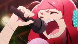 The whole sequence at the concert was epic. That was one BRUTAL DISS of the Death Metal scene! I’m guessing the creators of the anime have a very poor opinion of the genre.Death Metal fans are depicted as a bunch of cretins who can’t tell a musical performance by a real band from the random antics of a group of mindless zombies — and by random antics I mean grotesque screaming, spastic shaking, vandalizing the venue and biting the audience. They loved it! In fact, everyone thought it was, like, best concert ever.That was some vicious disrespect…(Not that I’m complaining, mind you. Actually, I give the authors two thumbs up for a job well done. They sure understand Death Metal. ^_~ )
