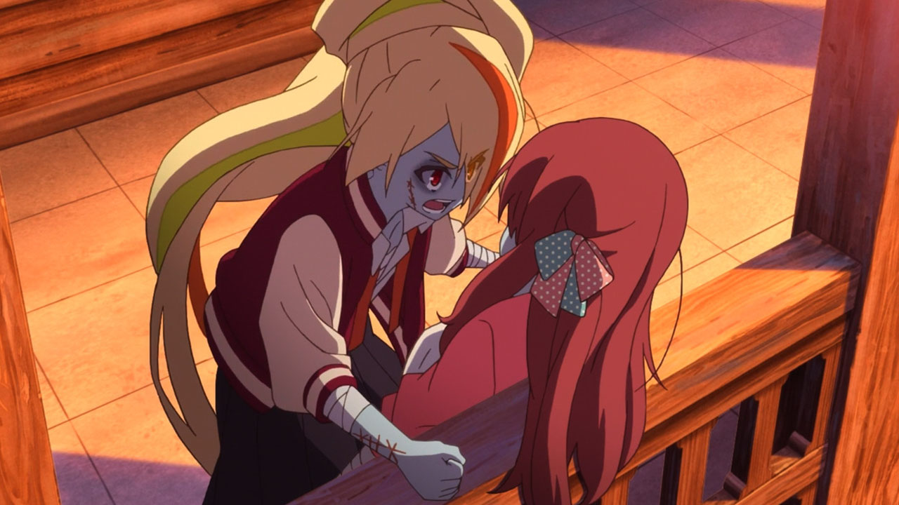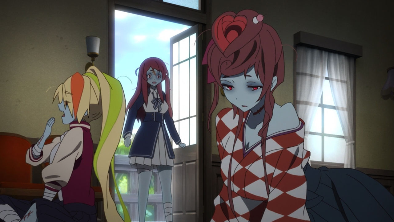 I wonder if most of the novelty of the premise will last for all of this one episode. Much of it stemmed from all but one of the girls being mindless walking corpses. It looks like most, if not all of them, have regained their human personalities as of the end of this episode, however. Wouldn’t be at all surprised if this thing simply degenerates into a mostly generic idol anime from here on out. Because a zombie with a human mind isn’t really all that different from a regular human besides having a rotting body, and you can only pull the gross/freak out and contortion cards so many times before they get old.