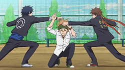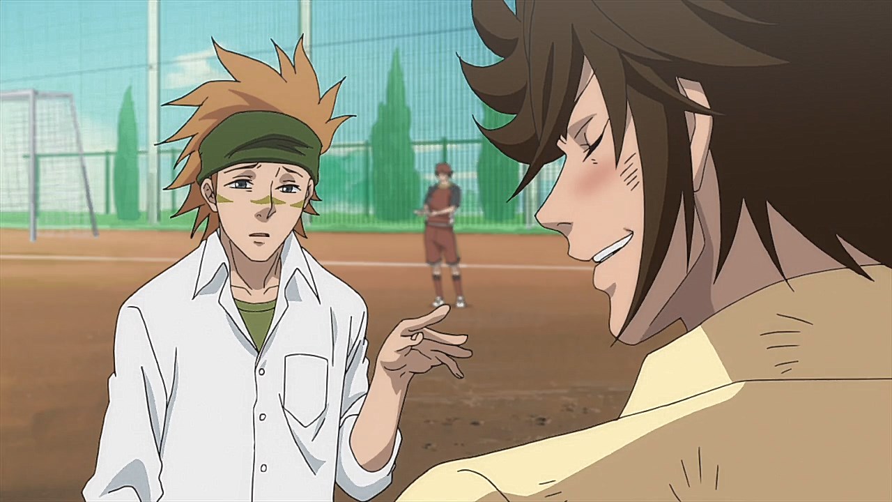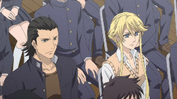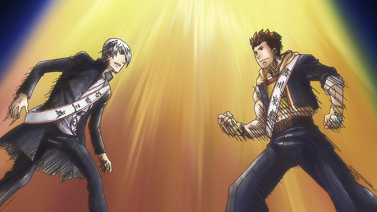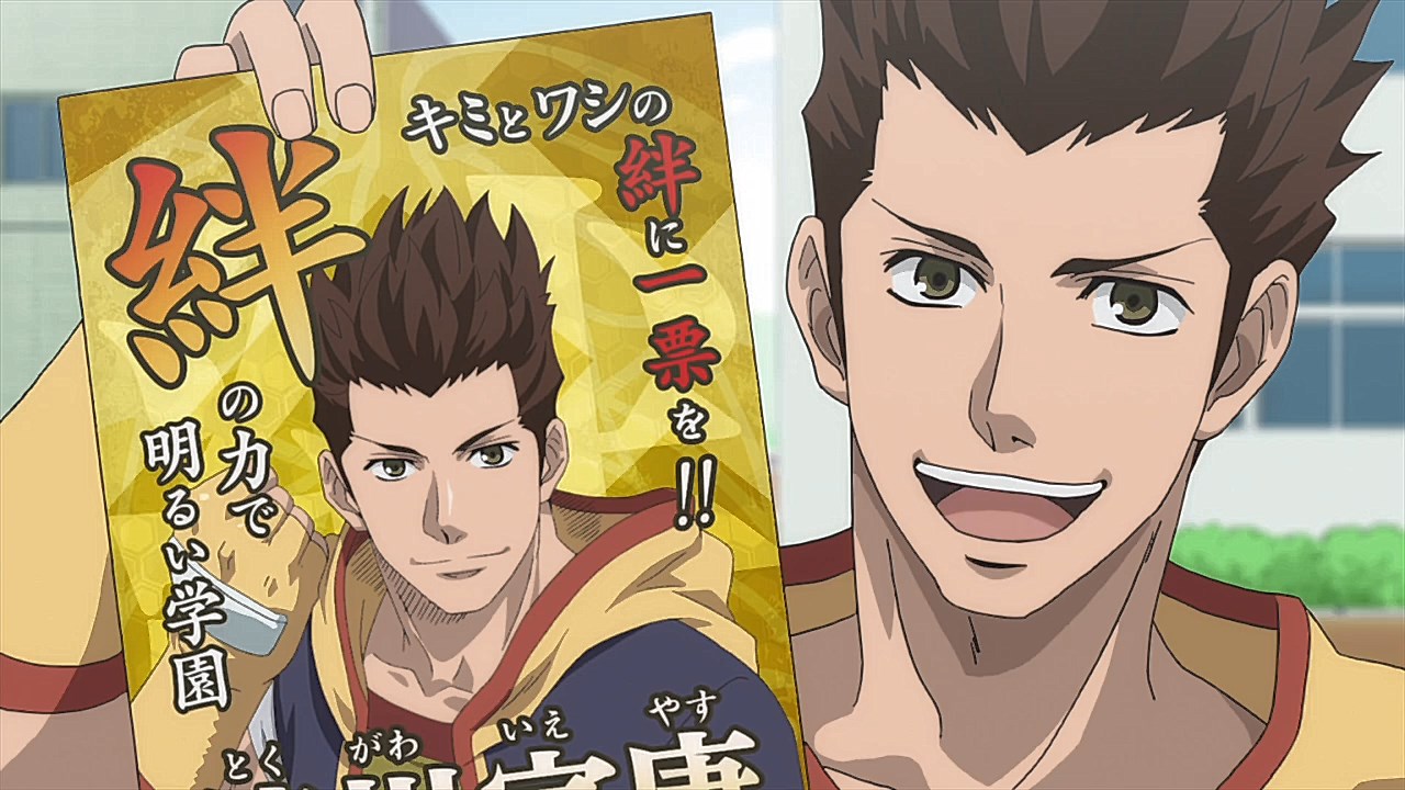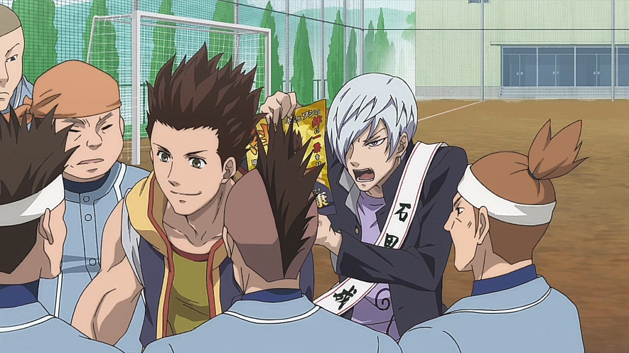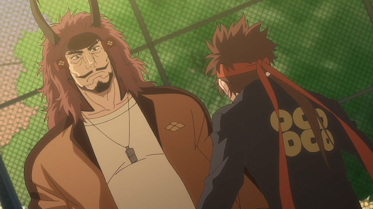 For many gamers, Sengoku Basara is a fun hack-n-slash that takes Sengoku-era generals and warlords, gives them a fresh coat of anime-style paint, and pits them against each other in the battle for supremacy. While the cast of the Dynasty Warriors games can get overwhelming if you haven’t brushed up on your knowledge of the Romance of the Three Kingdoms, luckily the focus on Japanese history is easier to comprehend as allegiances are made apparent by their affiliation or their wavering faith in their present leader. In Gakuen Basara, it takes the relationships of these warriors and simplifies it all down to a fun, comedic school setting. Your mileage may vary, however, on whether the jokes register with you depending on your experience with the games and the history.The first episode is centered around a competitive game between Sanada Yukimura, captain of the Soccer team, and Date Masamune, captain of the Baseball team, as they fight over who gets to use the field. As they’re trying to play their baseball/soccer hybrid, their game is heavily interfered by a student body presidential campaign between Ieyasu, a noble student who snitched on Hideyoshi for starting a revolt against Principal Oda Nobunaga, and Mitsunari, a student sympathetic to Hideyoshi who resents Ieyasu’s role in taking him down. The winks and nods along the way towards the historical context of their real life selves as well as their relationships within the game are scattered about as characters in the cast are constantly introduced at breakneck pace.It’s at this point where you would notice the divide if you were hopping into this assuming you would be able to laugh at every joke. Much of the humor is dependent on how much you know about the warriors both through their real life counterparts and their connection in Sengoku Basara. There are some funny gags that work to its benefit like Masamune’s tendency to shout in English when he’s excited or furious, Akechi being a creepy nurse, Magoichi Sayaka being a disciplinary teacher who mows down a biker gang for not wearing their helmets, Hideyoshi’s revolt being shown through dramatic stills, and Principal Oda Nobunaga outright causing explosions and building fires in his wake when he suspends Hideyoshi and bans the Soccer and Baseball field from being used period. However, there is a threshold that can be hard to pass regarding if you’ll be able to fully appreciate how some of the warriors are depicted like Sasuke, Honda, Motochika, Maeda, Matsu, Inuchiyo, Kingu, Mori, Otani, and the remaining cast. It should still be a fun anime with or without context, but it does feel like something’s missing without the full experience of the games.ED Sequence