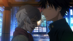 But for now, were thrown back to the normalities of Index, picking up from where things were left off. It almost feels like the series has never been missing for the past few years, with the same old familiar characters and same old familiar gags (FUKODA!!!) making round after round, possessing the intimate warmth of a long-lost friend. How I’ve missed them! Toumas misfortune is the stuff of legends and who wouldnt derive amusement from the unfortunate misunderstandings he gets caught up in? It really seems like he cant avoid precarious situations involving women, getting chomped by Index, fastballed by Fukiyose, having a chair thrown at him by his teacher, then getting zapped by Misaka when walking home (that’ll teach him from chasing after MILFs!) What amazes me is that this all happens in the space of a single episode to boot! Truly, such misfortune. And it isnt just the young girls too – with old granny Monaka looking to get a slice of the action by coercing Touma at gunpoint. However, unlike circumstances with other girls inflicting violence onto Touma, Monokas appearance is not motivated by tsundere inclinations and actually advances the plot by a significant margin. Thanks to her, this episode ended up being relatively fast-paced and we got to the crux of the matter fairly quickly.