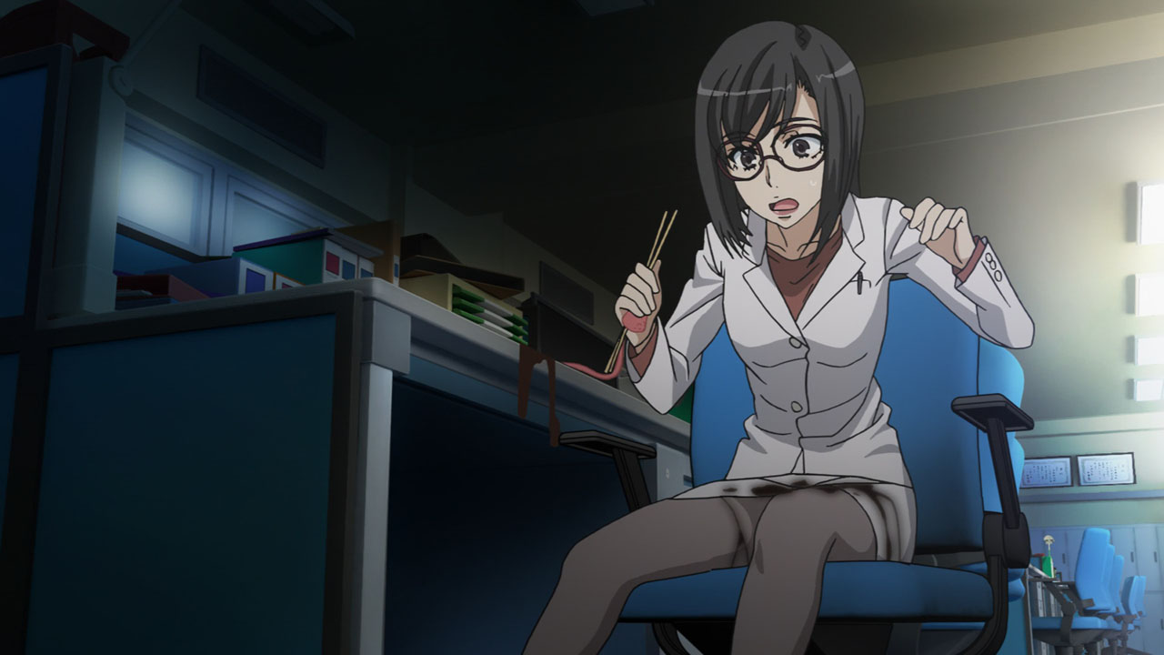 Oh wow, poor choice of words… Mugino kills Frenda by cutting her in half because Frenda sold out ITEM for her own survival.