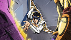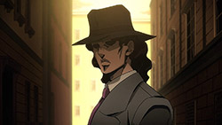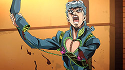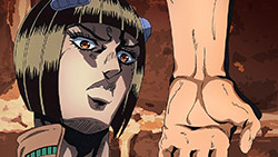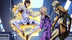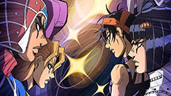 Oh yeah, been looking forward to see this JoJo pose in animated form! Talk about a short wait.And that choice of music for the ending (an R&B song from 1995!) is just freaking smooth. Had a little chuckle at the JoJo fans practically taking over the comment sections of YouTube videos of the song, though. (As they did with “Roundabout,” “Walk Like an Egyptian,” “Last Train Home,” and “I Want You.”)Anyway, isn’t there a Stand in this part named after the Spice Girls? (Or at least their song, “Wannabe”?) Curious to see how the official subs edit that…out of bile fascination, of course.