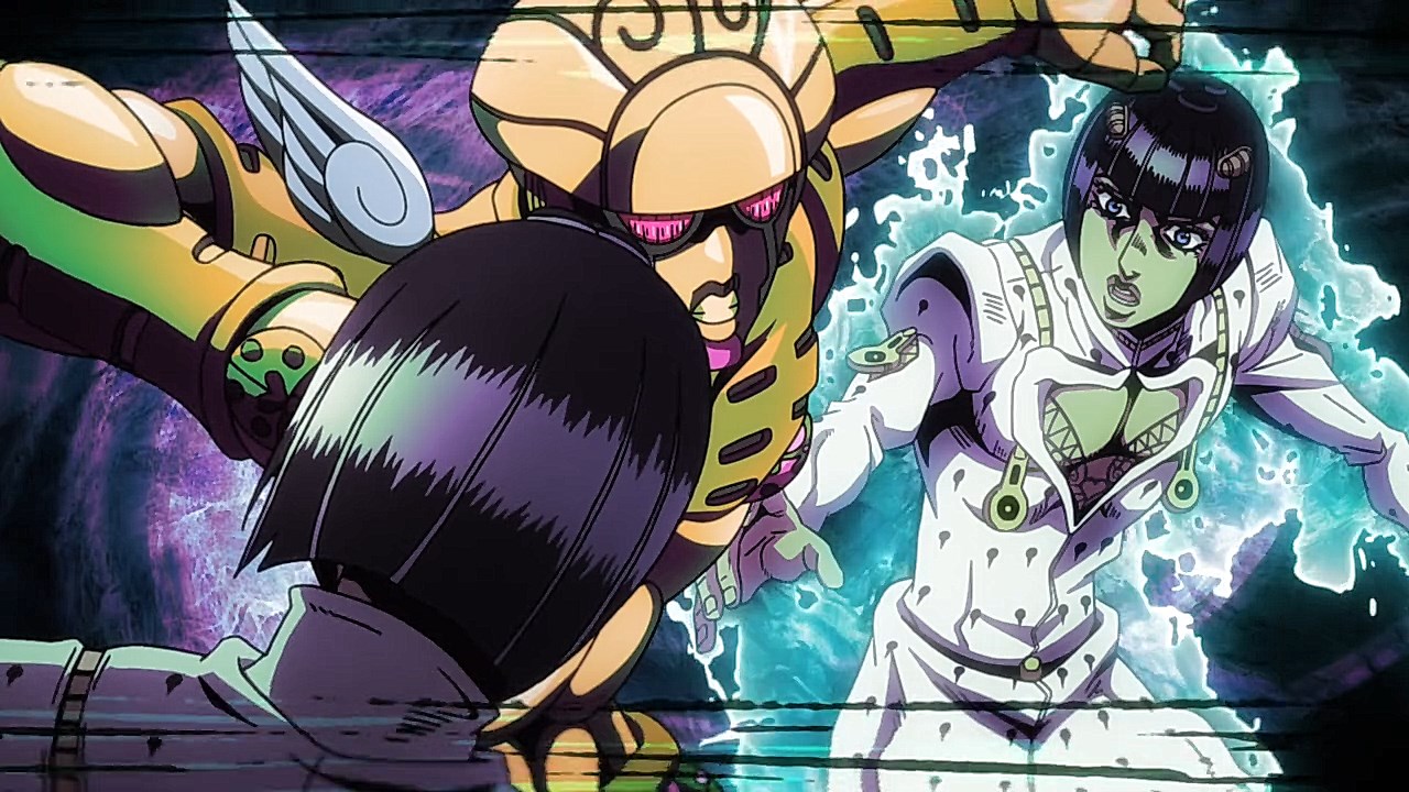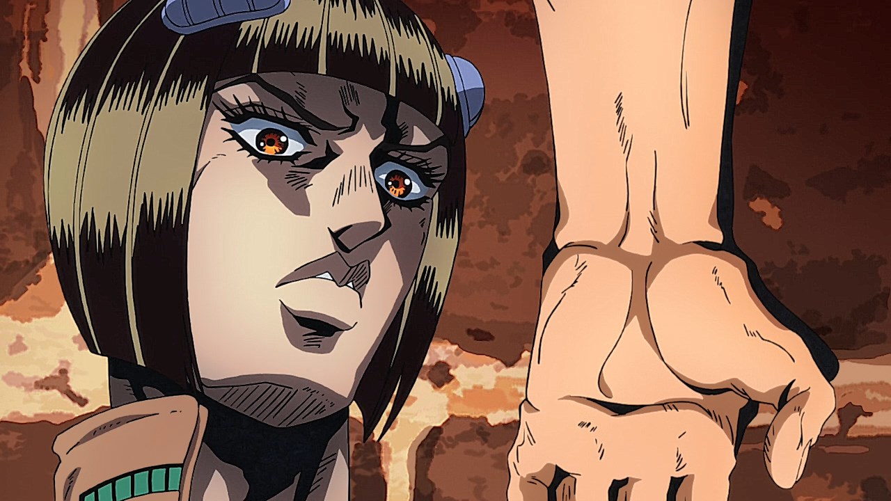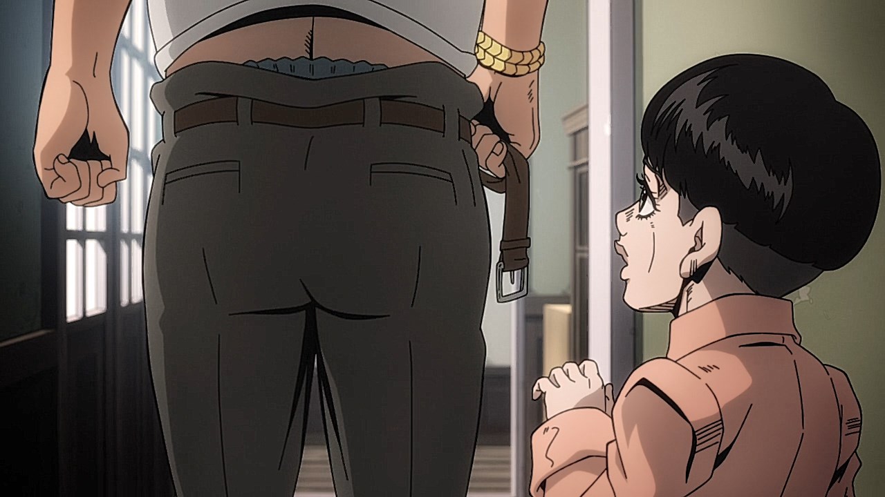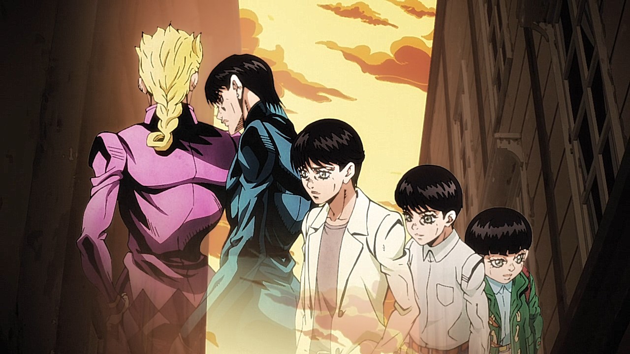 With our second episode for Vento Aureo, we are given the conclusion to Giornos fight with Bruno, but first, we learn about Giornos childhood. Much like the other times that our good friend and narrator Okawa Toru has appeared in other JJBA anime adaptations, it gives us more insight on the problems that Giorno had faced growing up. While the manga reveals his origin on the surface with some of the detailsWhile the manga gives you a rundown of how his respect for gangsters came from both a mysterious gangster he saved and his mistreatment at the hands of his neglectful mother, his abusive step-father, and the racism he had to face as a half-Japanese kid in Italy, the anime includes aspects that breathes life into these scenes and add more context to Giornos personal ethos. Similar to how Giornos distaste for his citys drug problem was shown in the intro from the first episode, there is an added segment in his childhood to show how the same mysterious gangster he saved began his personal investment in using less-than-ethical means of stopping drugs from being spread around. Rather than Giorno being motivated to work his way up Brunos gang to end his boss drug empire for the sake of making Giorno a gangster of love and peace, the depth is built from the importance that the gangster he saved had on how he wanted to work against the unjust society he faced by reforming it through any means necessary.In the same vein, what Giorno saw in the mysterious gangster who kept him protected was the same spark he ended up seeing in Bruno. The fight sequence plays out similarly in the manga save for some cool technical flair like screen filters and color schemes, but it doesnt diminish the effect that Brunos fight has on him when Giorno awakens his own repressed feelings about his boss drug trafficking. The weight that comes from seeing a teenager with signs of drug use on their arm was something that Giorno picked up on, and was the deciding factor for the two sparing one another at points where they could have gone for the final blow. Luckily, the two were able to understand each other at a more fundamental level after Giorno opened up about why he saw good in Bruno, and in turn, Bruno is willing to hear him out and accept Giornos dream of becoming a Gang-Star.Giornos fight with Bruno was also revelatory in both of their Stands abilities. Although Giorno is still getting the hang of Gold Experiences ability to give life to objects as he hasnt attacked anyone with it just yet, hes able to pick up on his offensive abilities quickly with how its life-granting ability can also reinvigorate a persons subconscious. In the process, it freezes their own inhibitions, resulting in situations like the infamous moment Bruno faced where he was frozen in his tracks as he could feel the punch knocking one of his teeth out to later use to reflect damage on him like with Luka. And speaking of Bruno, we got to see more of Sticky Fingers, which is a fun Stand because its one of the few that uses its namesake album from The Rolling Stones as the powers inspiration. Although the English release uses the comical Zipper Man, its not far off as it uses the album covers crotch motif as inspiration to create a stand that can make zippers everywhere. Its capabilities to go from stuffing anything into Giornos mouth to hiding inside of people and creating pathways are genuinely neat and lend itself to how innovative and fun the stands got even in its earliest stages.Now to finish on the fun part, the music. The music throughout the episode was spot-on, but we have both the new OP and ED premiere this time around. With Coda returning, were given Fighting Gold, that takes Bloody Stream and includes a serious edge that is stylish and bleak. It fits the part really well and the visual finishes are very cool and unique compared to the brighter OPs the anime has had. It builds up such good dramatic tension throughout the song that Coda excels at and plays to his expertise of gathering momentum towards a bombastic chorus. And yall been waiting for this: the ending song. Jodecis R&B classic Freek’n You was a bold choice, not just because this means every cliffhanger or dramatic To Be Continued will be greeted with I WAKE UP FEELING SO HORNY!, but it also mirrors the decision in the DiU adaptation to choose a song more for atmosphere like Savage Gardens I Want You than deeper thematic ties like the Part 3 endings featuring “Walk Like an Egyptian” or “Last Train Home”. Much like Savage Garden, Jodeci fits the 90s aesthetic to a T, and it helps set the tone for the period that Part 5 was written in. “Freek’n You” is one of the many ways that the Part 5 anime taps into the spirit of JoJo between Parts 4 through 6 when Araki embraced sleeker characters and made further references to modern R&B performers through Stand names. With how much of Part 5 felt like it had the style and funk of Prince’s music, something sexy and contemporary for the time like “Freek’n You” fits that vibe that a chic gangster boy band from the mid-90’s would give off. It’s not as thematically relevant to mobbing compared to fan-requested choices like “Smooth Criminal” or “Gangsta’s Paradise”, but it still feels like it fits perfectly in a time when R&B was immersing itself further into popular, trendier sounds. One of the singer’s names being JoJo is just icing on the cake. The good thing is that the episode ended on such an upward note with Giorno’s declaration to join Bruno’s gang that it’ll bring something cool to his transition in the next episode towards the gang life.ED Sequence