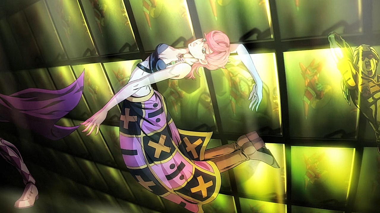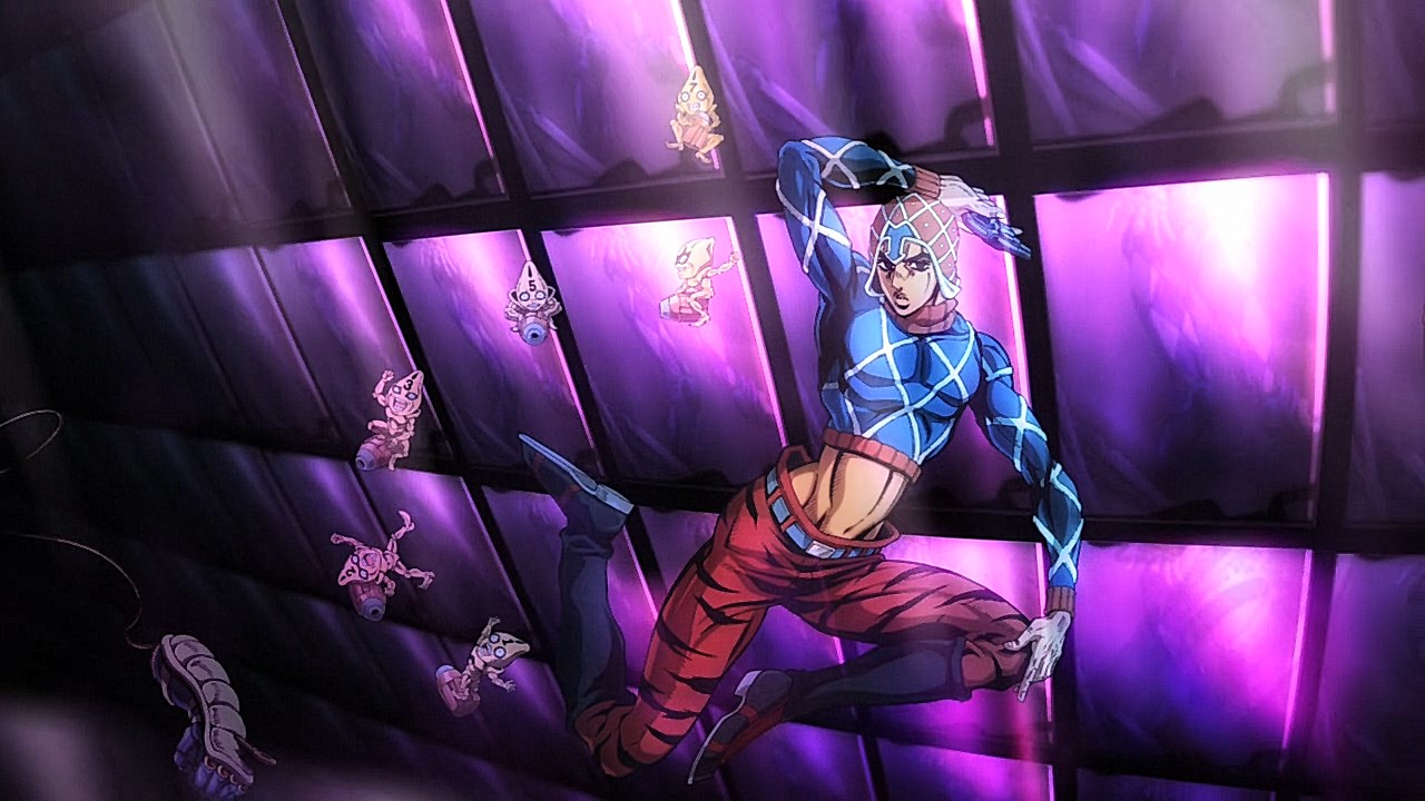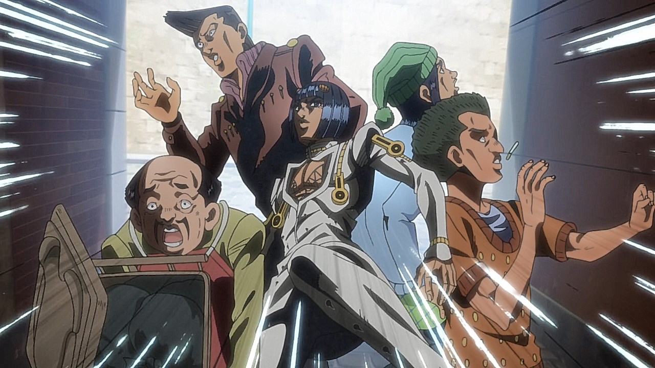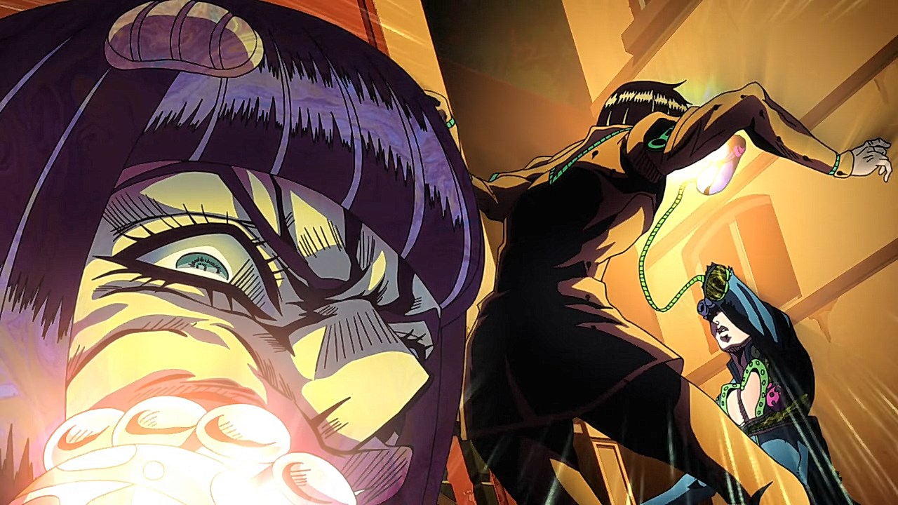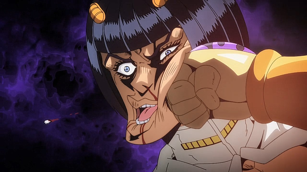 With our second episode for Vento Aureo, we are given the conclusion to Giornos fight with Bruno, but first, we learn about Giornos childhood. Much like the other times that our good friend and narrator Okawa Toru has appeared in other JJBA anime adaptations, it gives us more insight on the problems that Giorno had faced growing up. While the manga reveals his origin on the surface with some of the detailsWhile the manga gives you a rundown of how his respect for gangsters came from both a mysterious gangster he saved and his mistreatment at the hands of his neglectful mother, his abusive step-father, and the racism he had to face as a half-Japanese kid in Italy, the anime includes aspects that breathes life into these scenes and add more context to Giornos personal ethos. Similar to how Giornos distaste for his citys drug problem was shown in the intro from the first episode, there is an added segment in his childhood to show how the same mysterious gangster he saved began his personal investment in using less-than-ethical means of stopping drugs from being spread around. Rather than Giorno being motivated to work his way up Brunos gang to end his boss drug empire for the sake of making Giorno a gangster of love and peace, the depth is built from the importance that the gangster he saved had on how he wanted to work against the unjust society he faced by reforming it through any means necessary.In the same vein, what Giorno saw in the mysterious gangster who kept him protected was the same spark he ended up seeing in Bruno. The fight sequence plays out similarly in the manga save for some cool technical flair like screen filters and color schemes, but it doesnt diminish the effect that Brunos fight has on him when Giorno awakens his own repressed feelings about his boss drug trafficking. The weight that comes from seeing a teenager with signs of drug use on their arm was something that Giorno picked up on, and was the deciding factor for the two sparing one another at points where they could have gone for the final blow. Luckily, the two were able to understand each other at a more fundamental level after Giorno opened up about why he saw good in Bruno, and in turn, Bruno is willing to hear him out and accept Giornos dream of becoming a Gang-Star.Giornos fight with Bruno was also revelatory in both of their Stands abilities. Although Giorno is still getting the hang of Gold Experiences ability to give life to objects as he hasnt attacked anyone with it just yet, hes able to pick up on his offensive abilities quickly with how its life-granting ability can also reinvigorate a persons subconscious. In the process, it freezes their own inhibitions, resulting in situations like the infamous moment Bruno faced where he was frozen in his tracks as he could feel the punch knocking one of his teeth out to later use to reflect damage on him like with Luka. And speaking of Bruno, we got to see more of Sticky Fingers, which is a fun Stand because its one of the few that uses its namesake album from The Rolling Stones as the powers inspiration. Although the English release uses the comical Zipper Man, its not far off as it uses the album covers crotch motif as inspiration to create a stand that can make zippers everywhere. Its capabilities to go from stuffing anything into Giornos mouth to hiding inside of people and creating pathways are genuinely neat and lend itself to how innovative and fun the stands got even in its earliest stages.Now to finish on the fun part, the music. The music throughout the episode was spot-on, but we have both the new OP and ED premiere this time around. With Coda returning, were given Fighting Gold, that takes Bloody Stream and includes a serious edge that is stylish and bleak. It fits the part really well and the visual finishes are very cool and unique compared to the brighter OPs the anime has had. It builds up such good dramatic tension throughout the song that Coda excels at and plays to his expertise of gathering momentum towards a bombastic chorus. And yall been waiting for this: the ending song. Jodecis R&B classic Freek’n You was a bold choice, not just because this means every cliffhanger or dramatic To Be Continued will be greeted with I WAKE UP FEELING SO HORNY!, but it also mirrors the decision in the DiU adaptation to choose a song more for atmosphere like Savage Gardens I Want You than deeper thematic ties like the Part 3 endings featuring “Walk Like an Egyptian” or “Last Train Home”. Much like Savage Garden, Jodeci fits the 90s aesthetic to a T, and it helps set the tone for the period that Part 5 was written in. “Freek’n You” is one of the many ways that the Part 5 anime taps into the spirit of JoJo between Parts 4 through 6 when Araki embraced sleeker characters and made further references to modern R&B performers through Stand names. With how much of Part 5 felt like it had the style and funk of Prince’s music, something sexy and contemporary for the time like “Freek’n You” fits that vibe that a chic gangster boy band from the mid-90’s would give off. It’s not as thematically relevant to mobbing compared to fan-requested choices like “Smooth Criminal” or “Gangsta’s Paradise”, but it still feels like it fits perfectly in a time when R&B was immersing itself further into popular, trendier sounds. One of the singer’s names being JoJo is just icing on the cake. The good thing is that the episode ended on such an upward note with Giorno’s declaration to join Bruno’s gang that it’ll bring something cool to his transition in the next episode towards the gang life.ED Sequence