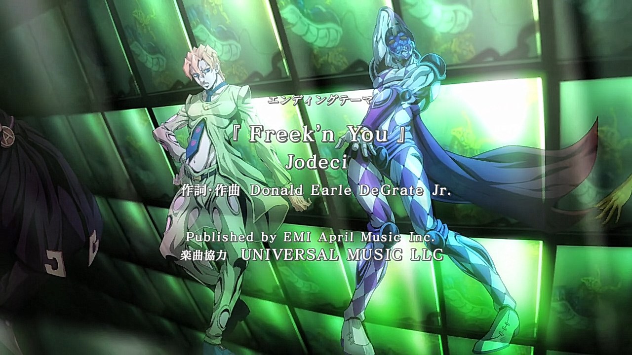 https://images.randomc.net/JoJos%20Bizarre%20Adventure%20The%20Animation/JoJo's%20Bizarre%20Adventure%20Golden%20Wind%20-%2002%20-%20Large%2016.jpgJoJo is getting covered now! Honestly, no one expects that ending song and Im glad they choose this song. It introduced me to RnB though. Not the best ending song but it will grow on me later.As a side note, I love when