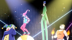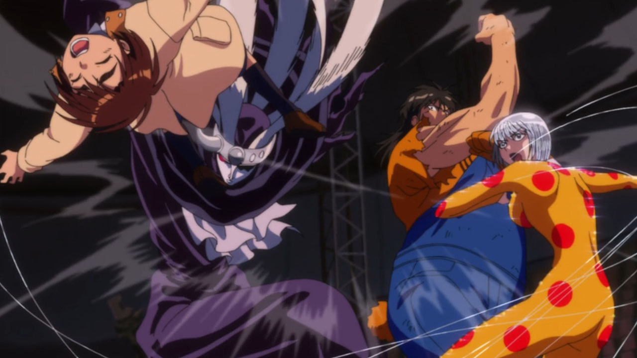 Masaru Saiga (Ueda Chihiro) is the son of a recently deceased business mogul who died in a suspicious car crash. Masaru remembers the ominous warning given by his grandfather – that if anything ever happened to Saiga Senior, he would need to run away with a mysterious suitcase and search for a person called Shirogane at the nearest circus. After following these instructions, he is chased by puppets set on kidnapping him, but he makes two fateful encounters that would forever change the course of his destiny. To begin with, he accidentally bumps into Narumi Katou (Koyama Rikiya), a martial arts practitioner suffering from a deadly disease. Then later on, when all hope seemed lost, Shirogane (Hayashibara Megumi) comes to his rescue. She turns out to be a young French girl who has served the Saiga family for most of her life, with the ability to utilise puppets for combat. Aloof yet fiercely loyal to Masaru, she calls upon the legendary Harlequin, a Saiga keep-sake that was stored away in the mysterious suitcase. As the episode ends on a cliffhanger with yet another attempt at kidnapping the Saiga heir, both Narumi and Shirogane look to protect Masaru, putting him in a pretty good spot in terms of defying his would-be kidnappers.