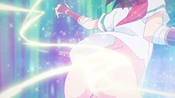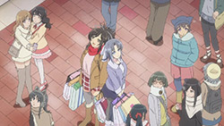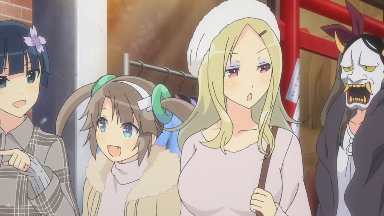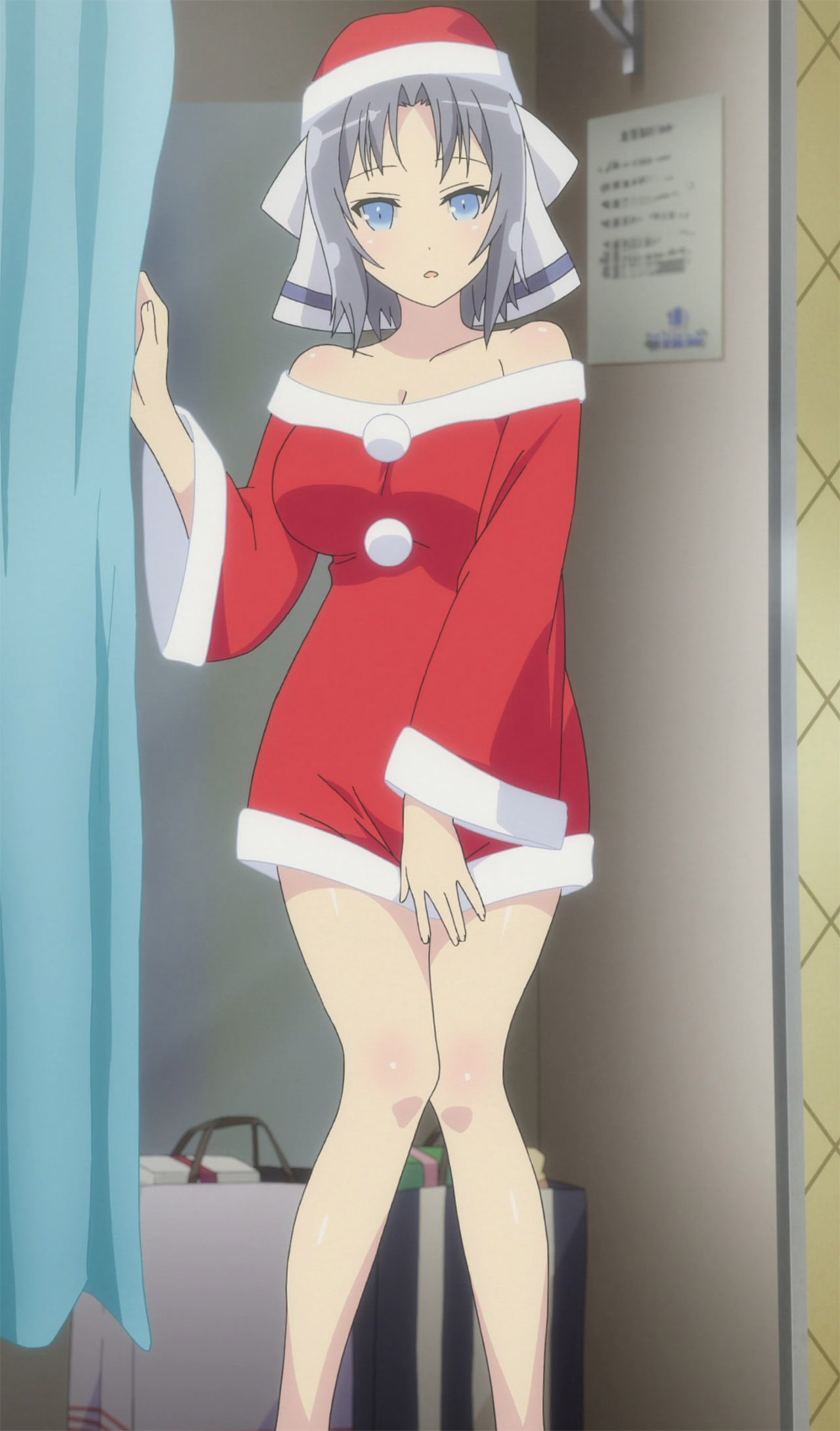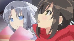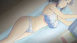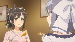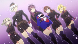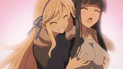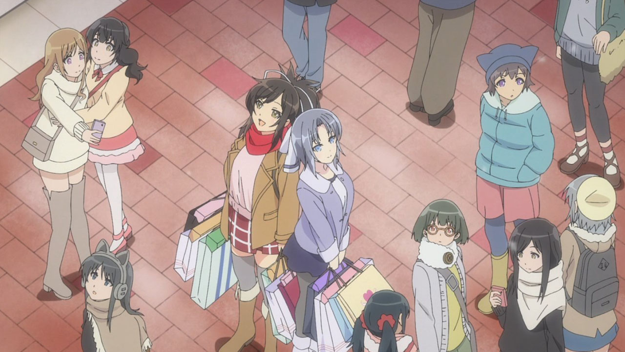 I’m not talking about what happened in this episode because there wasn’t much, and because plot isn’t the point of Senran Kagura (only PLOT). Main character Asuka (Harada Hitomi) meets her friend Yumi (Hara Yumi)—who I think we met during that one OVA—while the antagonists from the first series, including Homura (Kitamura Eri), are doing a part-time job so they can afford turkey. Then some “good” ninjas show up, only they want to beat up the other good ninjas, and they do that. Honestly, do you care? That’s not why we’re here. They’re going to have to do a couple more episodes on this conflict before I bother remembering what these new girls want. It sounds stupid anyway.
