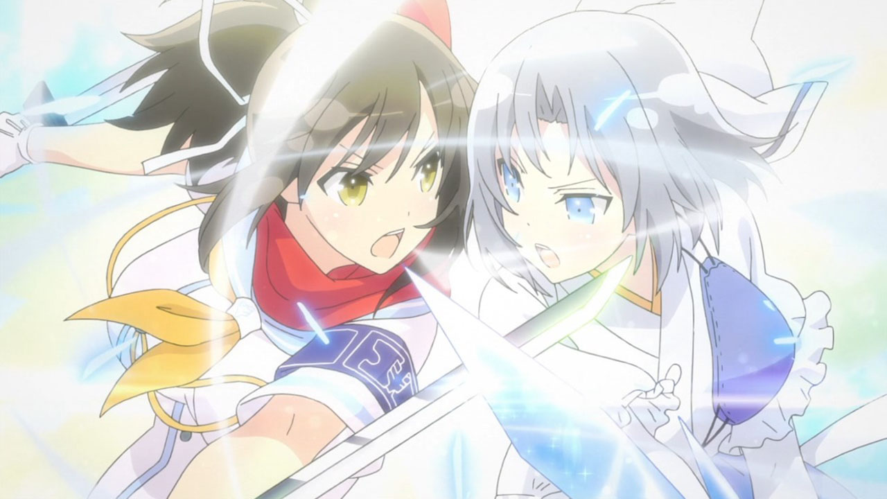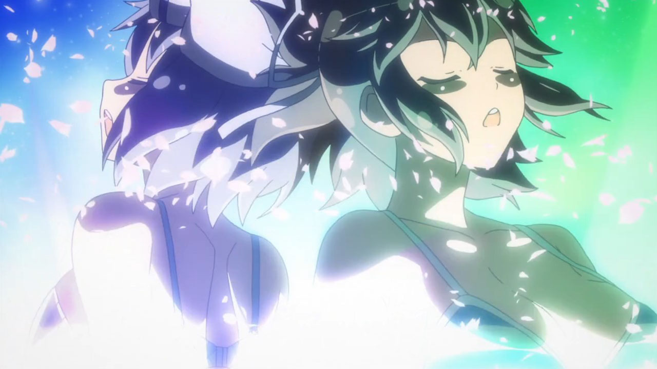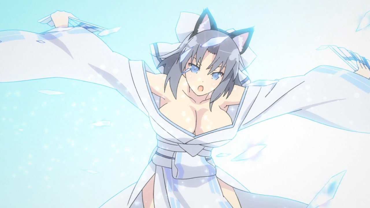 Senran Kagura is a silly show about female ninjas fighting, but what it’s really about is jiggle physics. This is a hard show to introduce because it’s so shamelessly it’s own thing, it’s so silly and without objective redeeming value, but it’s also so big-hearted (/big-chested) and optimistic as to be likable even when it’s dumb. The girls may constantly be filmed from low angles, chest angles, be part of underwear montages, have naked transformation poses, and get their clothing shredded, but—