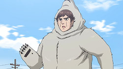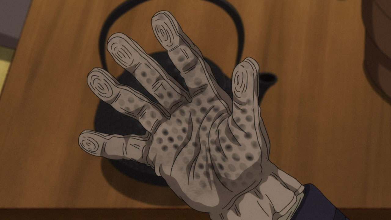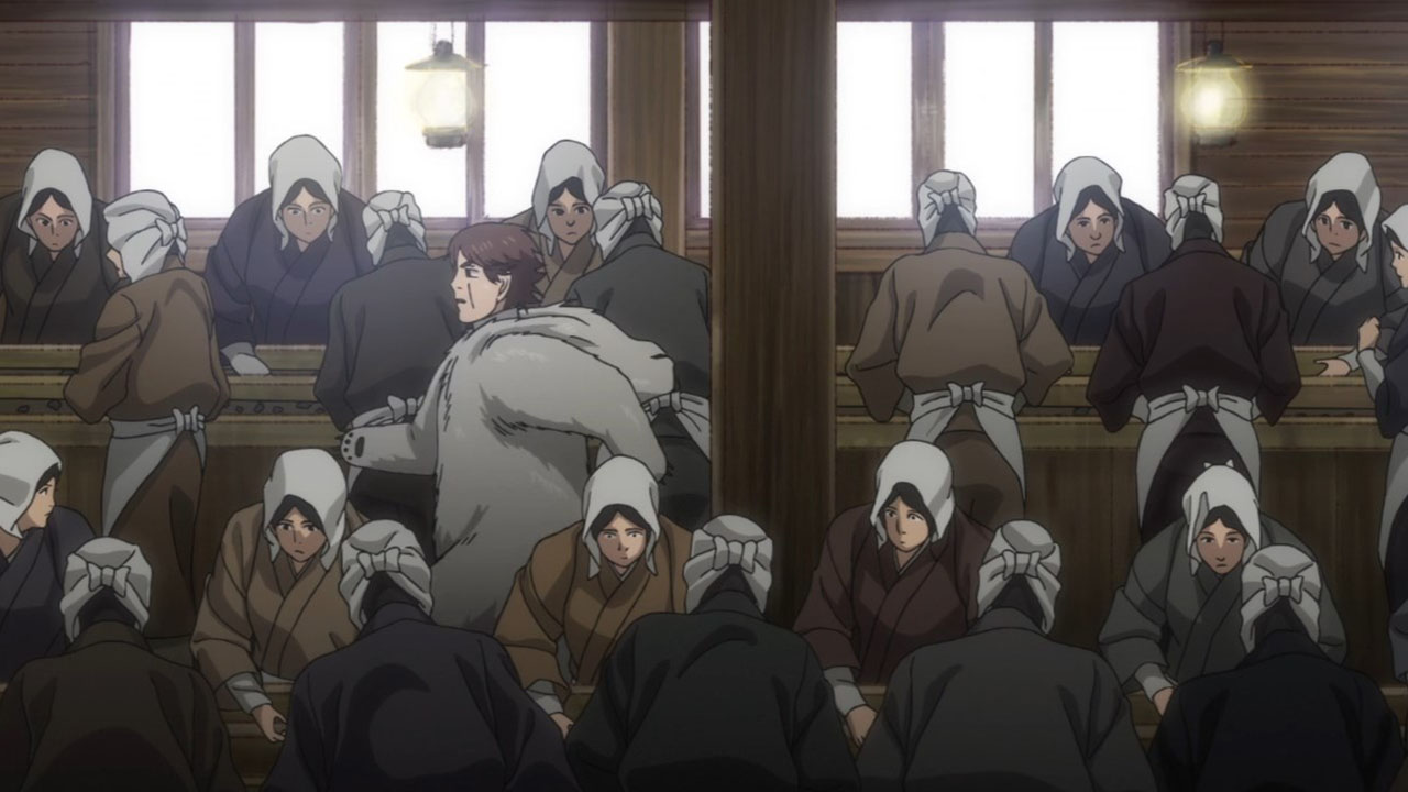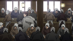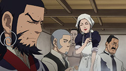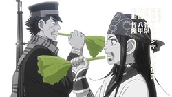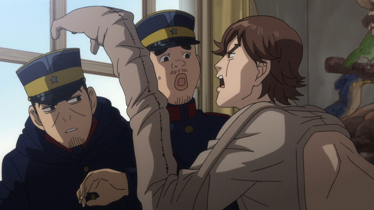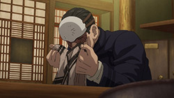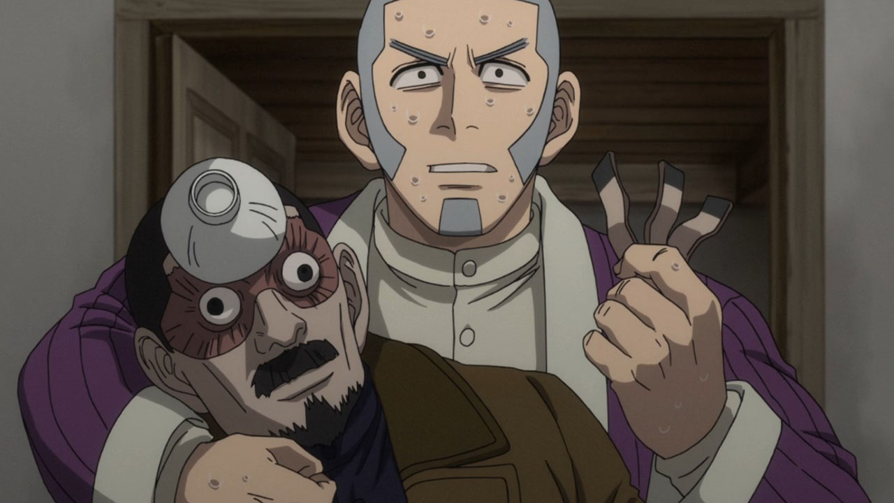 Of course, pure action series are great in their own way, too, but that’s not the kind of show Golden Kamuy is. In an action series, when opposing factions collide like they do here we’d expect them to be fighting all the time, for the sake of action. In Golden Kamuy, this collision brings up an opportunity for—what else?—food. The plot is getting more complex now, with talk of alliances contrasted with whispers of betrayal. We know that Sugimoto’s loyalty is steadfast—when offered money he turns it down purely out of his obligations to Asirpa—but otherwise little else is concrete. The key theme of this narrative arc, it seems, deals with these fluid human affiliations. Lt Tsurumi is capable of inspiring fierce devotion in his men (a devotion that Edogai dies for and does not tolerate traitors — even as he himself is a traitor to the state. And Sugimoto and Hijikata may be about to broker an alliance of convenience, even though it’s evident they don’t trust each other at all. After all, who can we trust. I’m never sure how seriously I’m supposed to take parodies of the Last Supper. Is this supposed to be a hint as to who is going to turn? Or is it mocking the very idea? I mean, Kiroranke is right there as Judas. What else am I supposed to make of that?