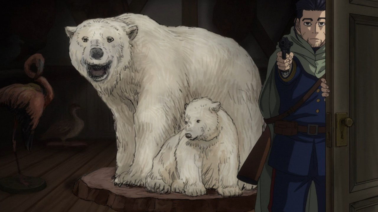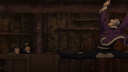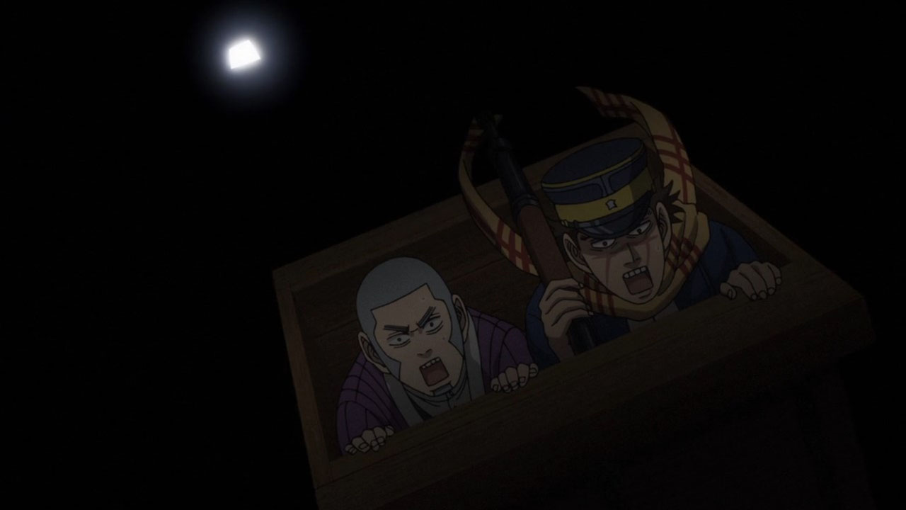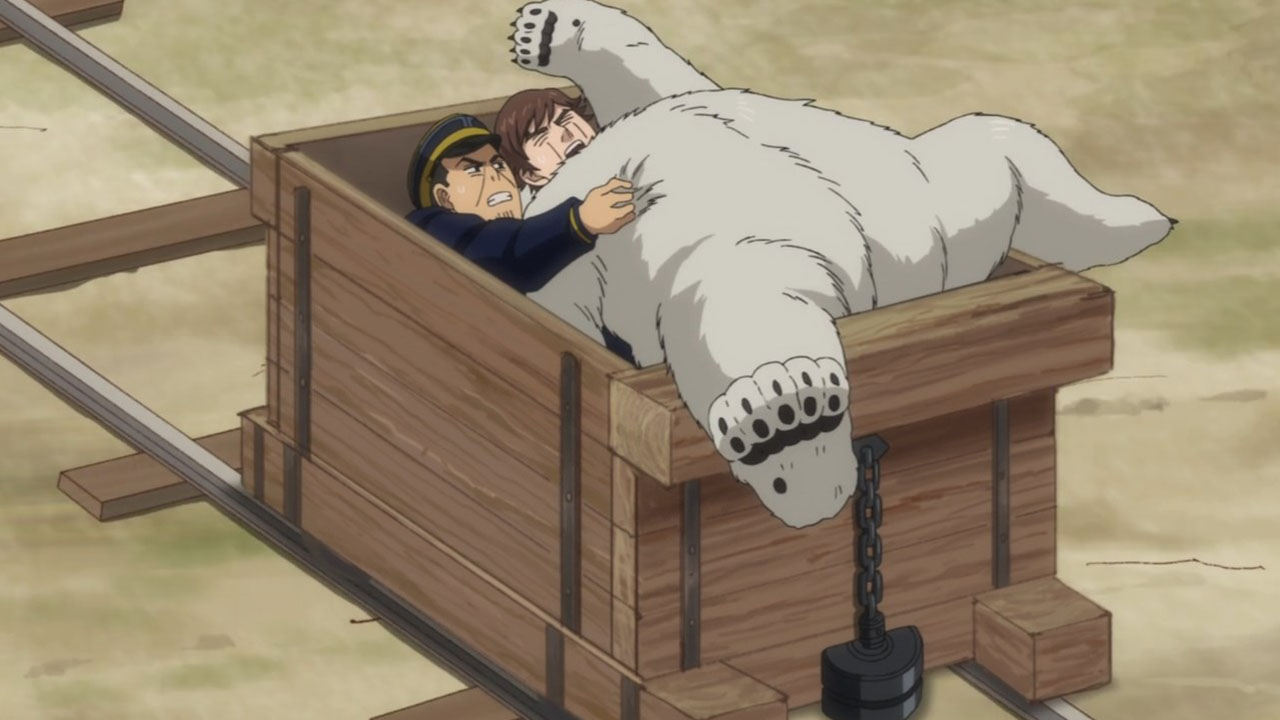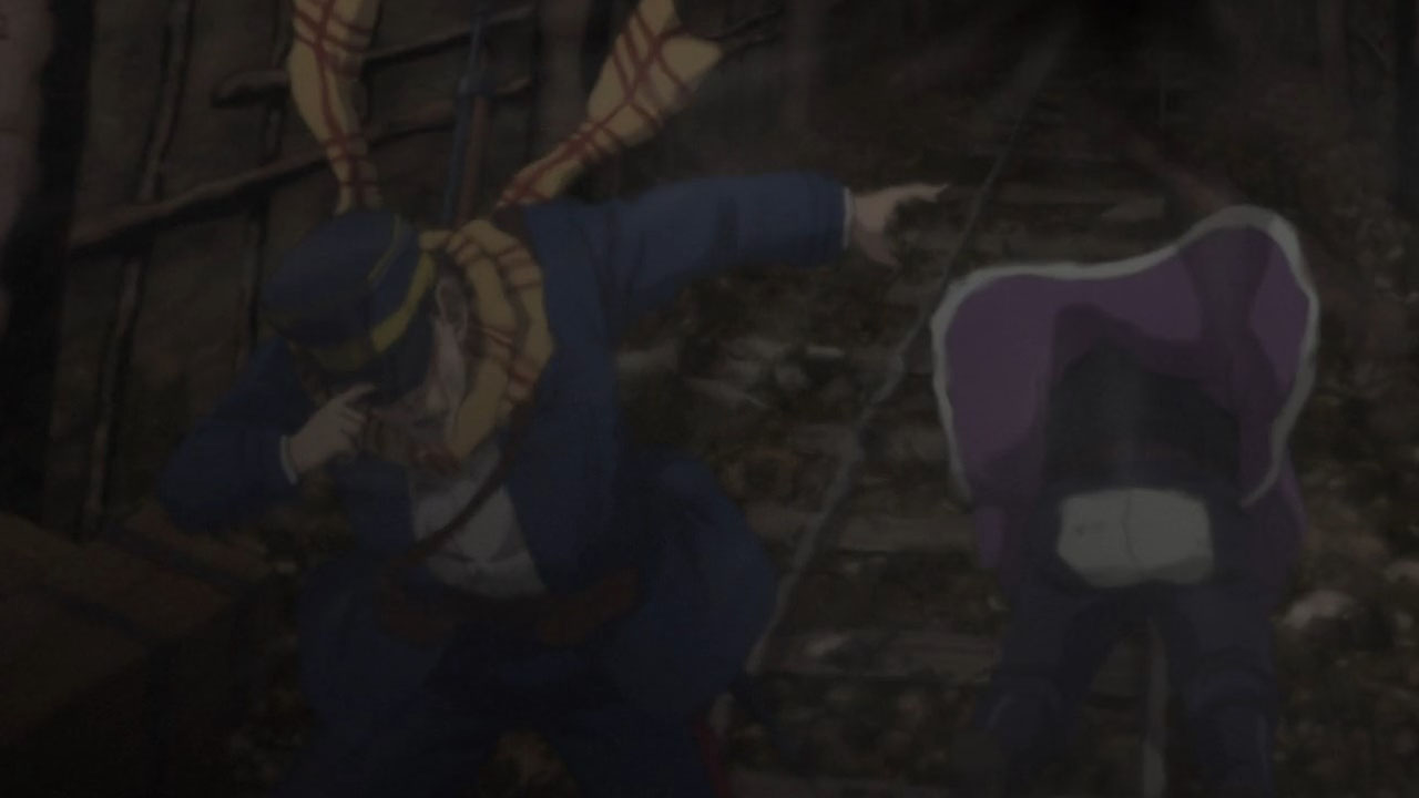 But there’s no point griping about Golden Kamuy‘s visuals at this stage; it has never been the point of this show and I will actually be weirded out if it suddenly flooded with sasuga. So let’s instead focus on things that Golden Kamuy does better than any of its contemporaries: its curiously educational adventure around Hokkaido. This week features zany mine-cart antics that would not be out of place in an Indiana Jones movie or as a puzzle level in some RPG. It’s all great, silly fun, but what is fun without tension? All the conflict of Golden Kamuy come to a head as the three factions after the titular treasure (if you can count Asirpa & Co. as a faction) suddenly collide. Yet, the real danger of this episode was not any human force, but the coalmine itself. Golden Kamuy evidently wanted to portray the life of a 20th century coalminer and wanted us to understand the conditions of the deathtraps they brave. A lecture would be boring though, so it works the education into the conflict of the episode (with details littered around the background). Lesser storytellers would have just turned this adventure in the coal mines into a fancy rollercoaster ride and squandered the opportunity for history, but thankfully Golden Kamuy always keeps in mind the proper balance between bread and circus.
