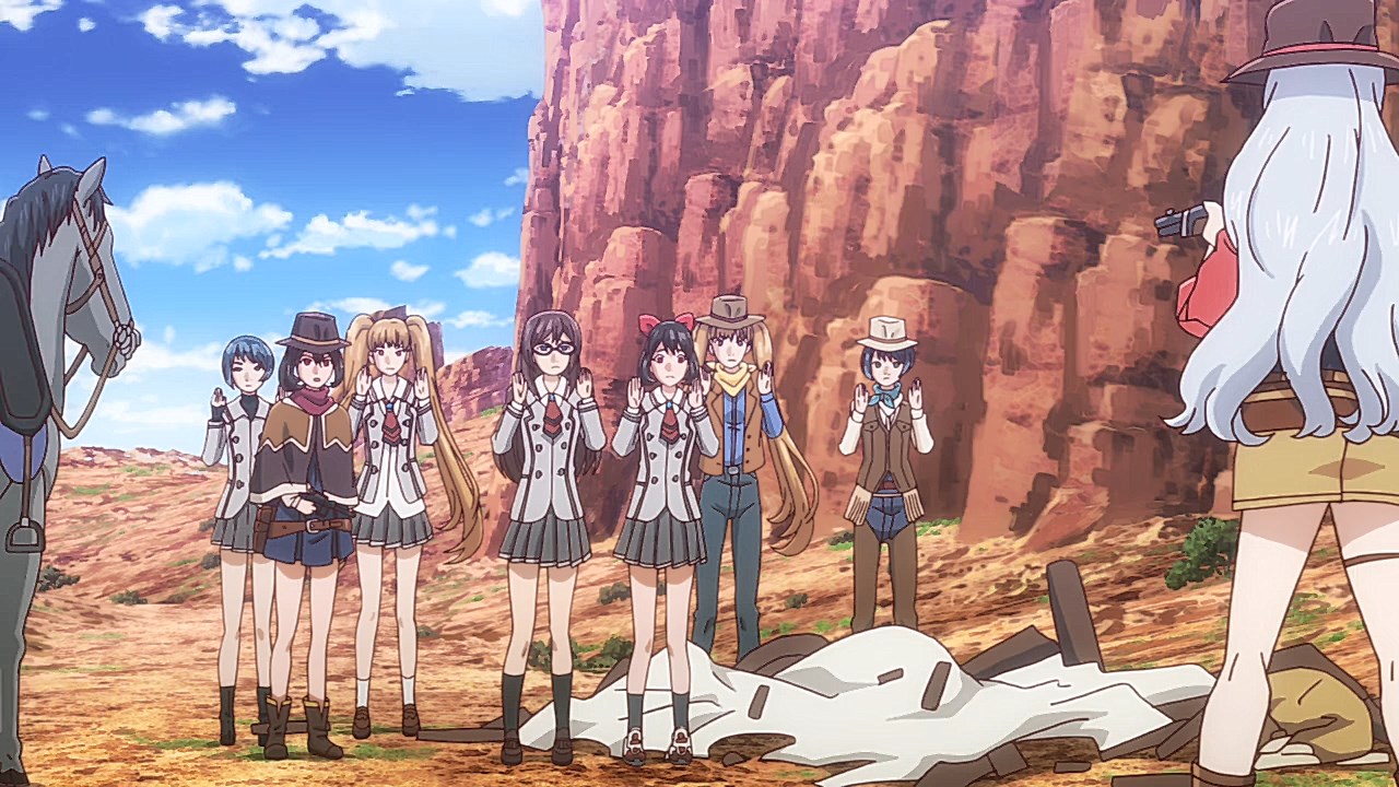 Akanesasu Shoujos second foray into the Western frontier helps to cement the campiness that the series has only slightly embraced up until they found this Western-inspired fragment. With a world as outlandish as this, it was only natural that they would want to go gung-ho with the theme as Mia hunts down outlaws and the only escape from certain demise in a televised duel is broadcasting corruption in the towns Coliseum. There is a sense of normalcy to the town as the conclusion comes quickly as the town agrees to be diplomatic in handling the court case against the judge and sheriff while assisting the Chloe/Nana outlaw duo in their orphanage. Even if every loose end is tied up quickly enough to get the arc over with, there is still an element of fun with how far the series is willing to go to turn the Broadcasting Club’s encounter with the Western version of their reality into a comical romp through the West. At the same time, the anime gives Mia time to shine as we learn about her desires. Whereas the marriage world gave us insight on why Nanas connection with her dads hobby drew her into the club, it was the respect that Mia was given by the club that made them friends worth hanging out with. Despite her love for heroics and adventure, she felt shoe-horned into liking cuter things than being a hero. But for Asuka, positioning Mia as a hero for joining her club was something that drew her in and would eventually be what would motivate her to build the resolve to have her own Walkman in the parallel universes. While the revelation of why a more popular girl like Nana would have a good time with the Broadcasting Club was a more fascinating development, it was nice to see Mia enjoy herself and find her calling as a hero with a magical girl form that has dual pistols. It also helps that her time in the West has given her the inspiration to be more open about what she likes and what she is interested in so that she can be upfront about her interest in the less cutesy things that she enjoys.The biggest development of the episode turns out to be the show properly identifying another dimensions version of Yuu as the mysterious girl that is pulling the Broadcasting Club into all of these different fragments. Hilariously enough, Asuka was so easily allured by Ero Yuus playful teasing that she was tricked into agreeing to her trap to get them caught up in the heist that would get the group arrested. But with the information at the end of the episode with Seriousuka confronting Ero Yuu about her involvement with leading the girls into parallel worlds where dangerous amounts of clusters are present, it all but confirms that Ero Yuu has her reasons for wanting to get involved with pushing the girls into danger. Itll be interesting to see what role she plays in the future given her mysterious motives and her adversarial relationship with Seriousuka calling into question which fragment Ero Yuu originates from. One fun thing about waiting for an episode of this series is that whenever an arc is over, its a guessing game as far as who will be the next girl chosen to be separated from the group.