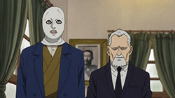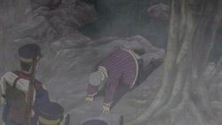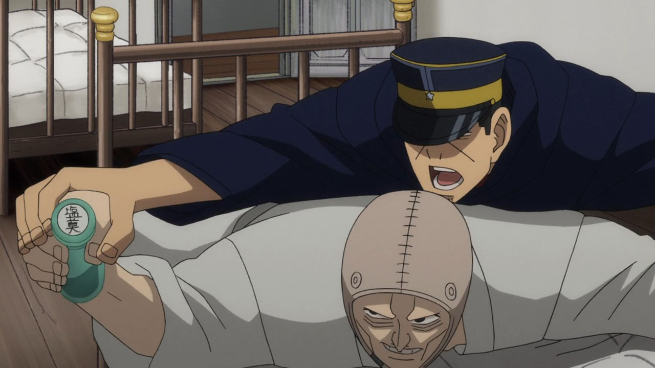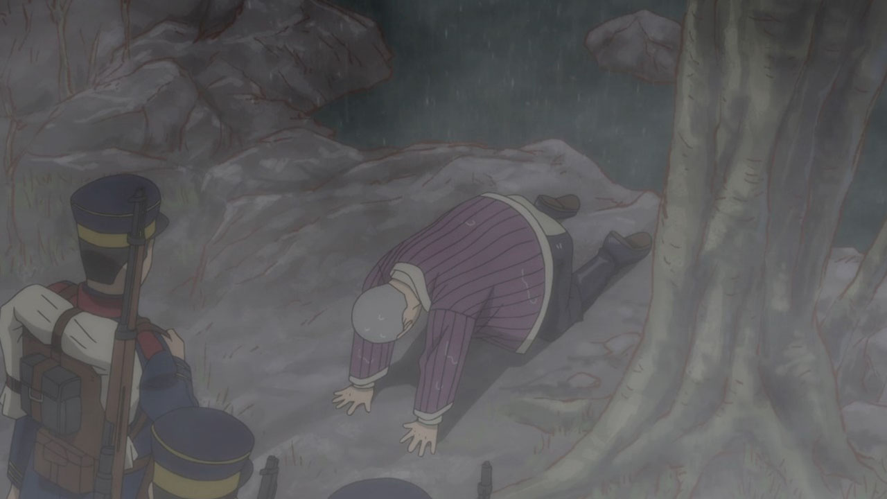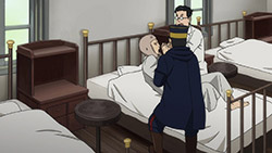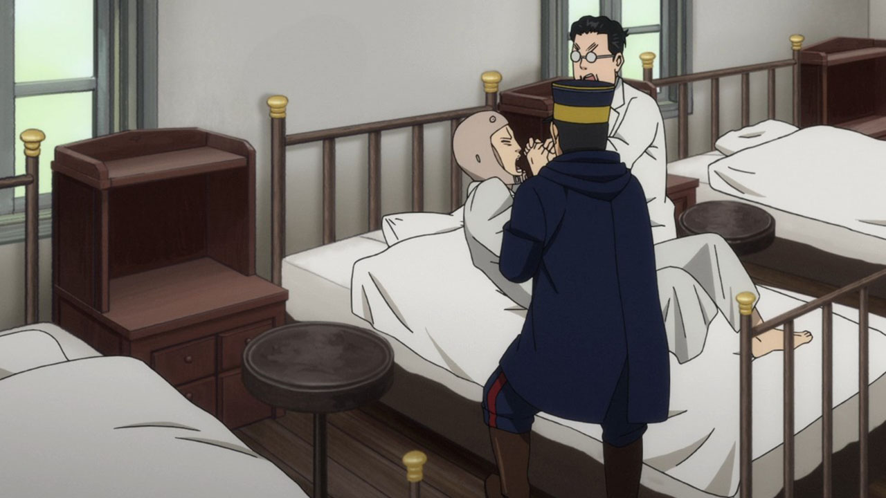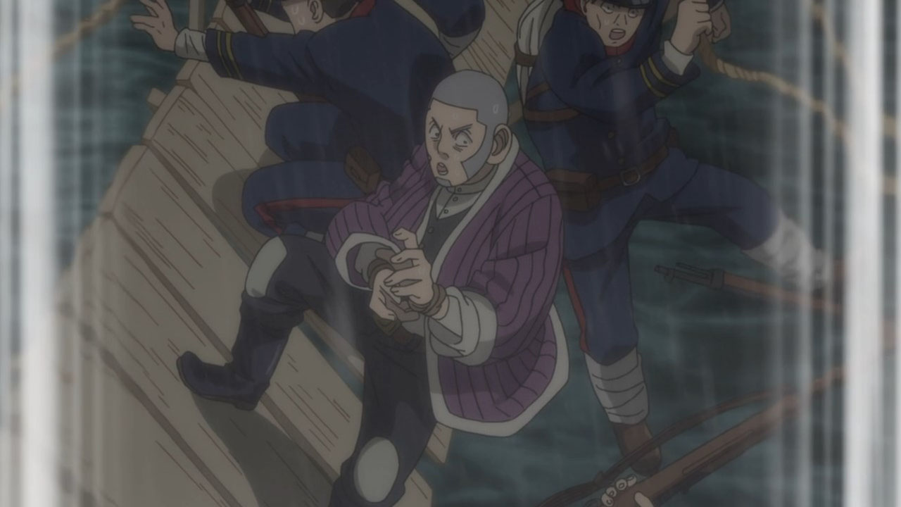 To make things worse, we don’t even get to initiating said infiltration plan until the last seconds of the episode so we got all worked up for nothing. But the fact that this plan is underway at all raises some interesting issues. It’s quite apropos that a professional fraudster has just been introduced because it plays into the themes of deception and treachery that have been prevalent throughout this second season of Golden Kamuy so far. Golden Kamuy takes great pains to remind us at all times that nobody should really be trusted. Everybody save our lead duo are transparent about having their own agenda. Alliances are based purely on convenience. In fact, Sugimoto has currently aligned himself with criminals, and they should be the least trustworthy of them all (and indeed at least one member, Ogata, is an outright deserter). Contrast them with Tsurumi’s faction, soldiers who are bound by duty and discipline. But while Tsurumi is off being insane, the criminals are actually displaying some measure of integrity. Their first instinct when one of their own, Shiraishi, is captured is how to rescue him. Sure, this may be based on expedience in part, and when they think about it longer they have some doubts about whether it’s actually worth going out of their way to rescue the Escape King. But in the end they still risk their necks to go after him, and not because he would be a liability or a loose end, but simply because he’s one of their own, he’s been captured (and being flayed as we speak!) and it’s only natural to get him back.