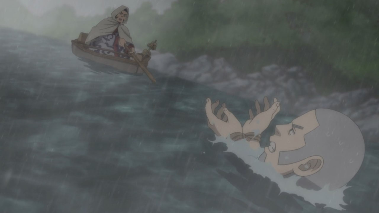But it was Sugimoto who pushed for proactively going to rescue Shiraishi, and now he’s worked out that he was leaking information this whole time. And clearly, he has no love for traitors. He’s an army man, for one, and he also probably wouldn’t be ‘Immortal Sugimoto’ if he didn’t watch his back. On the other hand, although Shiraishi is entirely craven, it’s hard to fault him too much for what he did. The one who needed a spy was Hijikata, not him, and terrifying as it is to cross Sugimoto I can’t imagine that crossing Hijikata would be any better. He was trapped in a corner that even the Escape King couldn’t wriggle out of. A wretch Shiraishi may be, but a pitiable wretch. I doubt Sugimoto will kill him, thanks to Asirpa’s tempering influence, but can they truly be friends again like they used to be?