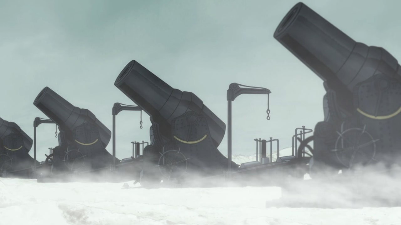 This is how you can tell proper newspaper journalism from tabloid pabulum: the exclamation mark. Newspapers don’t use them. We want journalists to report the news, not exclaim it. In these cynical and jaded times what kind of news is worth getting excited about? Please. Exclamation marks are the sole purview of smarmy advertisers feigning giddiness at a stock-take sale where Everything! Must! Go! and has no place in my monochrome print. I don’t need my newsmen trying to sell me the news, thank you very much. And I warn all my readers thus: the exclamation mark is not cause for excitement, it is cause for suspicion. It is punctuation trying too hard. I would believe it more if it was trying to convince me less. And when an anime episode title comes along with not one but two exclamation marks, like we have this week, alarm bells should be going off. A writer may use one exclamation mark if they really have such a pressing need to exclaim (or for irony), but two? That’s the sound of a raving madman. “The Great Plan to Infiltrate the Asahikawa 7th Division!!” is the screenwriter screaming the episode title while doing a line of coke and tasering themselves in the face. Someone is losing their bloody mind.