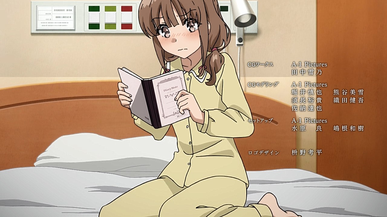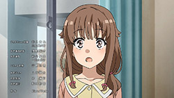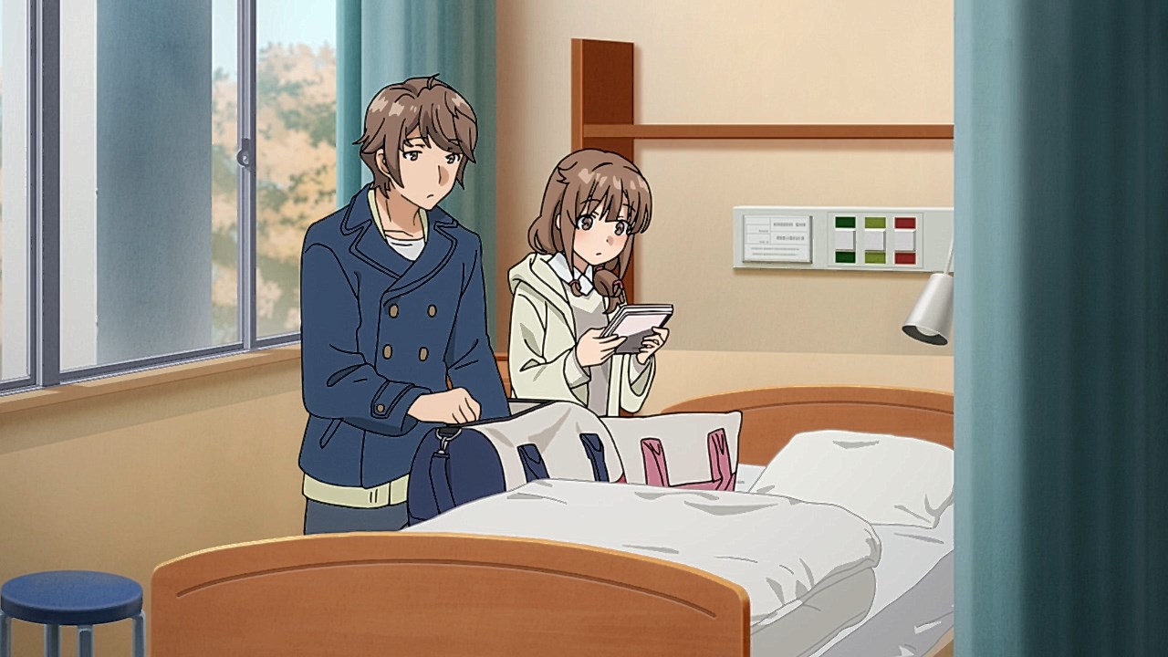 So instead of finding out whether pre-amnesia (Kanji) Kaede’s personality is similar to the likes of Kirino and Sagiri (and whether she’s still friendly to the cats like her amnesiac/Hiragana self did), the focus shifts to Sakuta and his own despair event horizon about losing the Kaede he’s known for the last couple of years (as well as triggering his own Adolescence Syndrome). But apparently, it’s always at the lowest moments of Sakuta’s life where Shouko appears.https://images.randomc.net/Seishun%20Buta%20Yarou%20wa%20Bunny%20Girl%20Senpai%20no%20Yume%20wo%20Minai/Seishun%20Buta%20Yarou%20wa%20Bunny%20Girl%20Senpai%20no%20Yume%20wo%20Minai%20-%2013%20-%20Large%2008.jpgShouko Makinohara…a mystery wrapped inside an enigma. That being said, the fact that Mai read Shouko’s note for Sakuta means that Shouko is tangible at the very least (more so if the middle-school version of Shouko is the same person). Can’t wait for the movie to reveal who she is and what her circumstances are. (And for Aniplus Asia to distribute the movie for screening at local cinemas next year!)https://images.randomc.net/Seishun%20Buta%20Yarou%20wa%20Bunny%20Girl%20Senpai%20no%20Yume%20wo%20Minai/Seishun%20Buta%20Yarou%20wa%20Bunny%20Girl%20Senpai%20no%20Yume%20wo%20Minai%20-%2013%20-%20Large%2035.jpgI was expecting another moment killer (along the lines of “your 15 minutes of lovey-dovey time is up”), but this was a better comedic twist.https://images.randomc.net/Seishun%20Buta%20Yarou%20wa%20Bunny%20Girl%20Senpai%20no%20Yume%20wo%20Minai/Seishun%20Buta%20Yarou%20wa%20Bunny%20Girl%20Senpai%20no%20Yume%20wo%20Minai%20-%2013%20-%20Large%2037.jpgEither Sakuta brought Hiragana!Kaede’s diary to the hospital ward or it was Shouko who did. Still nice to see that although Kanji!Kaede and Hiragana!Kaede’s personas didn’t merge, Kanji!Kaede still acknowledges the time Hiragana!Kaede spent with Sakuta–and even acts a little more friendlier toward her brother! (Hiragana!Kaede still best imouto, though–at least for those wondering where I stand in the so-called “Kaede Civil War.”)Seishun Buta Yarou in a nutshell: Come for the bunnygirl fanservice, stay for the well-written narrative with meaningful, straight-to-the-heart messages. That, or the excellent romantic chemistry between Mai and Sakuta. Also, even though Mai is best girl, Tomoe, Rio, Nodoka, Kaede and Shouko are all good girls in their own way. (Definitely worth 4 out of 5 stars, if not more.)Might as well watch the full music video for “Kimi no Sei” and listen to the song one last time. And damn it, Enoshima seems like a more tempting destination to visit now…