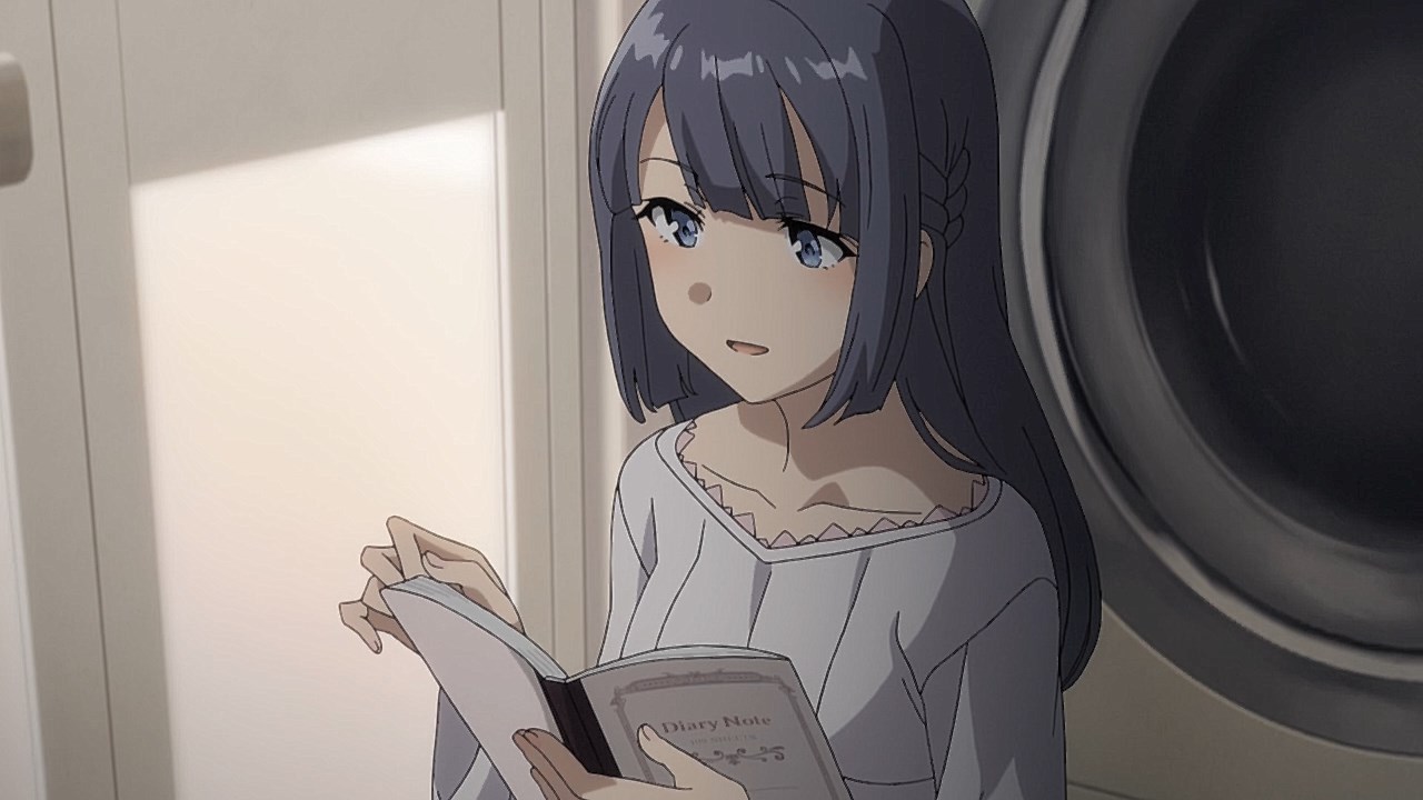“Oh, I wonder what the amnesiac-me wrote in this journal.”https://images.randomc.net/Seishun%20Buta%20Yarou%20wa%20Bunny%20Girl%20Senpai%20no%20Yume%20wo%20Minai/Seishun%20Buta%20Yarou%20wa%20Bunny%20Girl%20Senpai%20no%20Yume%20wo%20Minai%20-%2013%20-%20Large%2037.jpg“What is all this loving Onii-chan?! And w…w… what do you mean with I snuck into his bed that morning to give him all my love?!”