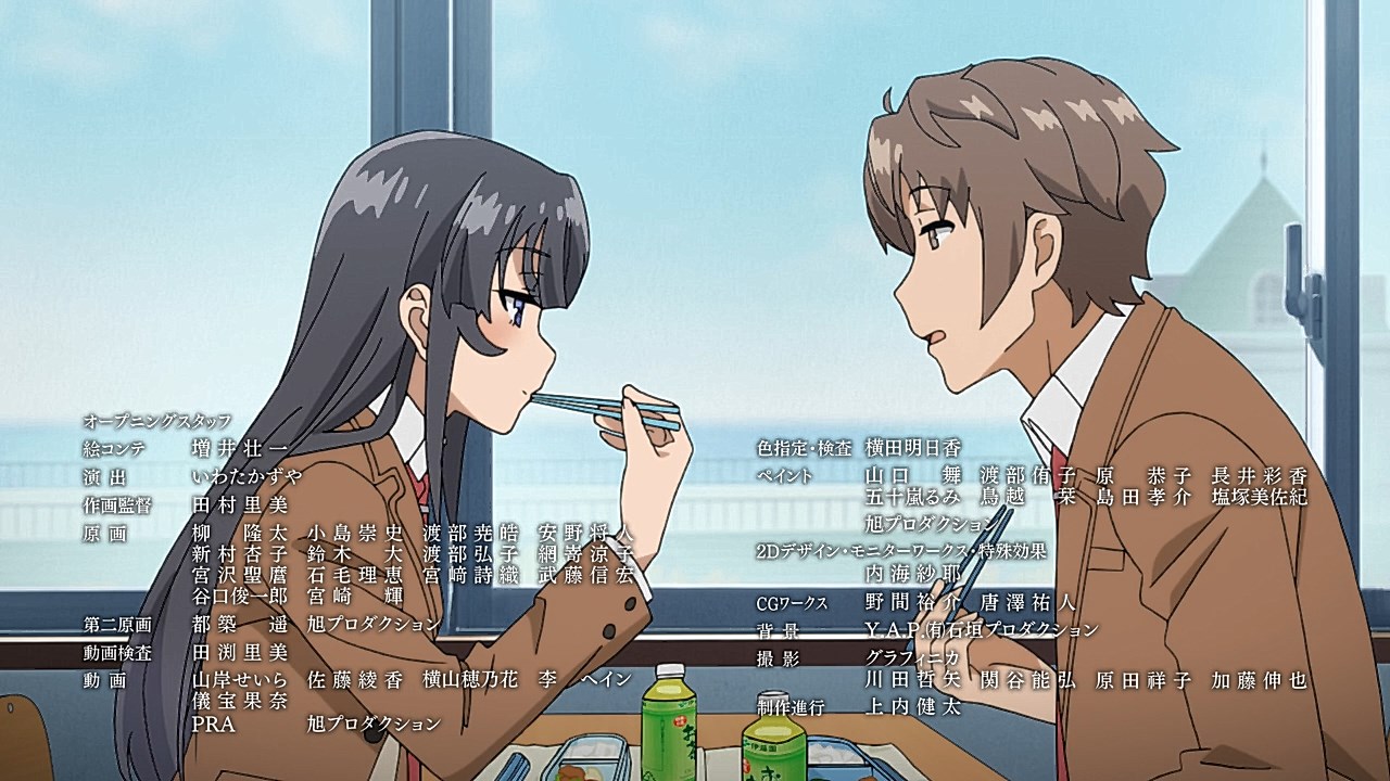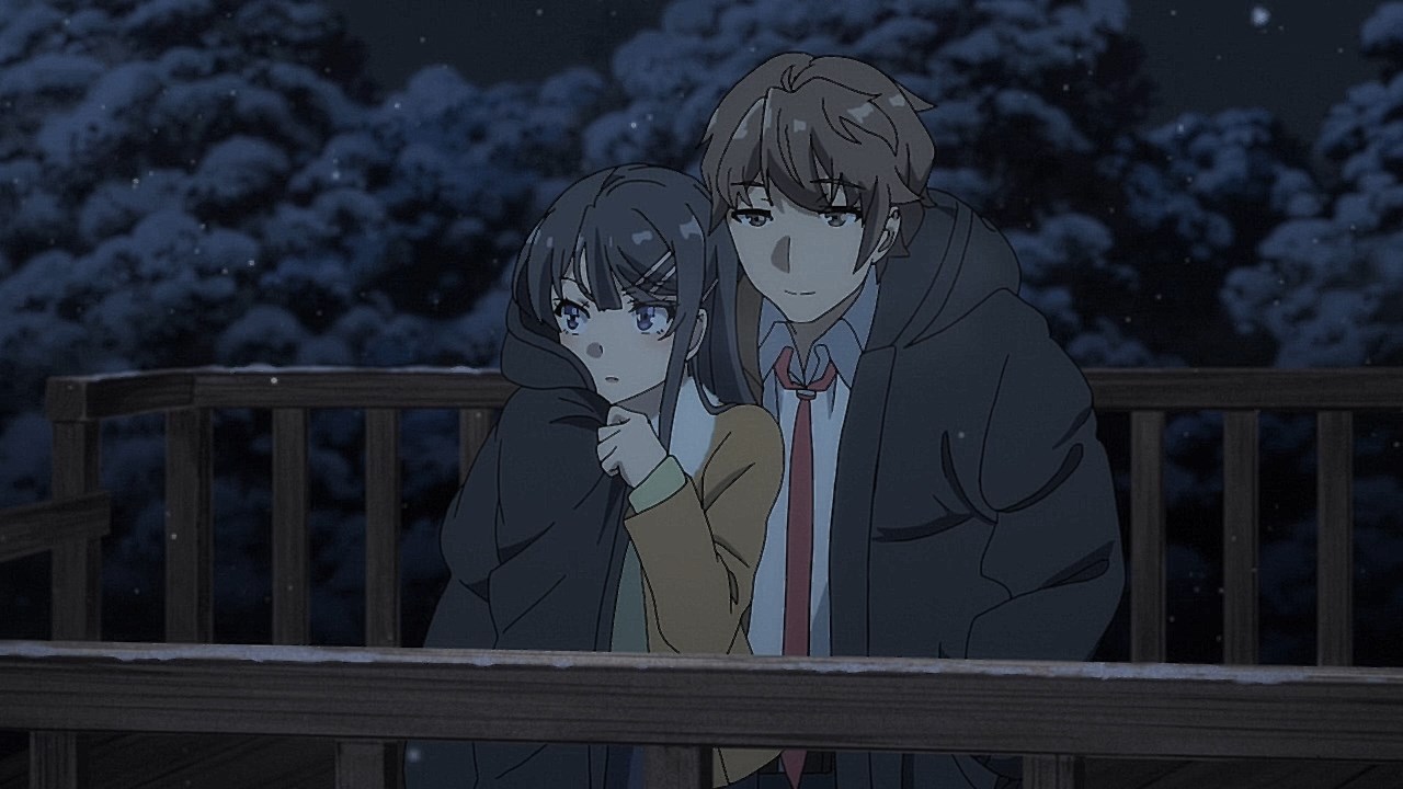 https://images.randomc.net/Seishun%20Buta%20Yarou%20wa%20Bunny%20Girl%20Senpai%20no%20Yume%20wo%20Minai/Seishun%20Buta%20Yarou%20wa%20Bunny%20Girl%20Senpai%20no%20Yume%20wo%20Minai%20-%2013%20-%20Large%2036.jpgAgh, let the weeb/otaku fantasies run wild. The poor “unfortunate souls…” Agh, the unrealistic bars are set.https://images.randomc.net/Seishun%20Buta%20Yarou%20wa%20Bunny%20Girl%20Senpai%20no%20Yume%20wo%20Minai/Seishun%20Buta%20Yarou%20wa%20Bunny%20Girl%20Senpai%20no%20Yume%20wo%20Minai%20-%2013%20-%20Large%2008.jpghttps://images.randomc.net/Seishun%20Buta%20Yarou%20wa%20Bunny%20Girl%20Senpai%20no%20Yume%20wo%20Minai/Seishun%20Buta%20Yarou%20wa%20Bunny%20Girl%20Senpai%20no%20Yume%20wo%20Minai%20-%2013%20-%20Large%2009.jpgRemember when middle school school Shouko was first introduced back in episode six where she was shielding a poor, helpless cat from the rain? Well this time, it’s Sakuta’s turn. She is practically his personal angel. And yes, no romantic aspirations between these two, apart from Sakuta’s initial deep love two years prior. Of course, a different parallel universe have it differently. But for this particular universe, there is none between the two. A very entertaining series indeed as long as one doesn’t take it too seriously.